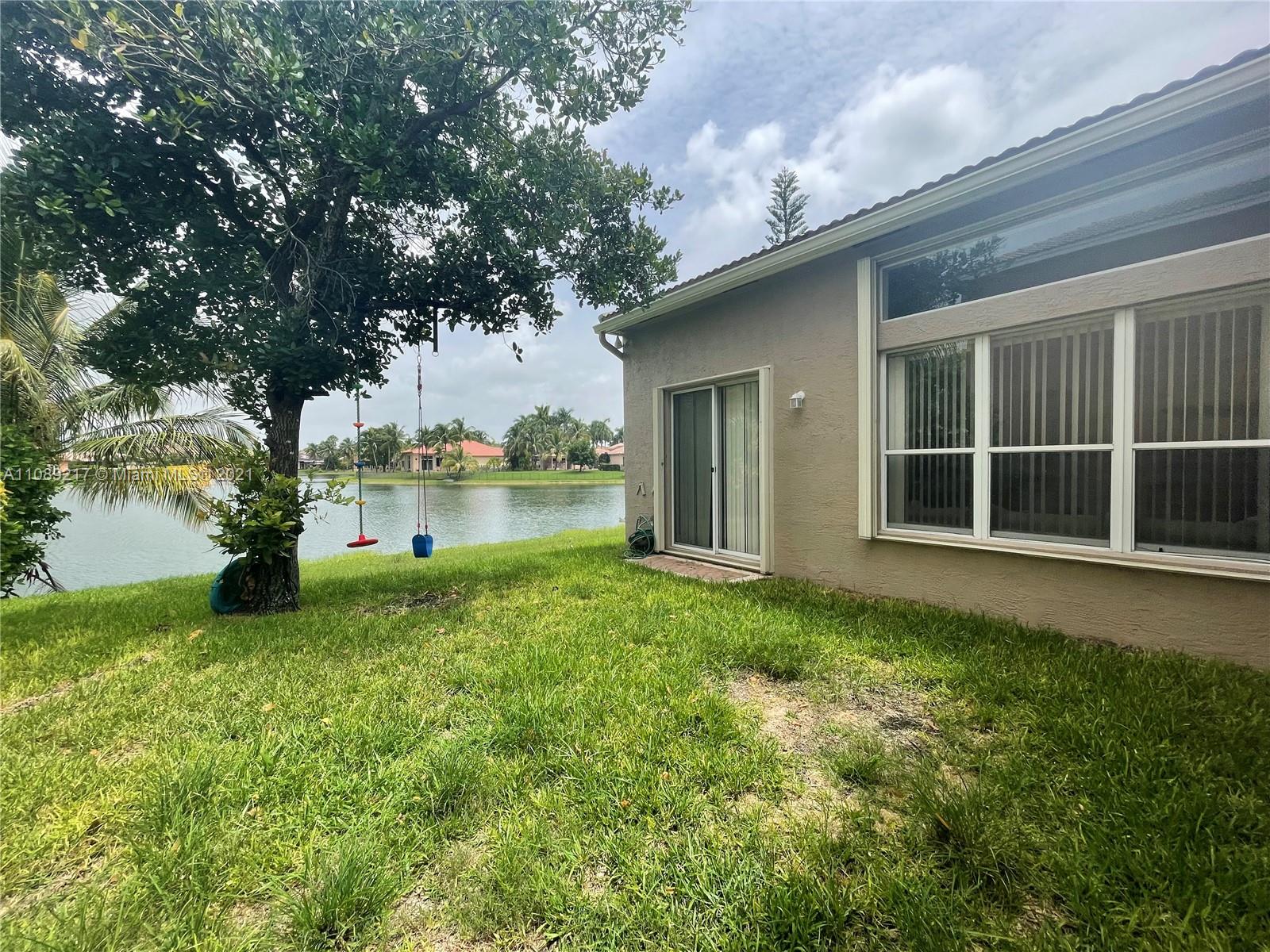 This 1 story luxurious home in the highly desirable community of Sunset Lakes. 5 bedrooms, 3 well maintained bathrooms. Open kitchen with granite counter tops, stainless steel appliances, Grand entrance with large windows provide lots of natural light. Backyard overlooking the lake has great potential for a pool. High ceilings, Tile floors throughout, Wood like finishes in all bedrooms Accordion shutters in all windows, This home is in a resort style community with a vast array of activities and amenities.