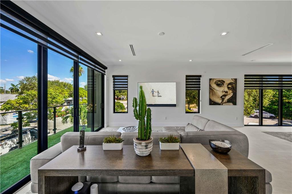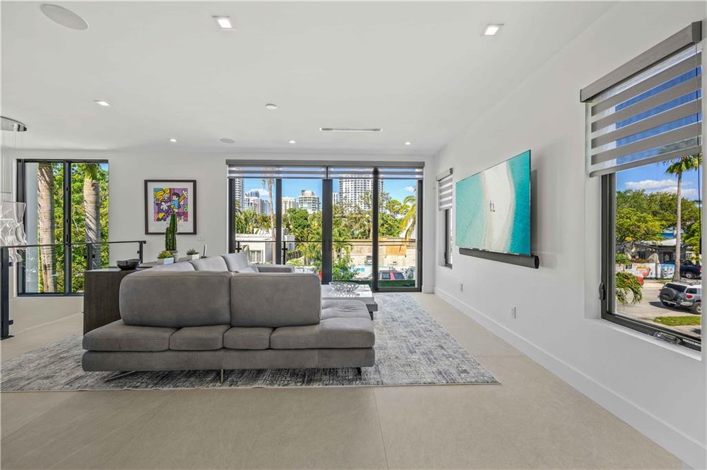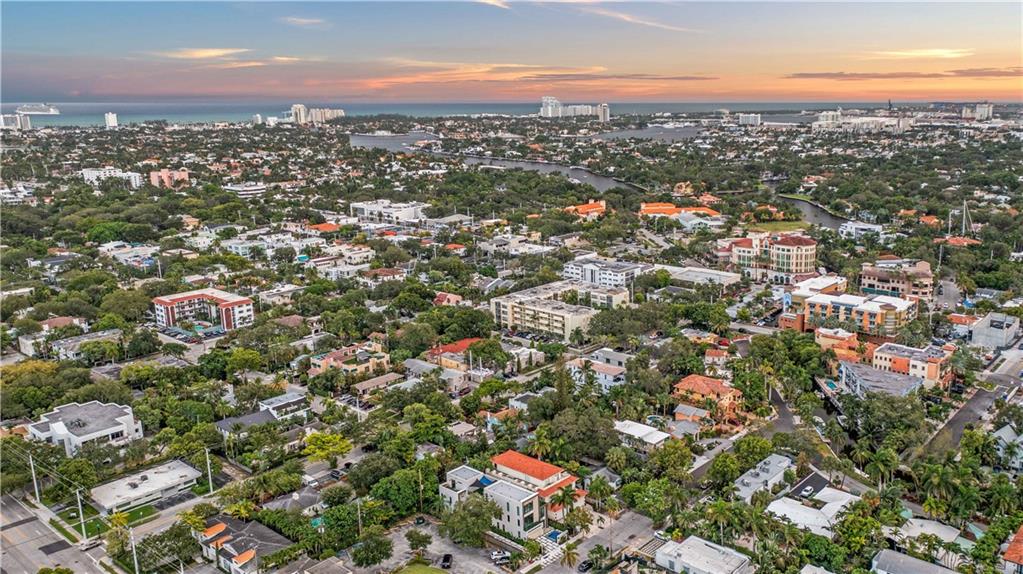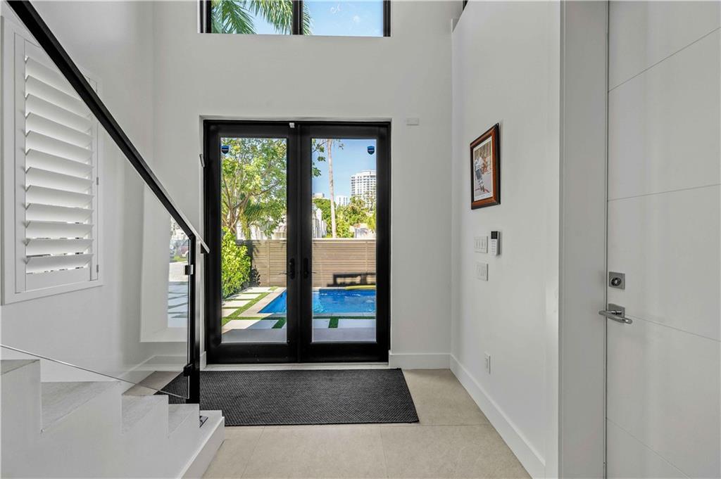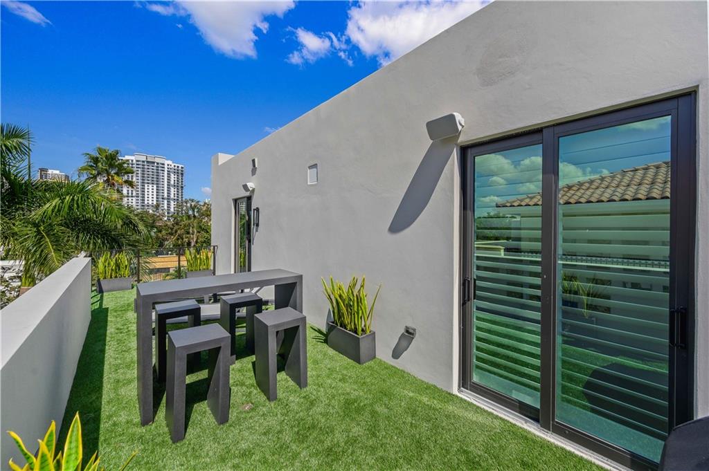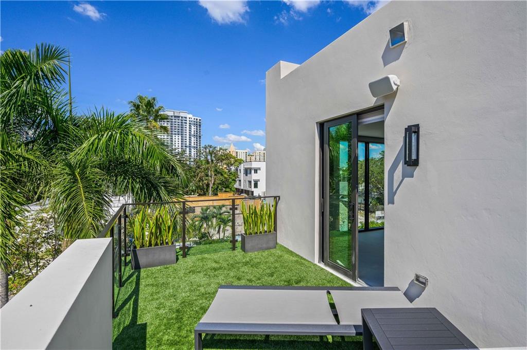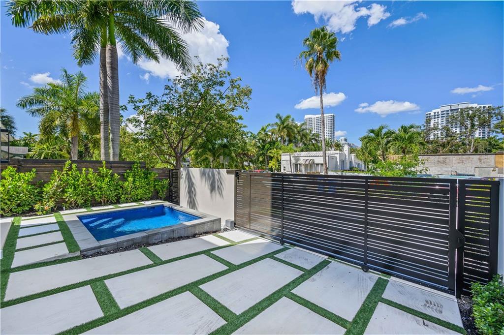Instant Gratification! A ready to move into new 2021 Las Olas neighborhood pool home. This house is cool, modern and light filled with many technology and design upgrades. Two story foyer, main floor living, dining kitchen with breakfast island, powder room and laundry. Walls of glass provide dramatic city skyline views. The living room opens to an open balcony. The top floor is dedicated to the primary suite, and accesses a roof level terrace with gas grill and more fabulous views. All three levels are served by elevator. Gated drive, a splash pool and two car garage (over 10 ft height) has epoxy pebble flooring and slat wall storage system. An electric outlet is in place for EV charging. [Information is from 3rd party sources including BCPA and is believed accurate but not warranted].