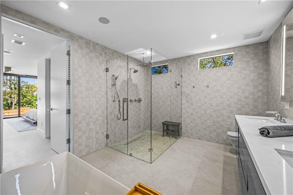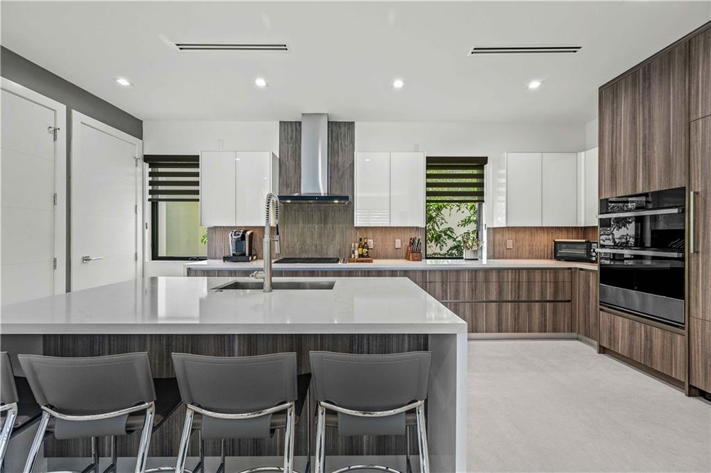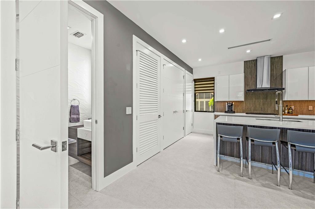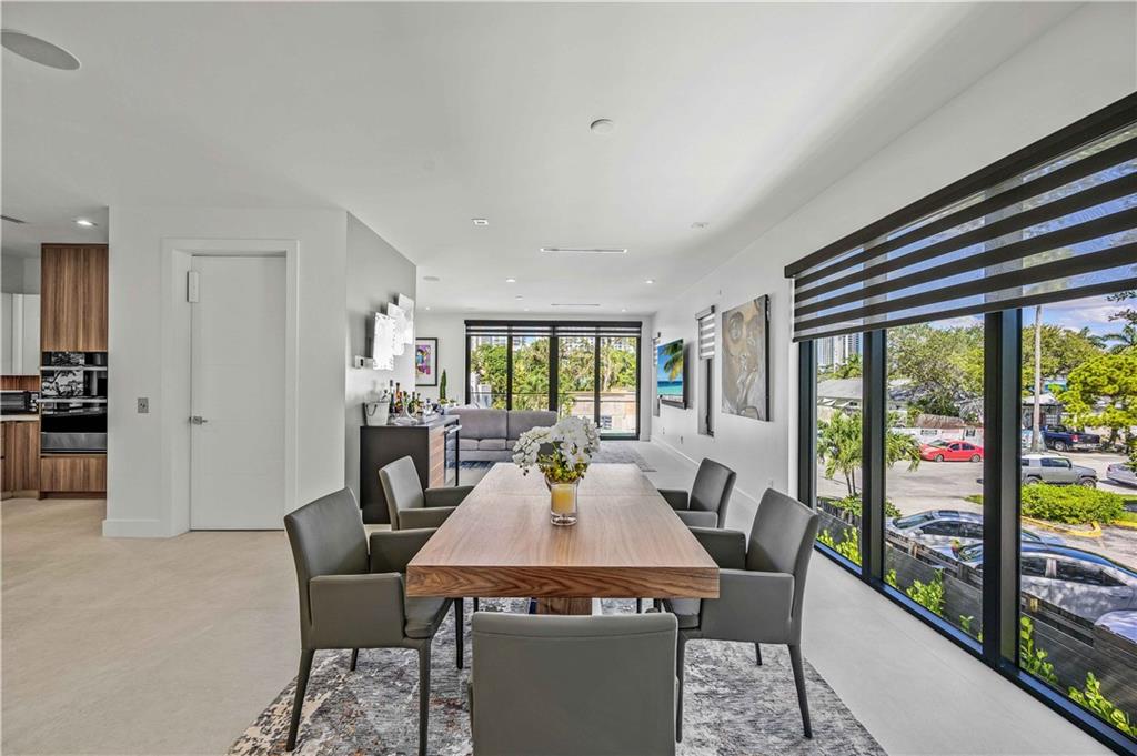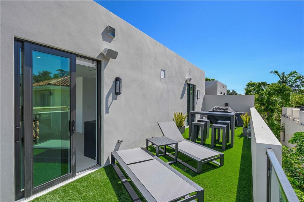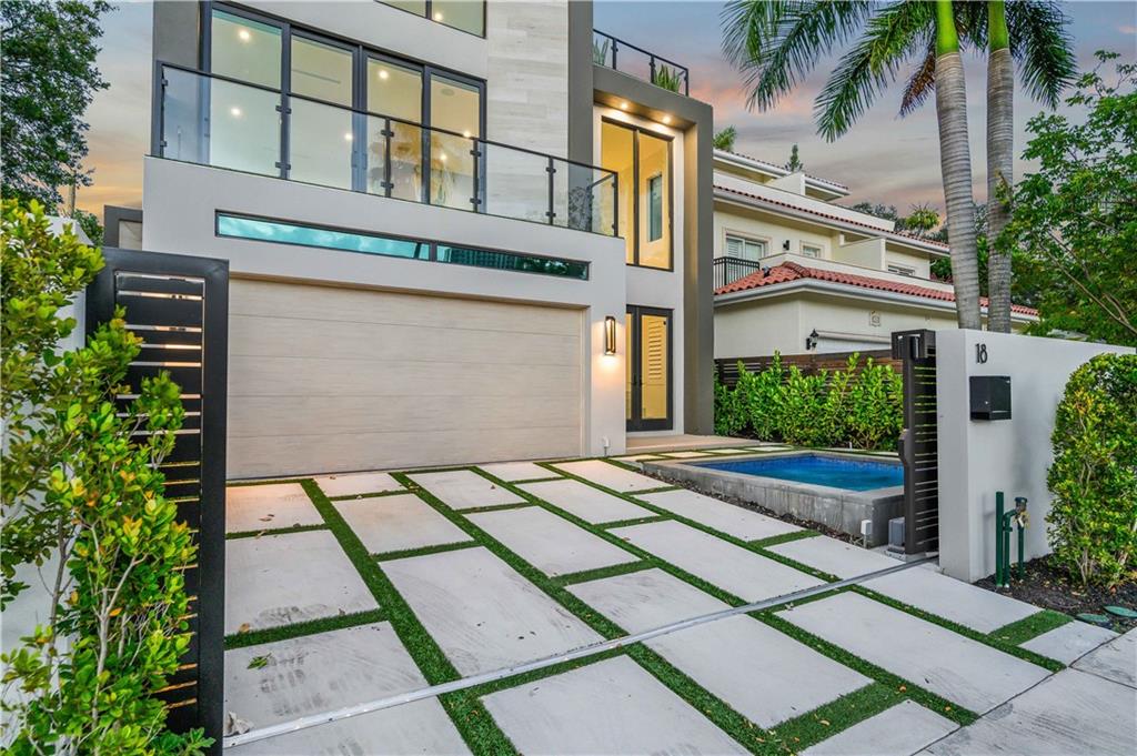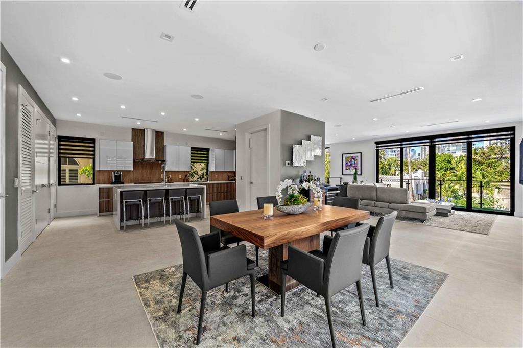Instant Gratification! A ready to move into new 2021 Las Olas neighborhood pool home. This house is cool, modern and light filled with many technology and design upgrades. Two story foyer, main floor living, dining kitchen with breakfast island, powder room and laundry. Walls of glass provide dramatic city skyline views. The living room opens to an open balcony. The top floor is dedicated to the primary suite, and accesses a roof level terrace with gas grill and more fabulous views. All three levels are served by elevator. Gated drive, a splash pool and two car garage (over 10 ft height) has epoxy pebble flooring and slat wall storage system. An electric outlet is in place for EV charging. [Information is from 3rd party sources including BCPA and is believed accurate but not warranted].