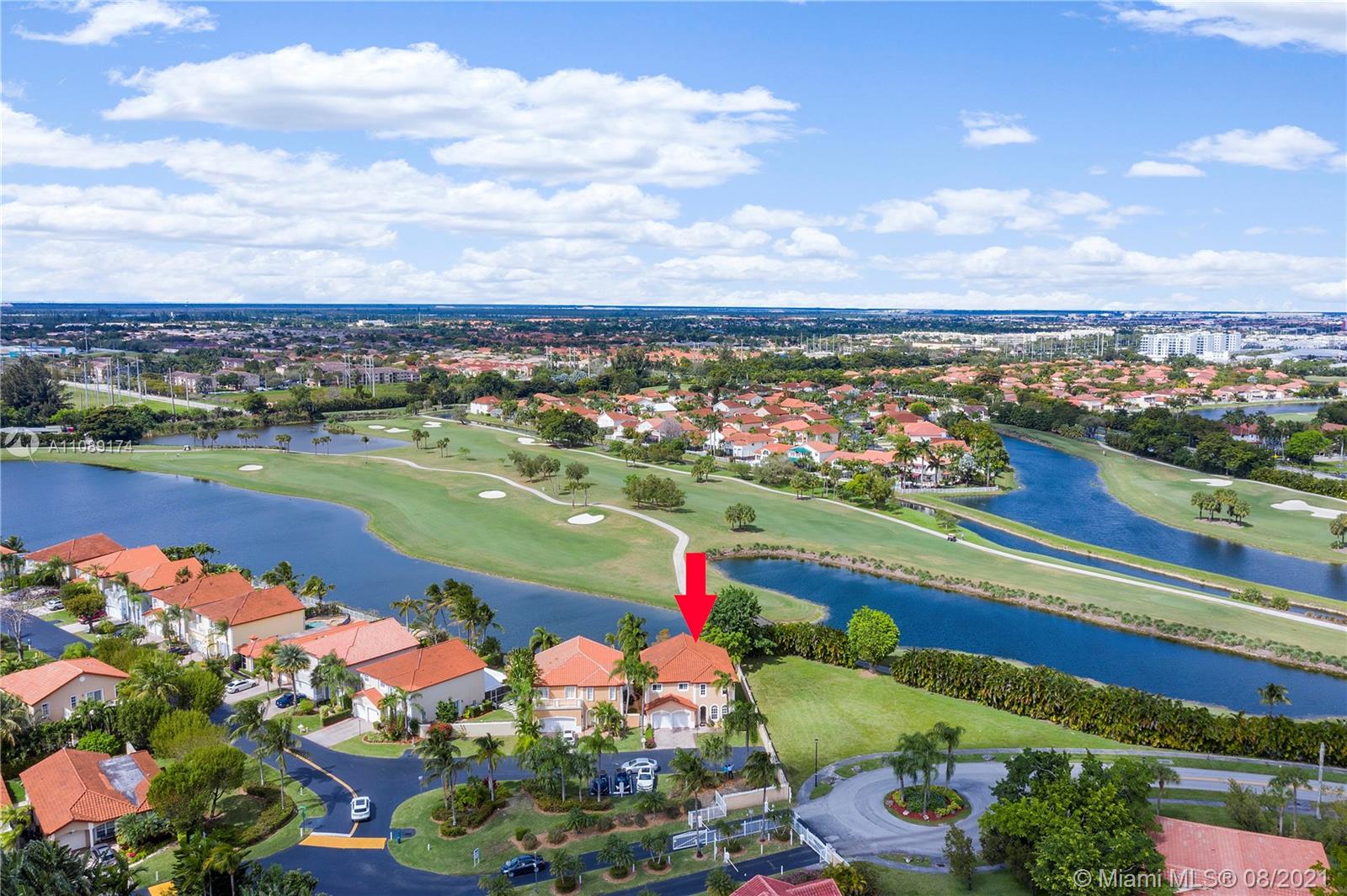 Great Corner Lake & Golf View 4 Beds & 2 1/2 Baths Single Family House located in the well known & desired community of Doral Dunes. It features 180 degrees Private location for those who wants to have easy accessibility and privacy coming home. This house has Wood Cabinet kitchen & Granite Counter tops. Tiles on First & Second Floors and Wood Brazilian Red Wood on the stairs. This property has 2 AC Units, Laundry Room, Aluminum Shutters and all doors are solid & Firm Wood. It has almost 3000 SQFT under AC and a lot size of 5610 SQFT with plenty of room to build a pool. The Doral Park Country Club is just a few steps away and shares a great lap and recreation Pool, Gym, Sauna, Jacuzzi, Tennis, Volleyball, Basketball, Kids playground, Bar, Restaurants and party Area. Please call LA.