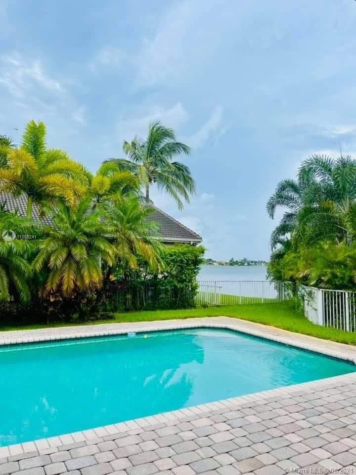 One Story, 5 beds, 3 Bathrs 2.951 Sq ft. 0.31 Acres. Lot dimensions: 13304 Sq ft. Large Pool, 2 Cars Garage and two cars Drive away, Corner Unit. No Traffic, dead end street, Lake view from both sides! Large Family Room, Living Room, Great Kitchen with Island , 2 A/C units. Master beds located in one side of the house, 3 beds in the other side of the house and a separate bed with bath is in the corner of the house, quite easy to be transformed in an efficiency room with separate entry. Covered patio area for BBQ next to the pool! Lots of windows in the house and hurricane shutters in most of the windows! Beautiful landscaping! Low HOA, includes the house alarm and the basic cable! House is in Sunset Lakes with club house,pool, fitness center, 24 hrs Security. New sprinklers. New carpet.