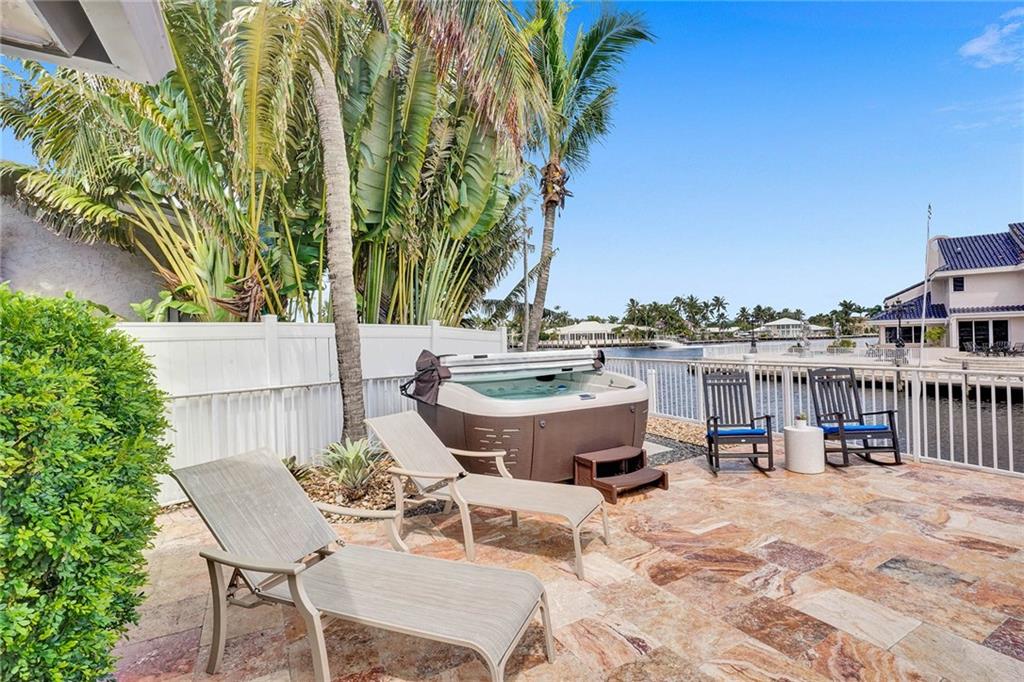 South Florida living at its best! A boater's paradise in the gated community of Bermuda Riviera off of A1A. Home is located on a quite cul-de-sac, one home in from the intracoastal waterway. 100 foot dock on deep water frontage with boat lift. Brand New tiki hut, newer jacuzzi, resurfaced heated salt water pool with new cascading water fall and beach area. Impact windows and doors. New landscaping and stone work around home. New rain gutters and automatic organic mosquito control system. Bosch kitchen appliances. Highly desirable Bayview Elementary district. Measurements believed to be accurate based on public records but should be verified by buyer.