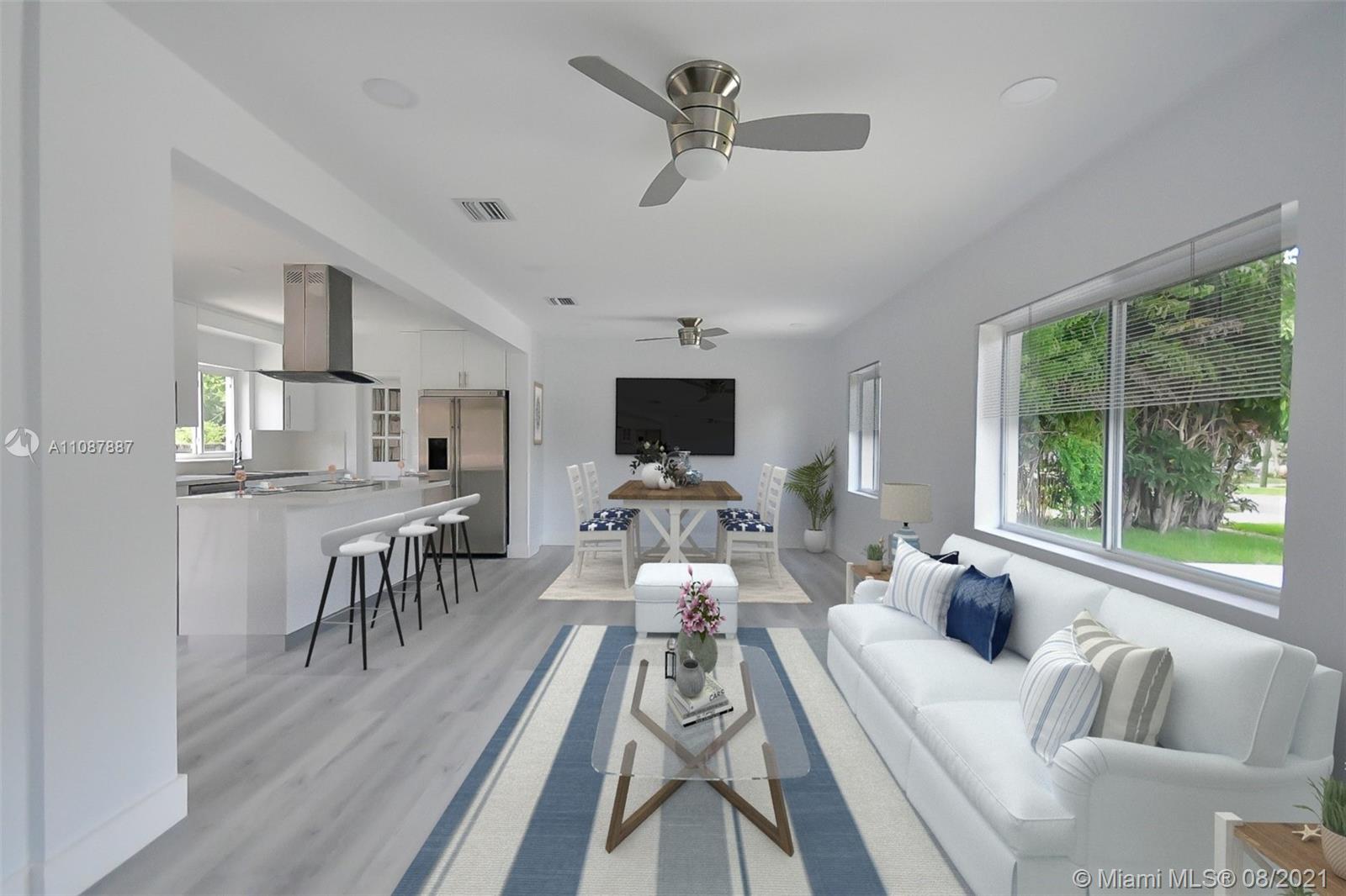 Create your very own private oasis in charming, historic Griffing Biscayne Estates. This home is beautifully renovated with excellent craftmanship. All new and ultra modern open living. New porcelain tile bathroom. Spacious kitchen features a glass cooktop island & custom made cabinets. Calacatta quartz countertops & backsplash. SPC flooring & hardwood baseboards. Smooth ceilings & walls. New ceiling fans. LED recessed lighting with dimmers, Impact windows & doors. Fully equipped laundry. Epoxy garage floor. Gutters with rain chains & outdoor lighting. Two comfortable driveways. Privately fenced, aluminum gates. Tankless water heater, beautiful landscaping with sea grape, mango & large avocado tree. New sprinkler system. Argentine Bar B Que. All done with permits. SHOW BY APPT ONLY!