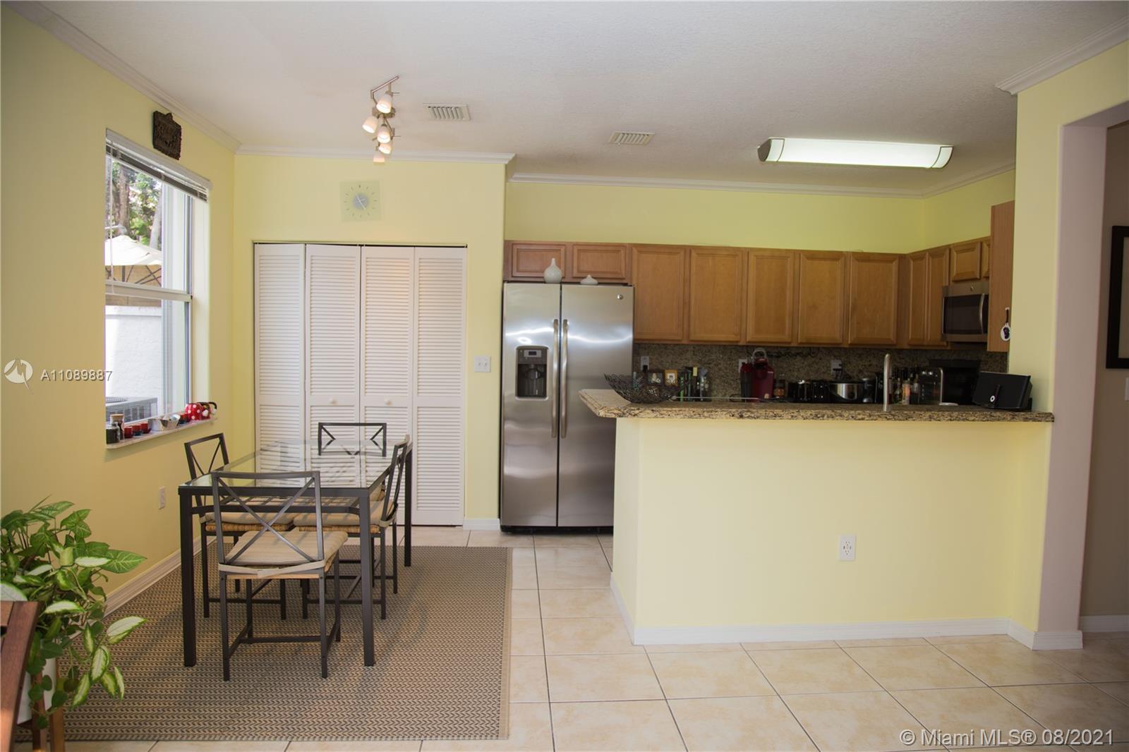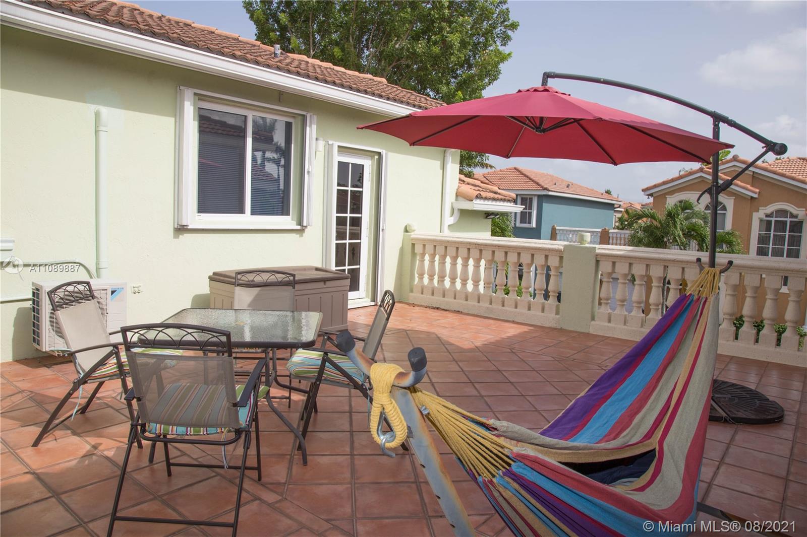 This beautiful Mediterranean style two story pool home in the safe and family friendly gated community of Piazza Vecchia. This pool home features 3 bedrooms, 2.5 bath, and an additional half bathroom located in the pool area. Spacious/Open floor plan offers many updates throughout including kitchen with quartz counter top and new SS appliances, relaxing pool and backyard patio, additional entertainment/terrace area above garage with access to back patio and second floor. Huge master room, master bathroom with double sink, separate Roman bathtub and shower, plenty of closets and storage. Great location near A rated schools, major malls, parks and highways. HOA includes cable, internet, ADT security system and common areas. Home is priced to SELL & Easy to show!
