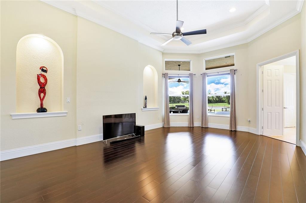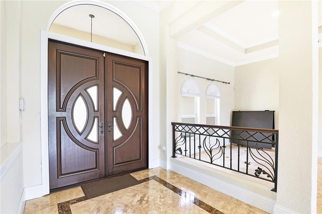 Lake front Estate located in the prestigious WOODBRIDGE RANCHES, huge yard w/lakeside amazing view of fountain, heated pool. Owner has spent over $150,000.00 in upgrades, Open Cell Foam insulation , hardwood floors, internal /exterior lighting upgraded 3 years ago to include flood lights throughout the house, upgraded landscaping with new hedges. new fence additional trees and sprinklers, landscape lighting , custom made Mahogany impact resistant front door, impact resistant windows & doors, new filter and pool heater, new KitchenAid Refrigerator, custom blinds, Premium Audio Speakers in cover patio and family room, AC compressor (2Years old),11 camera system with FPI, Premium ADT alarm system, fully operational gym, a must see. Move in ready.model home