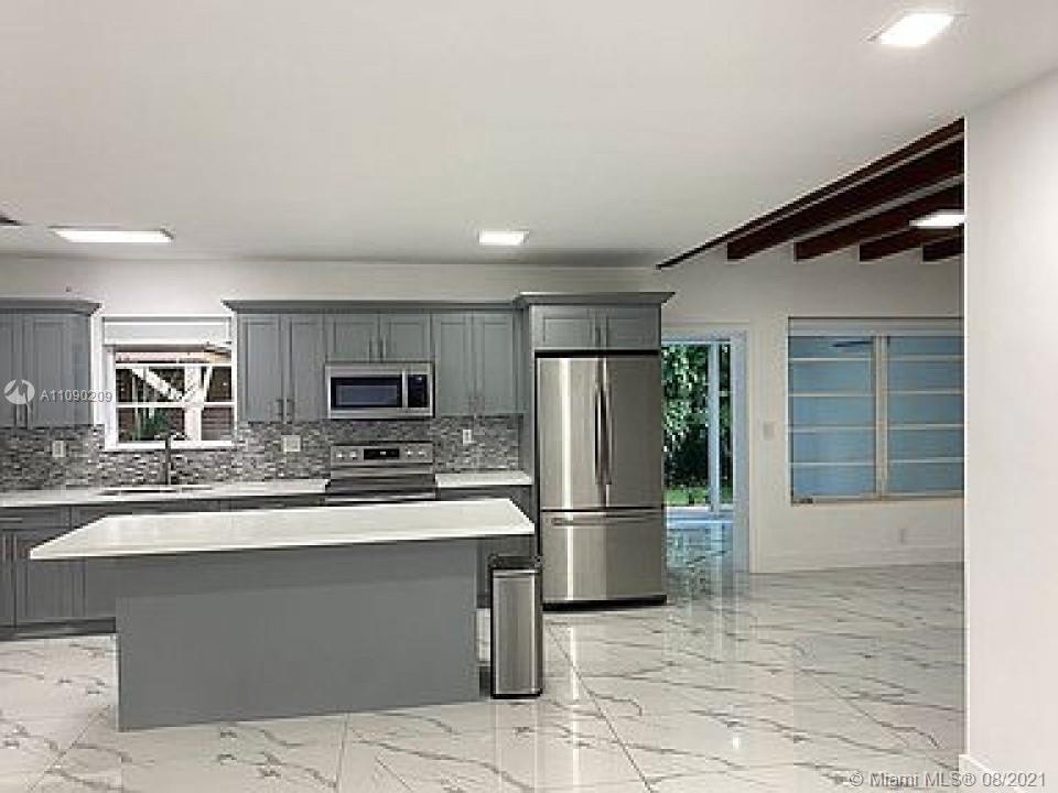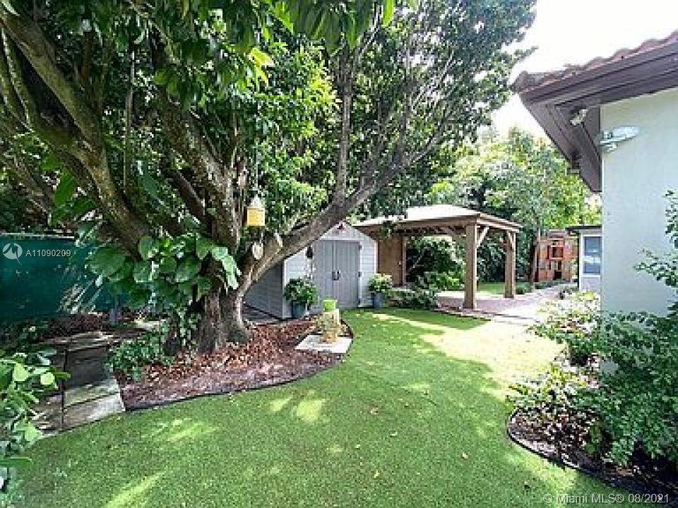 Beautiful Remodeled House on a large corner lot in a charming and central Neighborhood in NE belonging to (Unincorporated Miami Dade). This home feels great, surrounded by lush Gardens. Porcelain floors (1,282 sqft) under air and around 1,800 sqft under roof. 3 Bedrooms and 2 baths, amazing layout, bright and fresh with barrel tile roof, gas water heater, florida with impact windows and sliding doors. Large semi-enclosed Carport. Patio with delicately designed landscaping and sprinkler system. Yadistry Wooden gazebo with metal roof (12x16) and Shed 8x10. A/C has less than 1 year. Washer, dryer, refrigerator, microwave and stove like new.