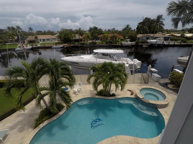 Stunning and perfectly laid out describes this custom built Key West - British West Indies style home. Its oversized sized lot is located on a private double cul-de-sac with a beautiful grassy area with shade trees. The back of the home is a pure standout. It has 105’X10' of cement dock on a wide canal, huge lawn with a heated pool and jacuzzi. This home was built with outdoor living as its main focus. 5 bed/5bath with private in-law suite. This home has a huge patio including everything you need to cook for all your friends. The prevailing SE winds and shade make the exposure of the back yard extremely comfortable all year round, even in the summer. Don't miss this once in a lifetime opportunity to own a piece of paradise. More photos and 3D walk through coming soon!