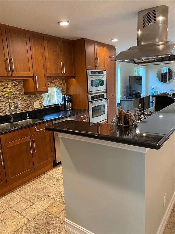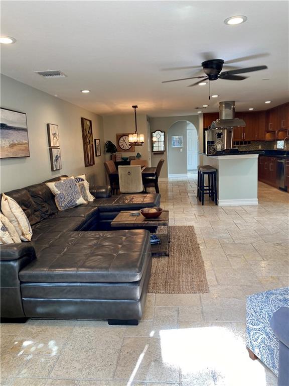 Downtown living at its finest! Beautiful tri-level townhome just steps away from the New River. Boasting over 3200 sq. ft. with 4 bedrooms, 3 1/2 baths, loft, private elevator, and 2 car garage- all with NO HOA. 3rd floor wrap around terrace overlooks a private tropical oasis featuring a gas heated saltwater pool with an expansive patio area. The 2 story foyer entrance with a 1/2 bath and storage room lead to a custom kitchen with a 5 burner gas cooktop, quartz counter tops, and SS appliances that opens to a spacious dining and living area. The 2nd level features the primary suite with spa-like bath, dual walk-in closets and balcony, another en suite BR w/extra closet space and balcony. loft/office and laundry area. 2 add'tl BR's on 3rd fl., 3rd full bath, and kitchenette for