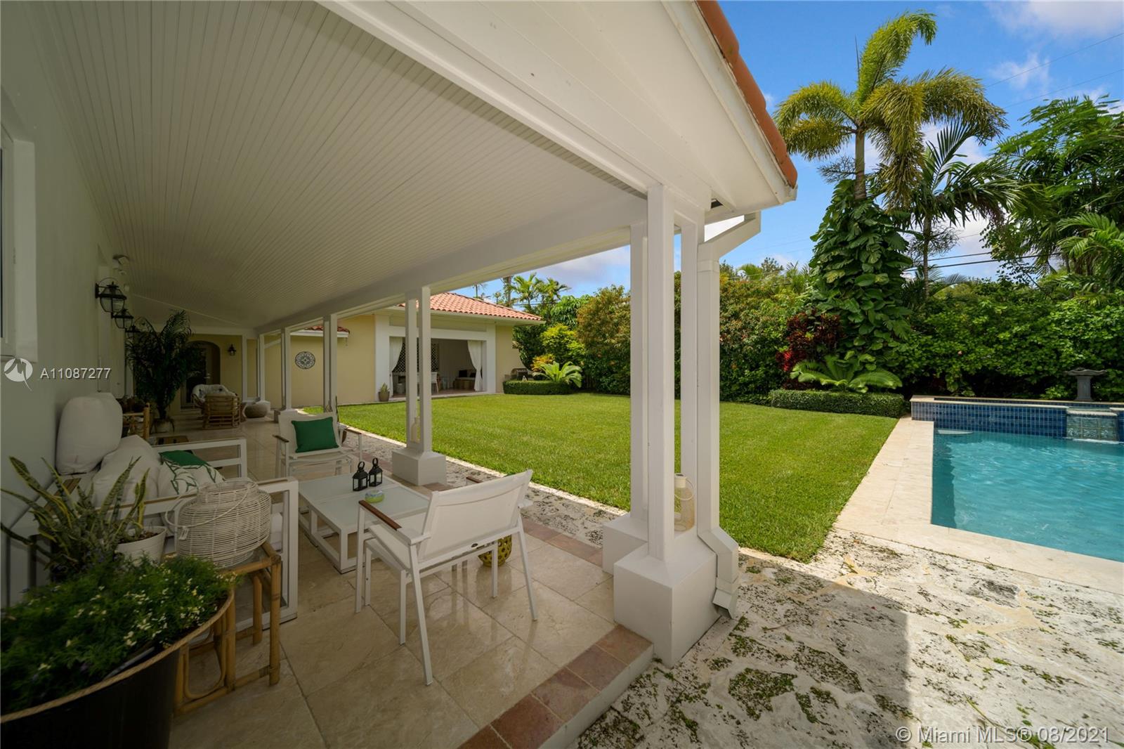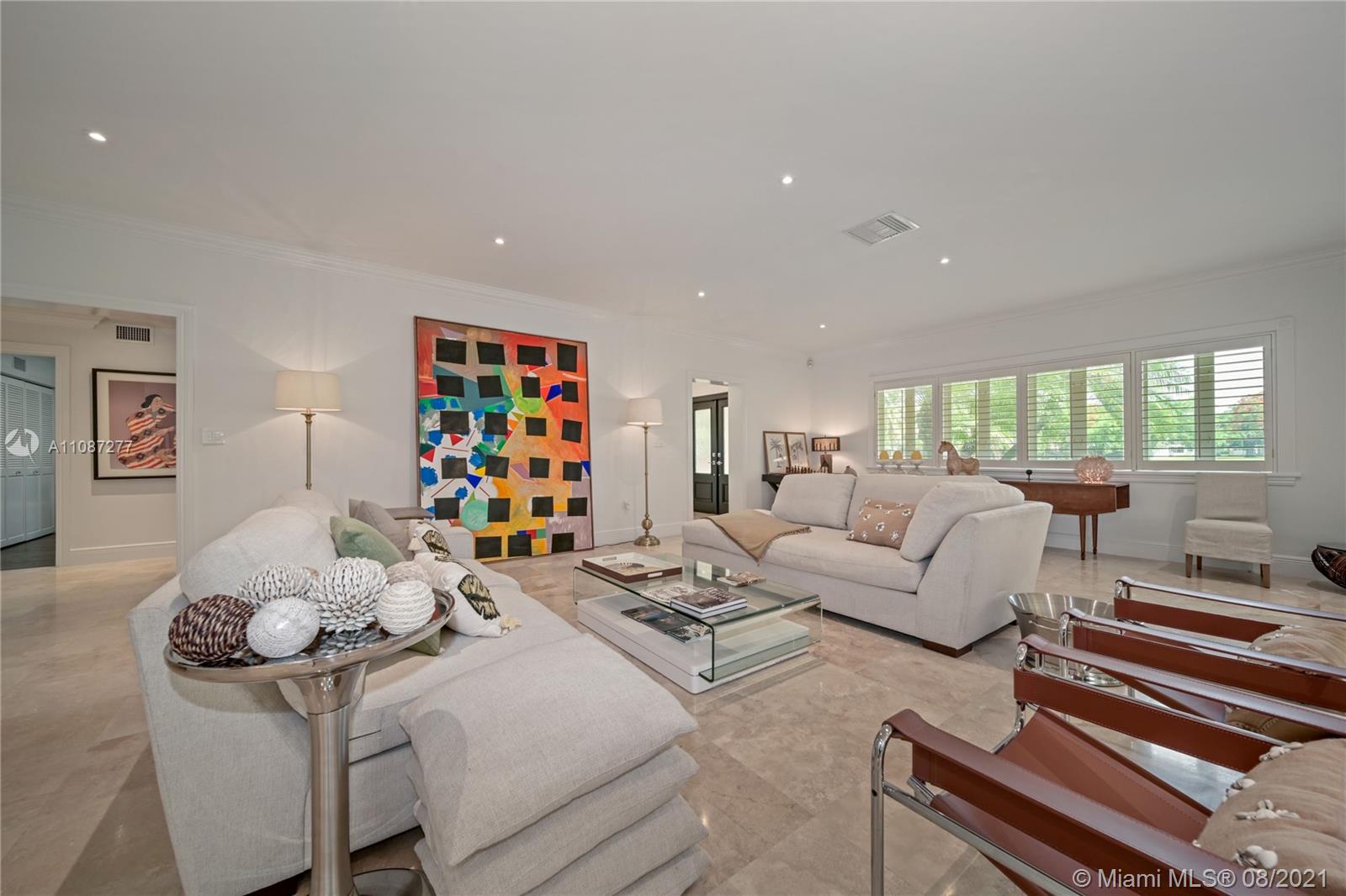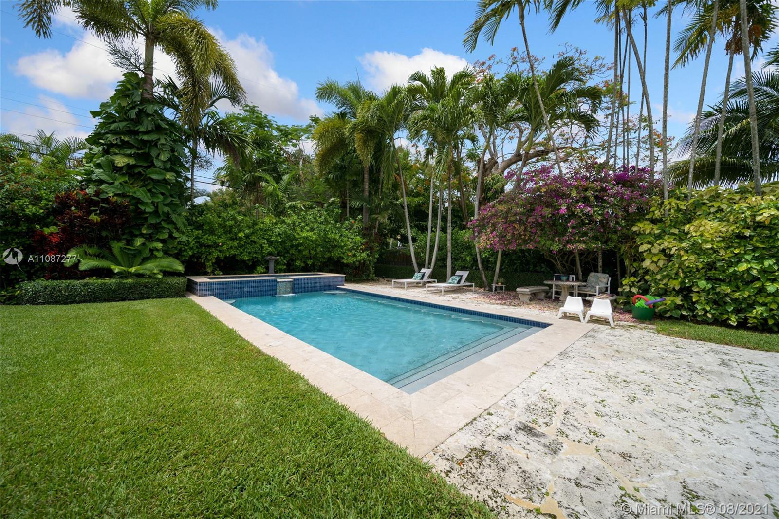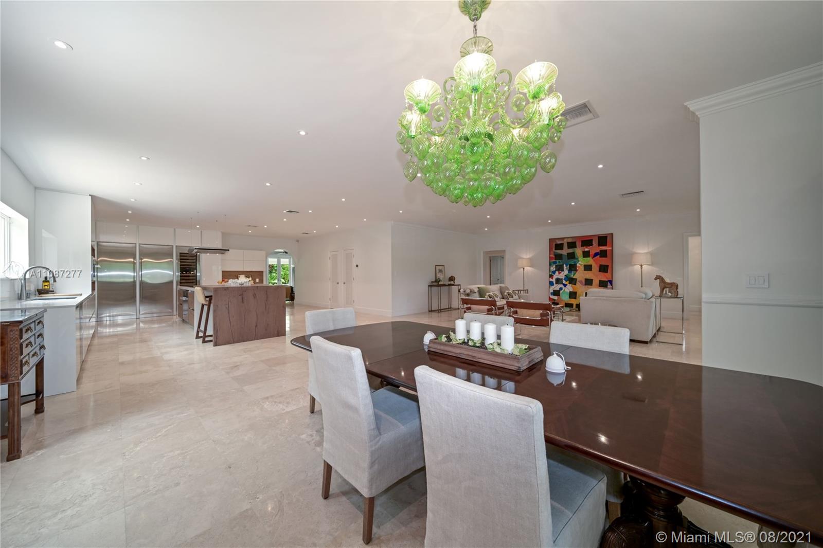 An extraordinary opportunity to own a bespoke renovated golf front residence in the iconic city of Coral Gables. This estate offers unparalleled beauty and privacy. This is a true family compound, with 6 bedrooms, 5 bathrooms, 1 half bath, and spectacular outdoor living space and pool plus access to a beautiful cabana with a bar designed to entertain. The property's interior styling reflects a transitional aesthetic with modern accents. No expense spared renovation: Updated Pluming and Electricity, Beautiful Brand New Gourmet Italian kitchen, white quartz countertops. Sub Zero/Miele appliances, travertine and wood flooring, 2 Master bedroom suites & 1 Junior suite plus 4 additional bedrooms. Enjoy the Miami life style at the most sought after properties and locations in South Florida.