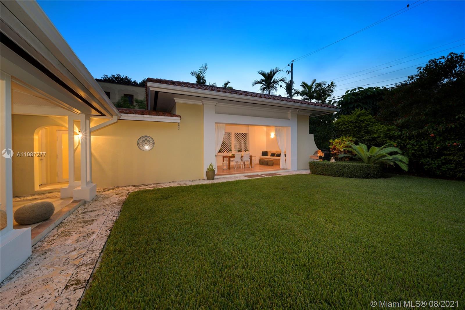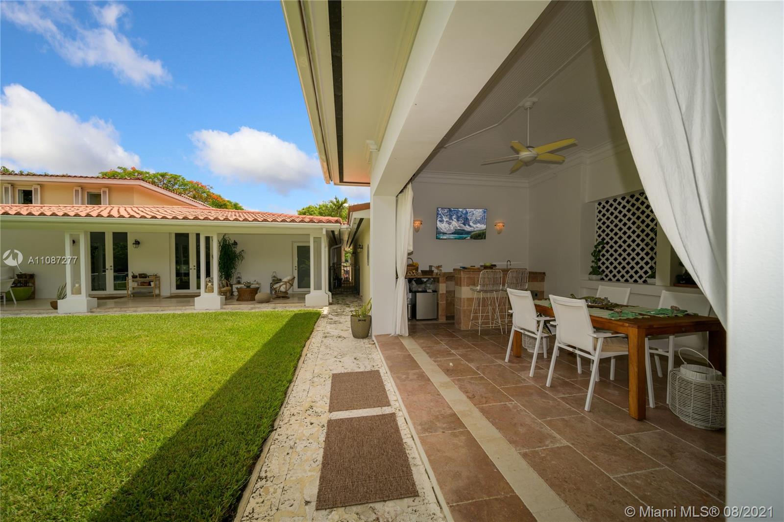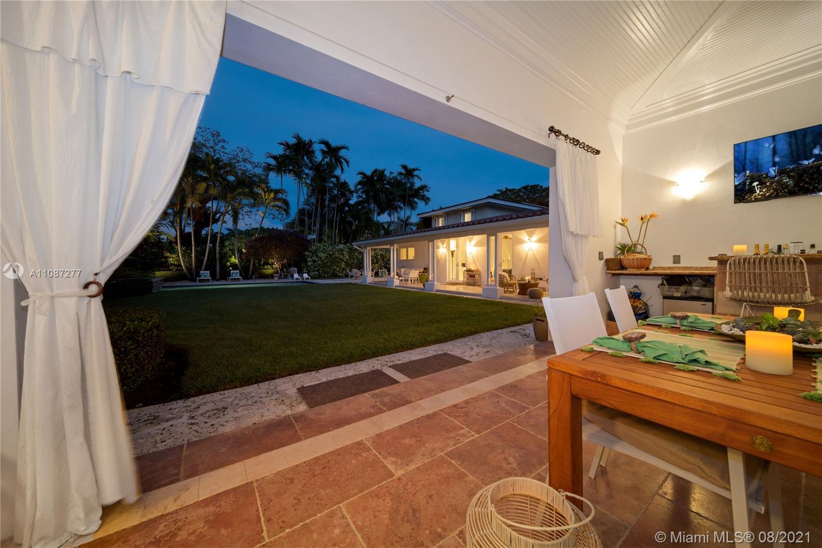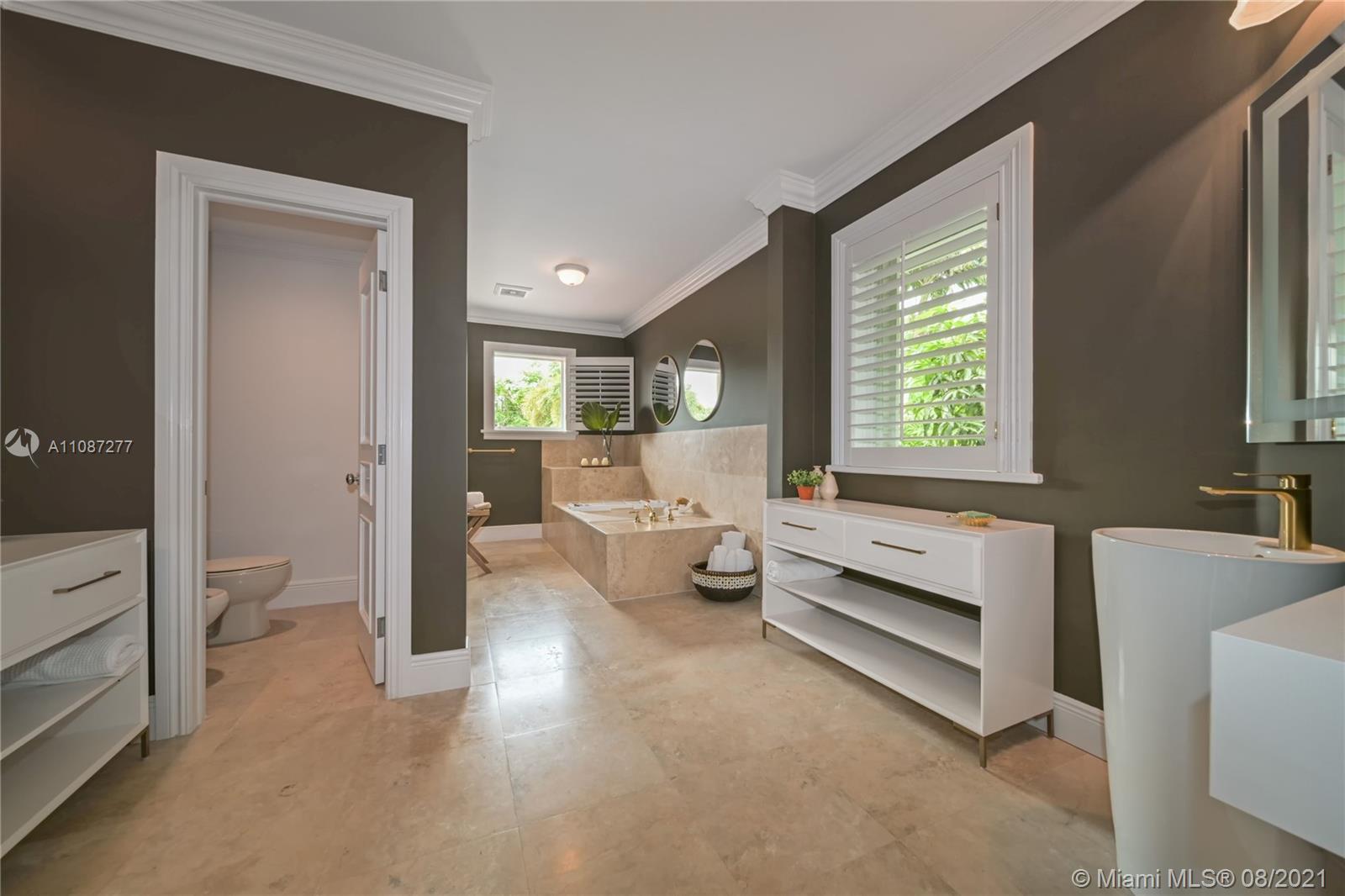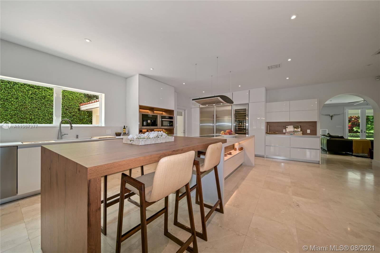 An extraordinary opportunity to own a bespoke renovated golf front residence in the iconic city of Coral Gables. This estate offers unparalleled beauty and privacy. This is a true family compound, with 6 bedrooms, 5 bathrooms, 1 half bath, and spectacular outdoor living space and pool plus access to a beautiful cabana with a bar designed to entertain. The property's interior styling reflects a transitional aesthetic with modern accents. No expense spared renovation: Updated Pluming and Electricity, Beautiful Brand New Gourmet Italian kitchen, white quartz countertops. Sub Zero/Miele appliances, travertine and wood flooring, 2 Master bedroom suites & 1 Junior suite plus 4 additional bedrooms. Enjoy the Miami life style at the most sought after properties and locations in South Florida.