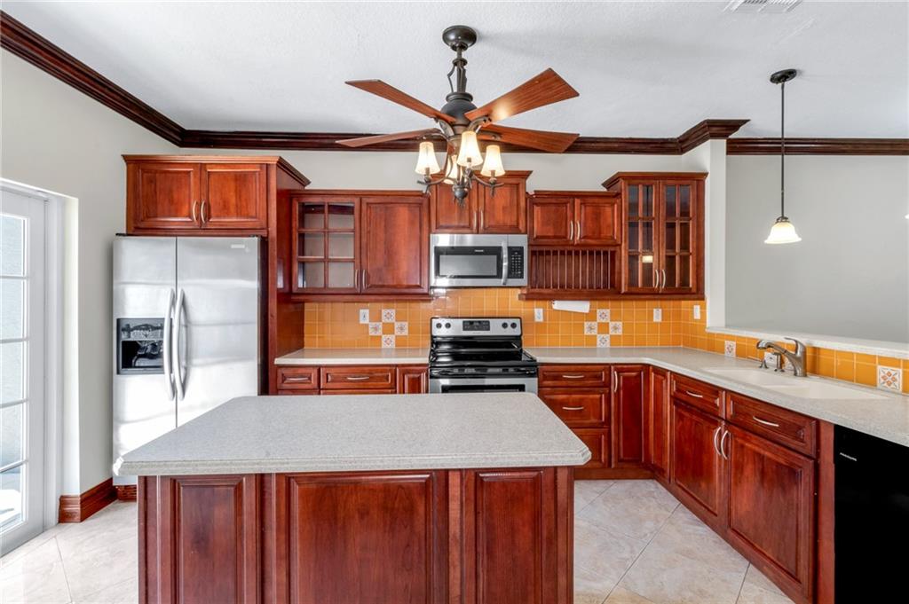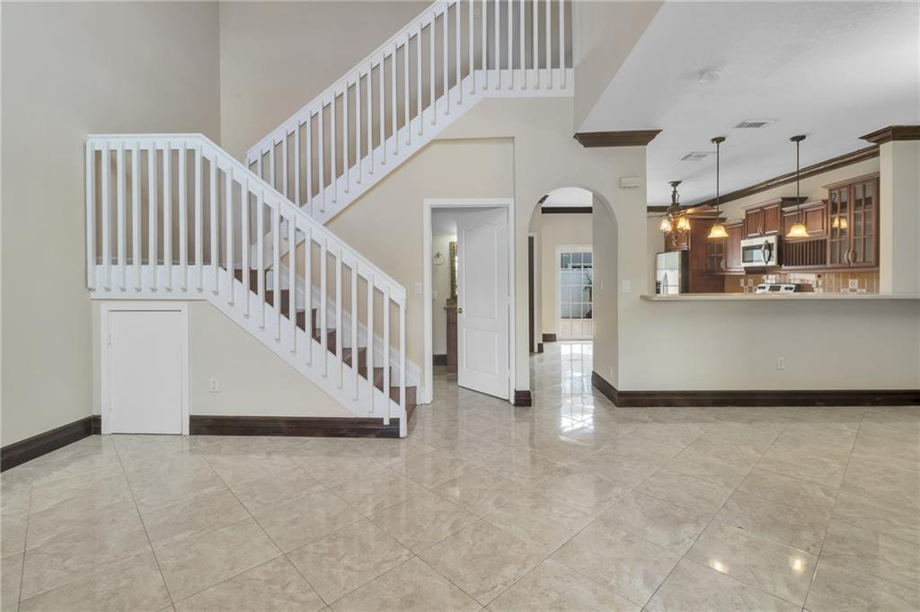 You'll love making this gorgeous home your new home! Featuring a bedroom & full bath on the first floor, a double wide drive & garage allow for three vehicles, a covered entrance, backyard complete with a charming patio area & a privacy fence, a perfect place for your morning coffee. The interior boasts a stylish tile flooring throughout the first floor and wood laminate floors in upper bedrooms & there is a kitchen equipped with Corian countertops & wood cabinets. 24-hour guard gated community with a very nice clubhouse with a beautiful pool, gym, and jacuzzi for it's residents. Make this your home today!