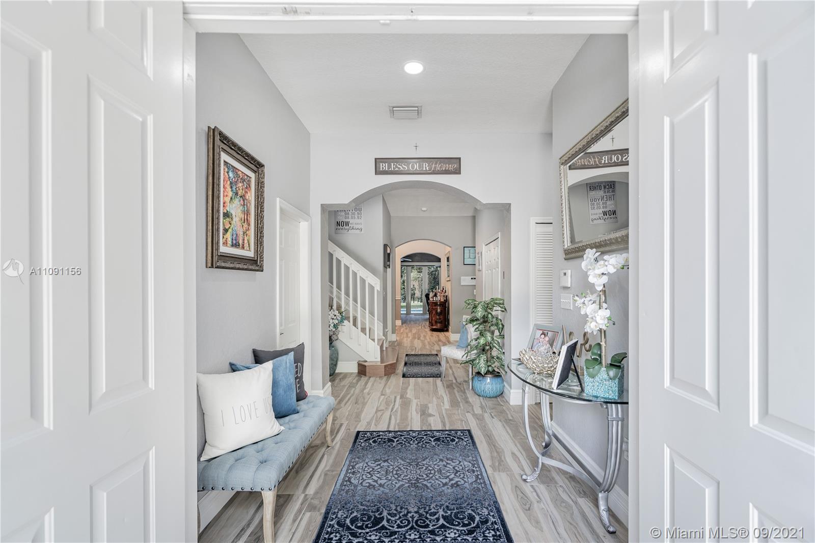 Sellers are the original owners of this beautiful 4 Bed 3 full baths magnificently kept home in Monarch Lakes. The property seats on an oversized lot with a beautifully kept landscape, pool with jacuzzi and surrounding patio is a complete oasis to either relax or entertain guest. Great floor plan with a bedroom and full bath downstairs, spacious oversized family room, newly renovated kitchen with solid white wood cabinetry, quartzite countertops, new SS appliances, A/C is high efficiency system. Windows are decorated with plantation shutters, flooring is porcelain wood design and custom cabinetry in the living room. All closets have California custom cabinets and the garage has built in cabinet storage. There are many areas to feature definitely a must see! Don't miss out on this jewel!!