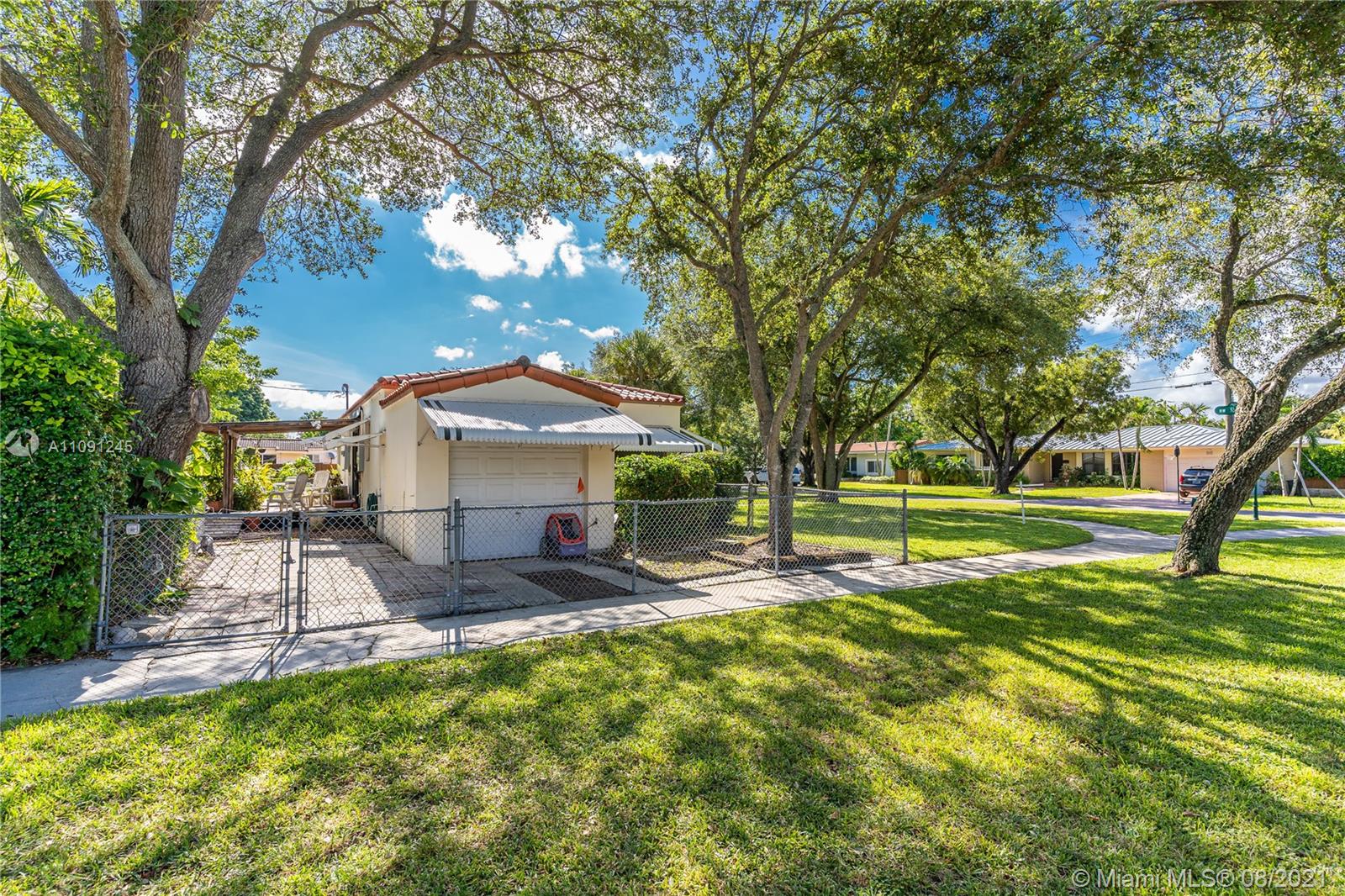 Original & cozy 1942 Miami Shores - Corner Lot Home - This unique home features 2 bedrooms +den, 1 bathroom, and 1 car garage. It has a galley style kitchen overlooking a spacious rear yard with room to extend or add a pool. Mature trees providing great shade and curb appeal. Beautiful original wood floors throughout with a maple inlay. New central AC unit. This home has so much potential. Ready for a new owner to make it their own. Call today and schedule a private tour.