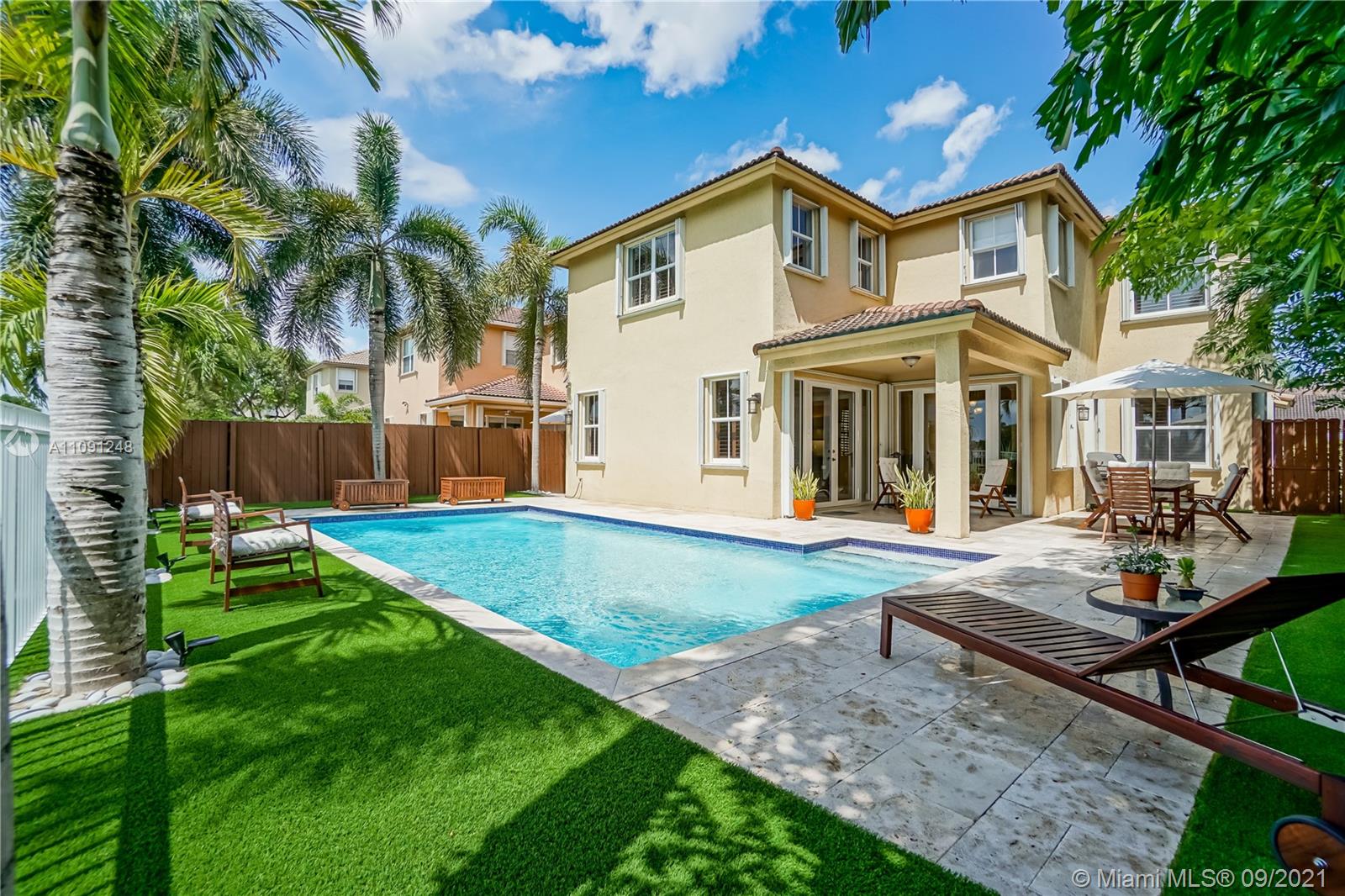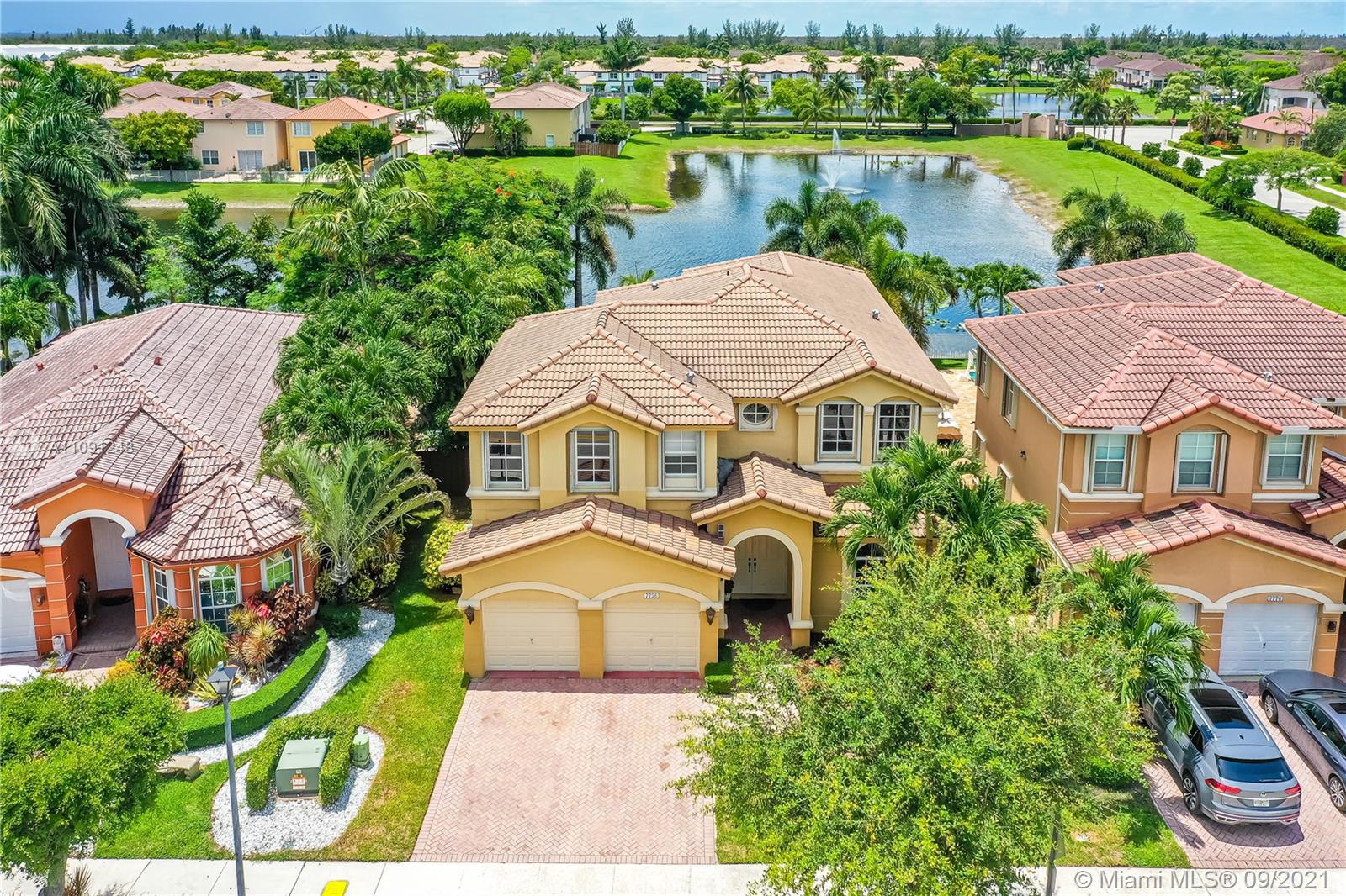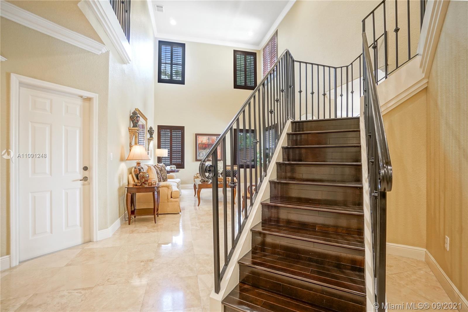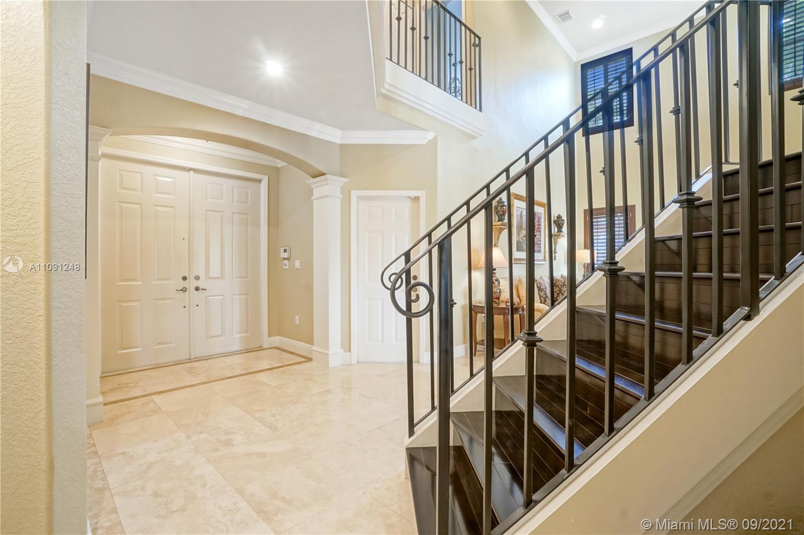 *CLICK ON VIDEO WALKTHROUGH* One of a kind Stunning Luxurious 4 Bedrooms/4 Baths Breathtaking views from your very own private back yard pool & lake paradise.*Fully upgraded* Marble floors throughout, elegant iron rail staircase w/ wood steps. Open concept gourmet kitchen w/ Italian wood cabinetry, quartz countertop, stainless steel appliances, 6 burner stove, convention oven. All have California custom made closets & extra large custom made master closet w/ cabinetry. Custom crown moldings & decorative wood plantation shutters throughout w/ French doors. Smart home system, wireless security cameras, alarm, 2 A/Cs w/ nest. 2 car tiled garage w/ cabinets. Pool w/ marble stone floors, salt water system. Hurricane accordion shutters on all windows. Roaming security. Move in ready! Won’t last!