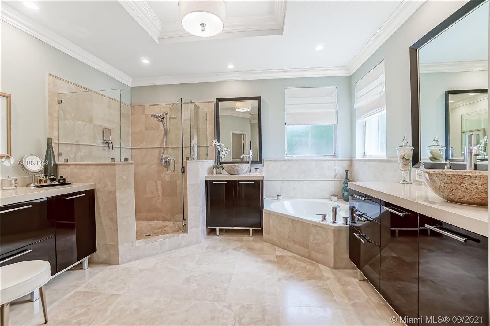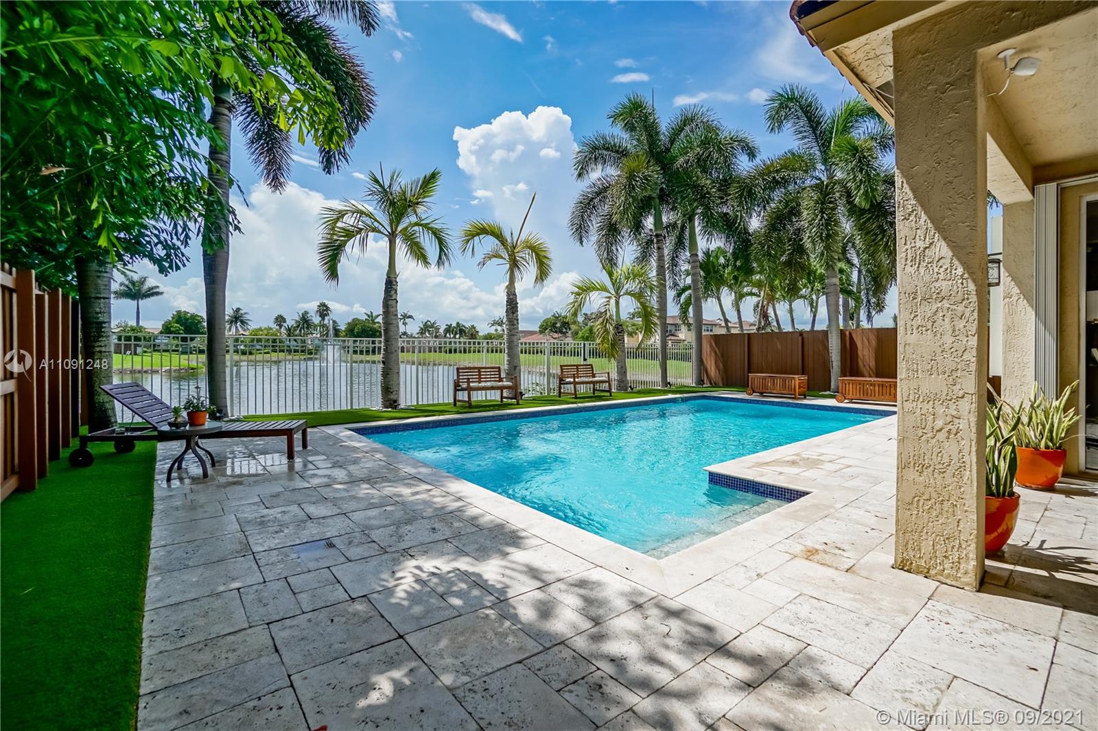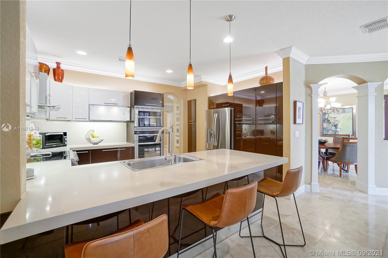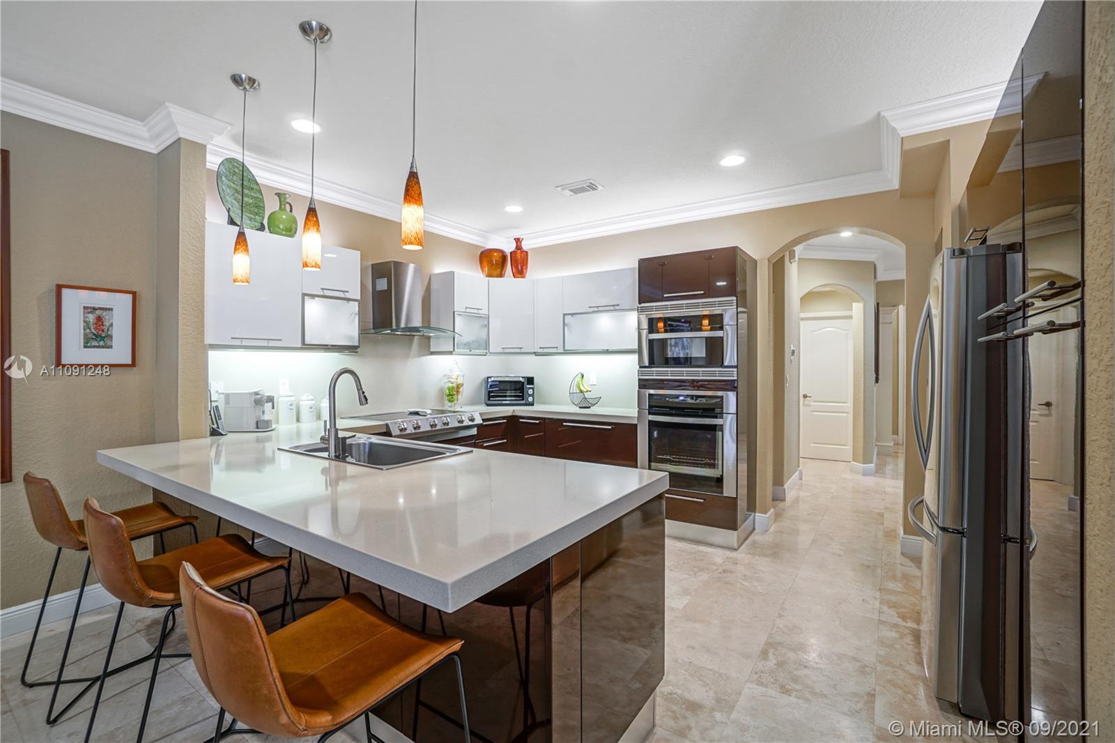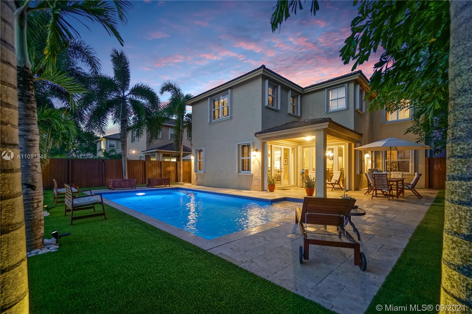 *CLICK ON VIDEO WALKTHROUGH* One of a kind Stunning Luxurious 4 Bedrooms/4 Baths Breathtaking views from your very own private back yard pool & lake paradise.*Fully upgraded* Marble floors throughout, elegant iron rail staircase w/ wood steps. Open concept gourmet kitchen w/ Italian wood cabinetry, quartz countertop, stainless steel appliances, 6 burner stove, convention oven. All have California custom made closets & extra large custom made master closet w/ cabinetry. Custom crown moldings & decorative wood plantation shutters throughout w/ French doors. Smart home system, wireless security cameras, alarm, 2 A/Cs w/ nest. 2 car tiled garage w/ cabinets. Pool w/ marble stone floors, salt water system. Hurricane accordion shutters on all windows. Roaming security. Move in ready! Won’t last!
