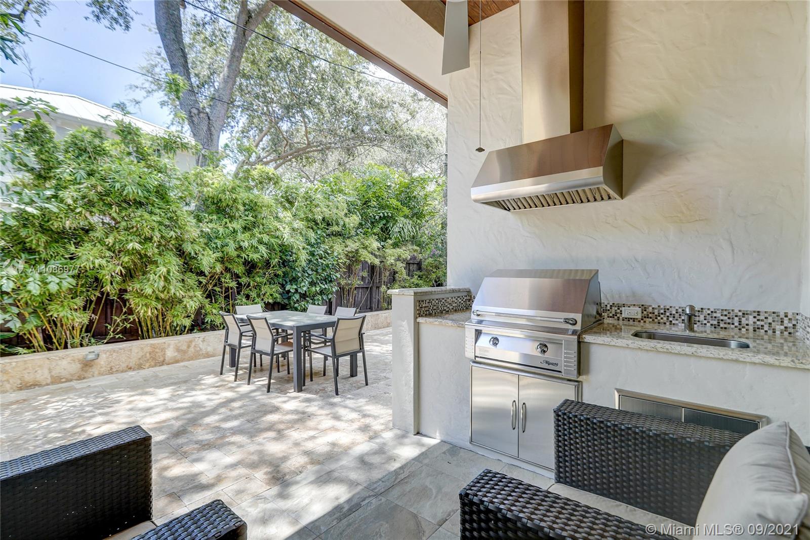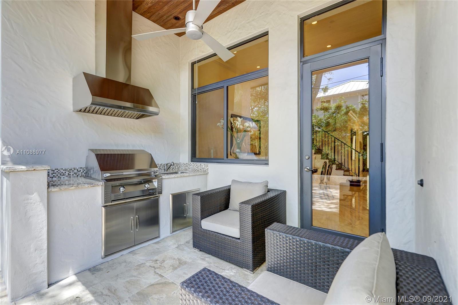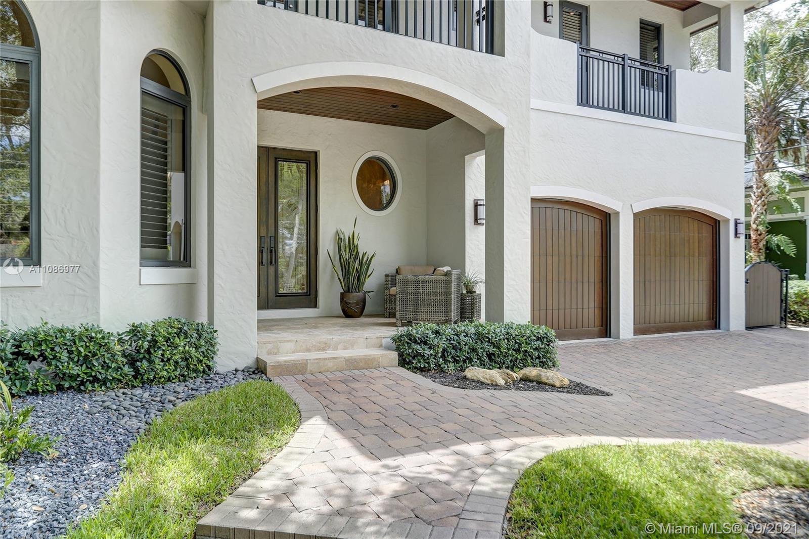 Located in Historic Rio Vista, built in '15 by luxury builder, Gulf & award-winning architect Art Bengochea, this tropically landscaped elegant, open concept home will check all your boxes. The chef's kitchen w/ gas cooking, double oven, custom wood cabinets, center island, wine cooler & counter seating is ideal for entertaining. Primary retreat w/ two custom closets & spa bath w/ tub & shower + 1st floor office/guest suite. Porcelain flooring downstairs, hardwoods up, where two oversized bedrooms w/ jack & jill bath w/ marble vanity share a large balcony overlooking downtown skyline. Impact windows & doors, volume ceilings throughout. Private fenced yard w/ natural gas summer kitchen. Perfectly located near newly redesigned Lauderdale Yacht Club, Downtown, Las Olas, Beaches & Airport.