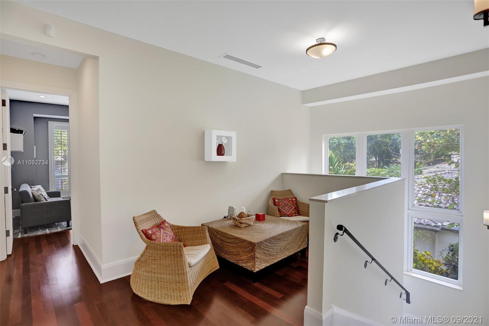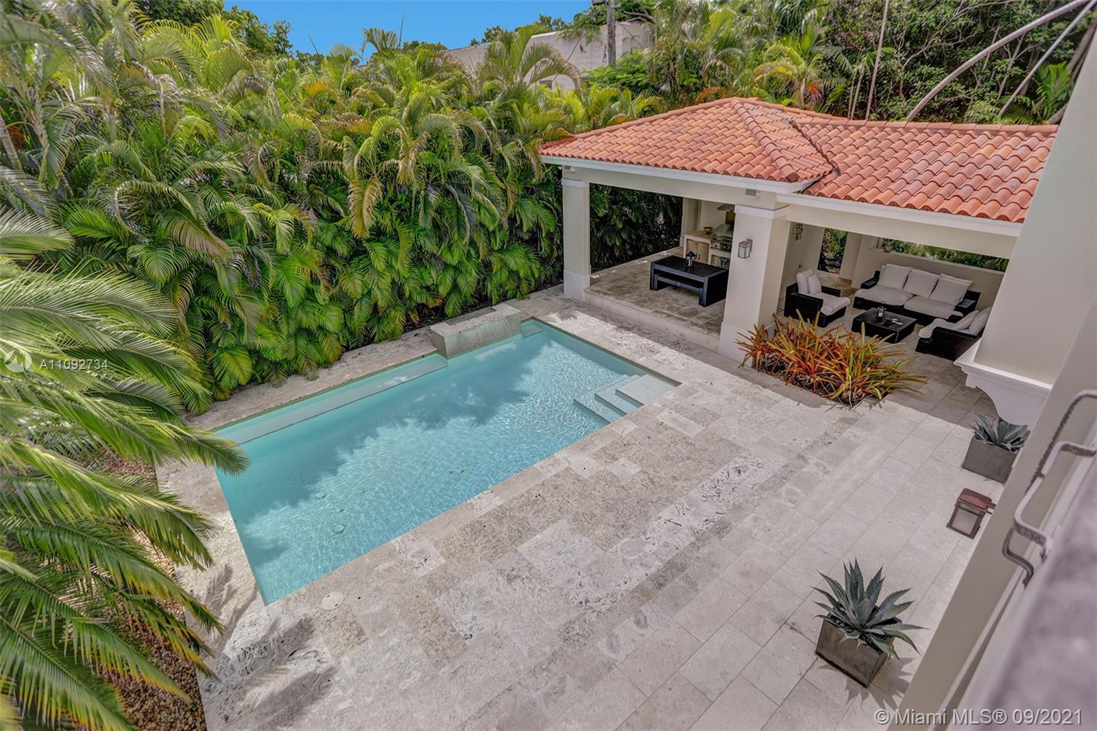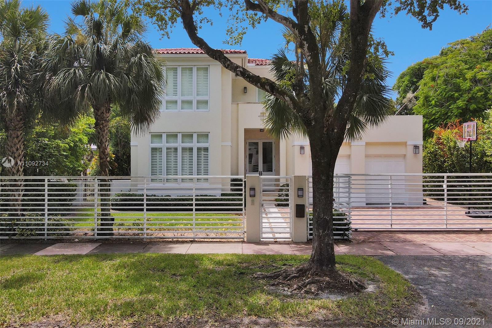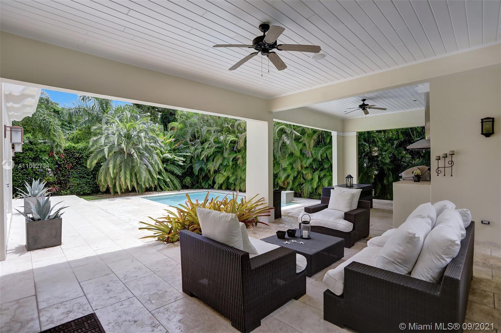 Stunning two-story home built in 2008, in the heart of Coral Gables designed to entertain! Home features an open concept floor plan with spacious areas & high ceilings, allowing plenty of natural light throughout. Relax under the covered terrace, with built-in grill & full cabana bath, and enjoy the lush landscaped backyard and sparkling pool. Modern kitchen with plenty of cabinet space & SS appliances. Home features 5 bedrooms + den/office/6th bedroom, all with en-suite bathrooms. The 2nd floor encompasses 3 generous size bedrooms & master suite with a large walk-in closet & private terrace overlooking the pool. Tons of storage, 2-car garage, all impact windows/doors, plantation shutters and more. Move-in ready! Near everything Coral Gables has to offer & only 15 minutes from MIA Airport.