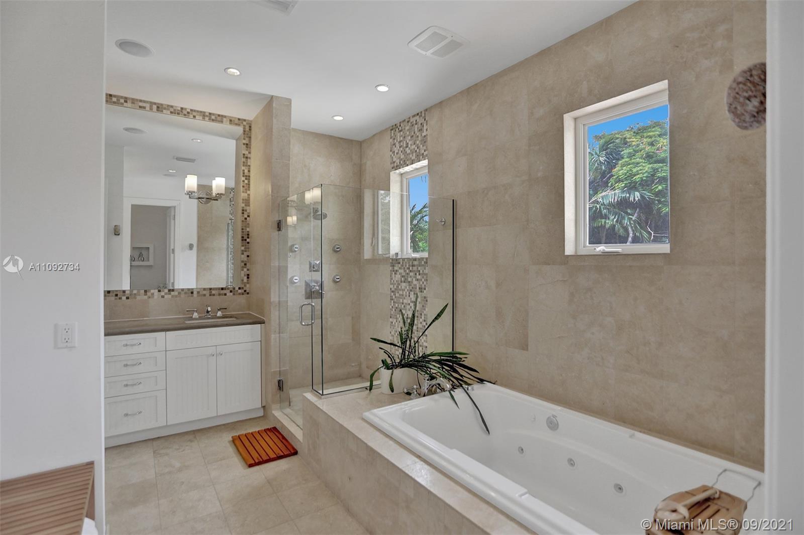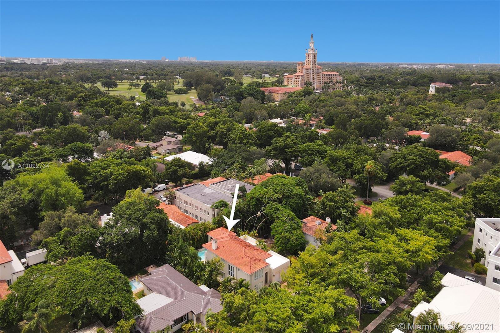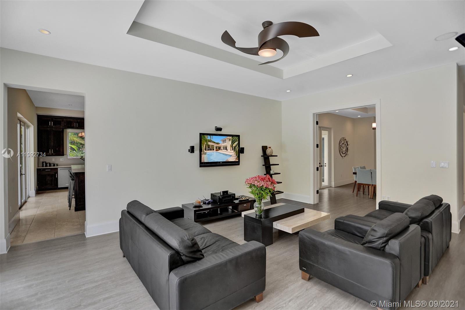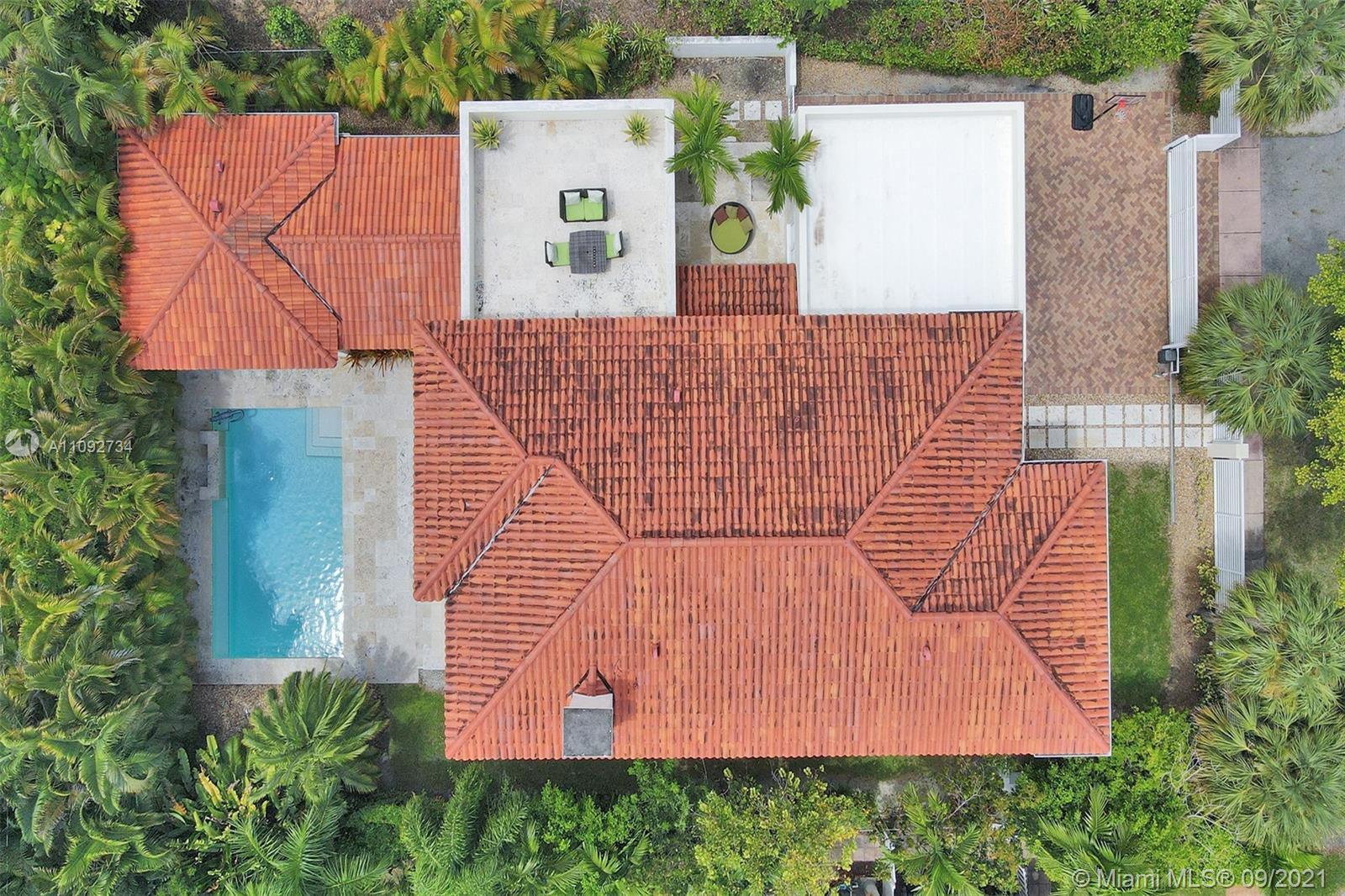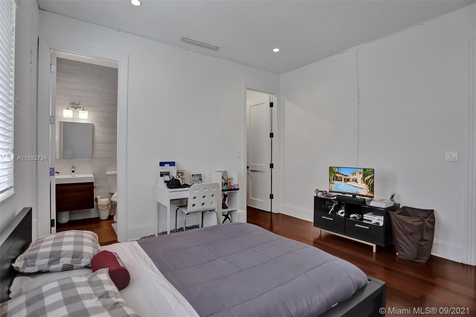 Stunning two-story home built in 2008, in the heart of Coral Gables designed to entertain! Home features an open concept floor plan with spacious areas & high ceilings, allowing plenty of natural light throughout. Relax under the covered terrace, with built-in grill & full cabana bath, and enjoy the lush landscaped backyard and sparkling pool. Modern kitchen with plenty of cabinet space & SS appliances. Home features 5 bedrooms + den/office/6th bedroom, all with en-suite bathrooms. The 2nd floor encompasses 3 generous size bedrooms & master suite with a large walk-in closet & private terrace overlooking the pool. Tons of storage, 2-car garage, all impact windows/doors, plantation shutters and more. Move-in ready! Near everything Coral Gables has to offer & only 15 minutes from MIA Airport.