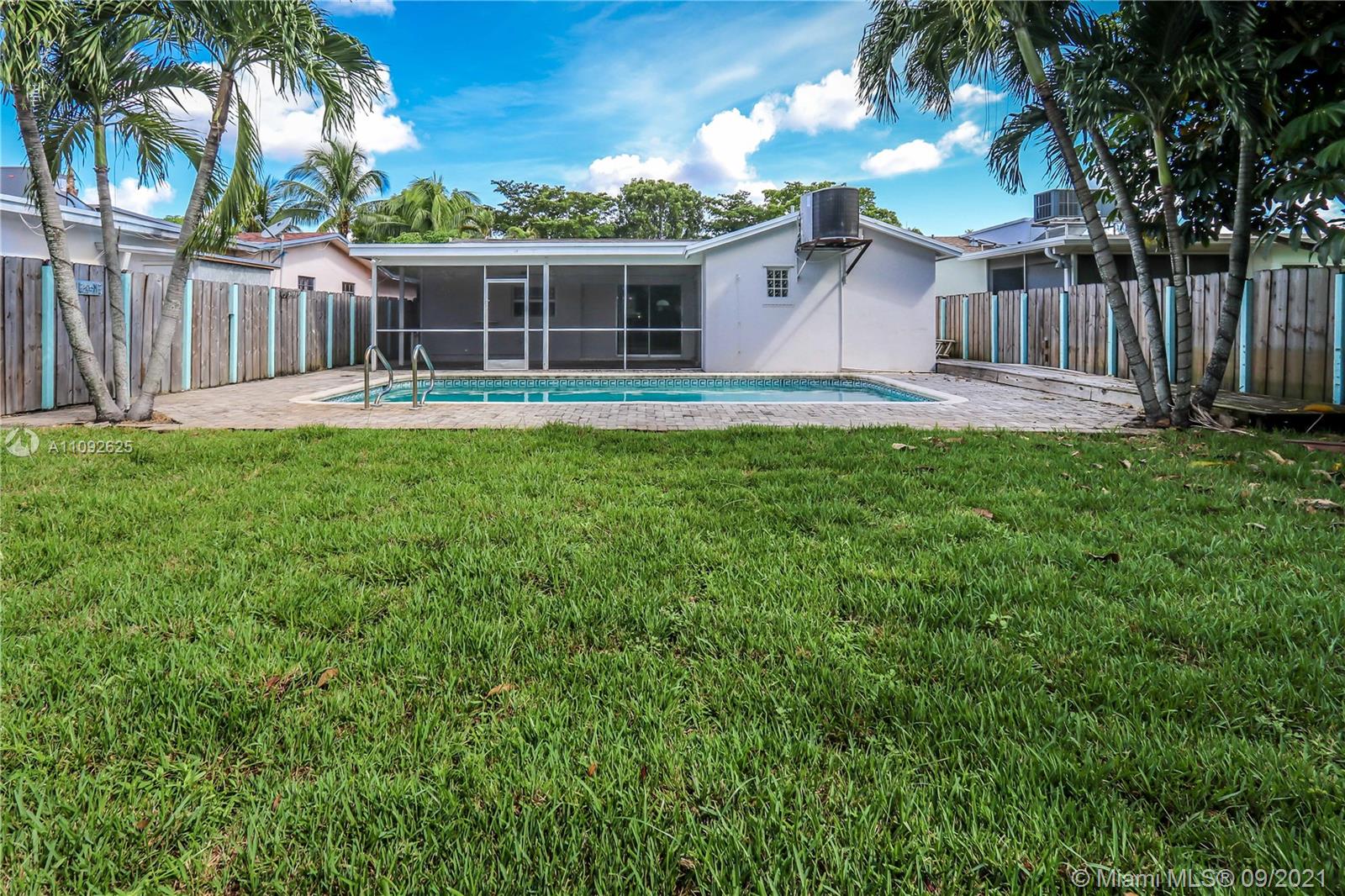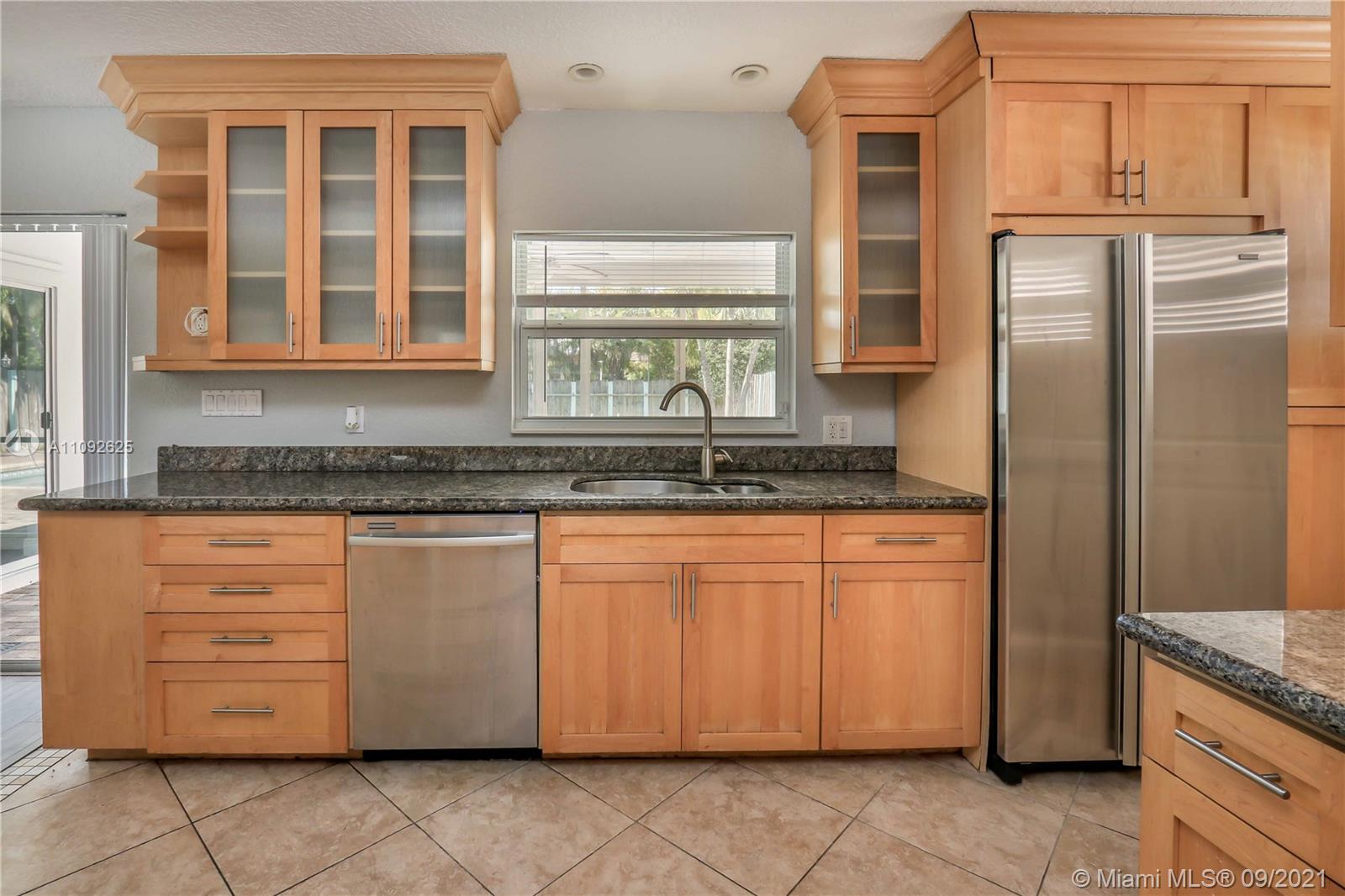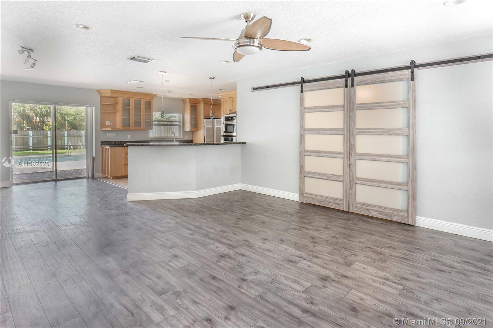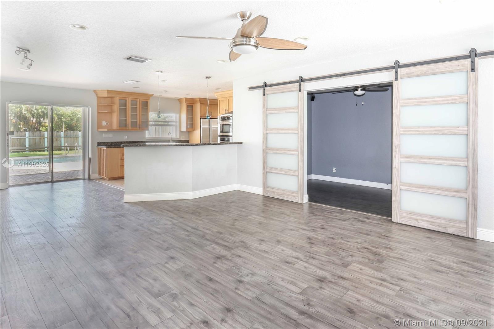 Beautiful, updated 4/2, 1800 + SF pool home in Hollywood Hills. Spacious open concept home has bright updated kitchen with granite counter tops & Stainless Steel refrigerator, dishwasher, wall Jenn-air microwave & oven. Electric Stove top with stainless steel hood fan. Garage converted to 4th bedroom walk in closet, easily convert back to garage. Tile floor throughout. Large Master BR /cabana bath & walk in closet. Separate Spacious laundry room, new tankless water heater. Hurricane panels. Fully fenced in backyard, large gate that opens to alley, plenty of grassy area for kids & pets to play. Shed w/child gate fence Screened in patio entertainment area w/kitchen pass thru. NO HOA. Roof 2006, flat roof 2013, Termite treatment 2015 Sprinkler system. SF incl. converted Garage