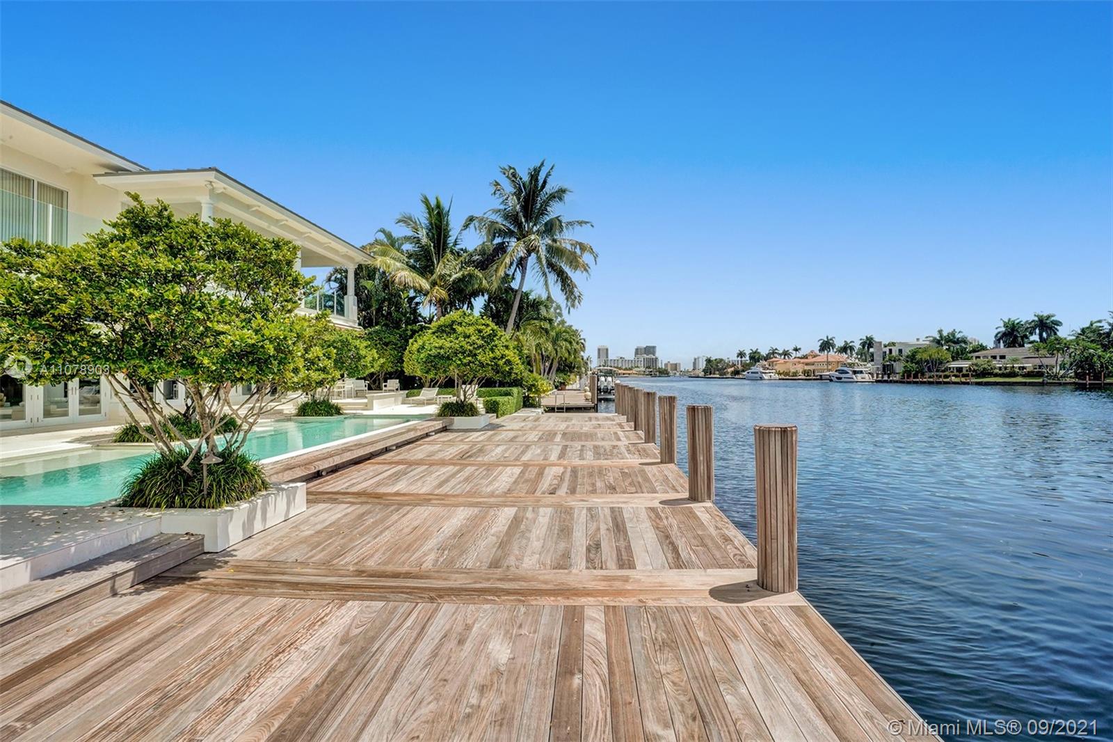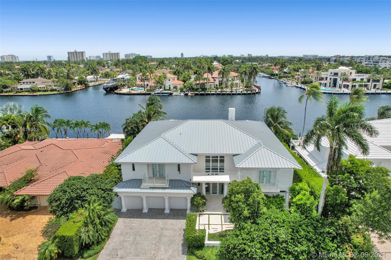 Stunning waterfront estate located in the unique island community of Sunrise Key consisting of 75 single family waterfront homes w/ gated entry & police patrol. Breathtaking wide water views ideal for boating w/ a large turning basin in the no wake zone Rio Barcelona waterway & minutes to the Intracoastal w/ no fixed bridges. Luxurious custom appointments w/ modern framework including all en-suite bedrooms, chef's kitchen w/ butler's pantry, top of the line appliances w/ custom commercial range hood, floor to ceiling windows w/ electric window treatments, tray ceilings, custom oak built-ins throughout, oversized laundry room, 3 car garage, back staircase to 2nd floor, lush landscaping & many more custom features. First time on the market. Property is offered furnished. Artwork negotiable.