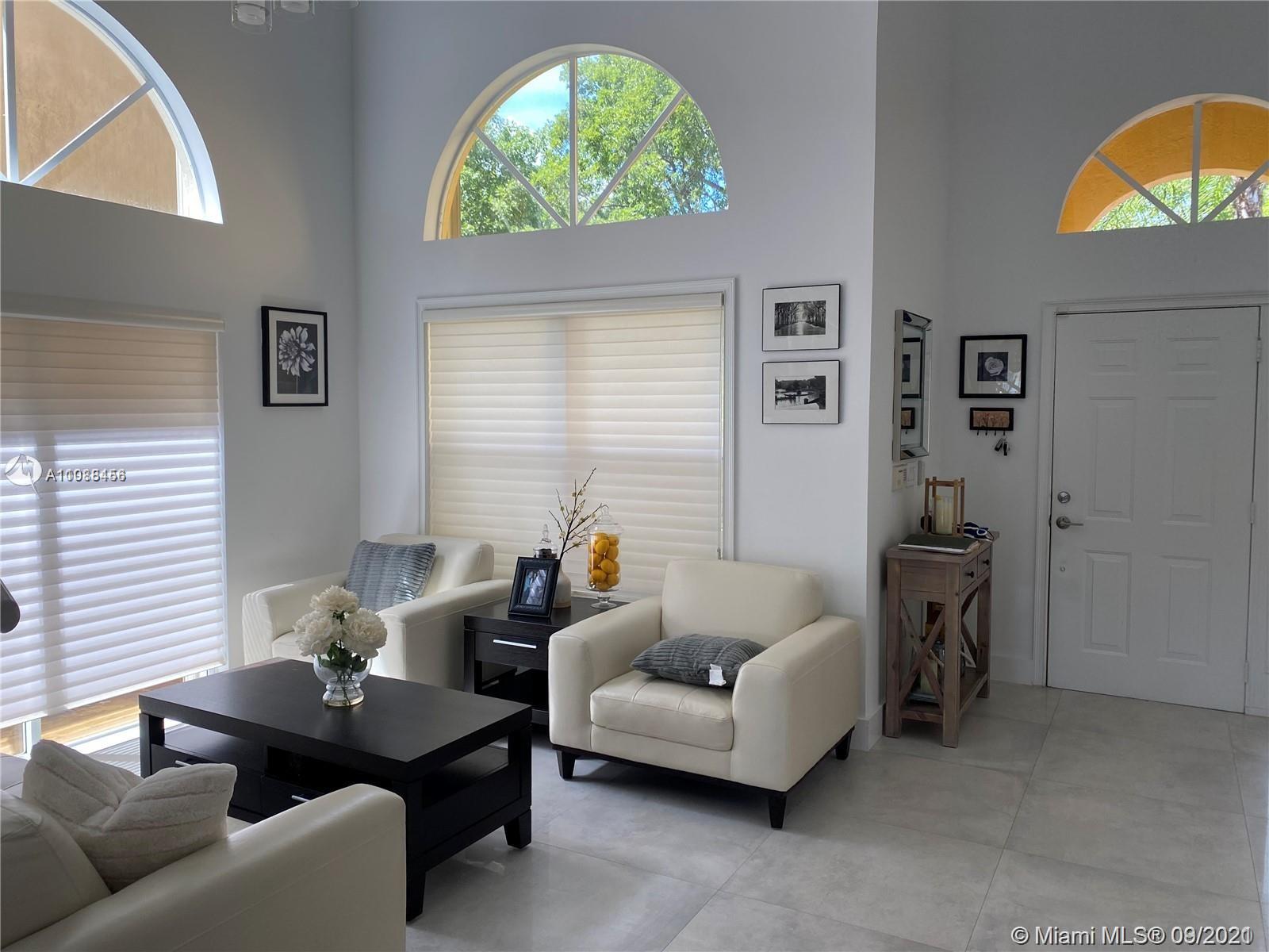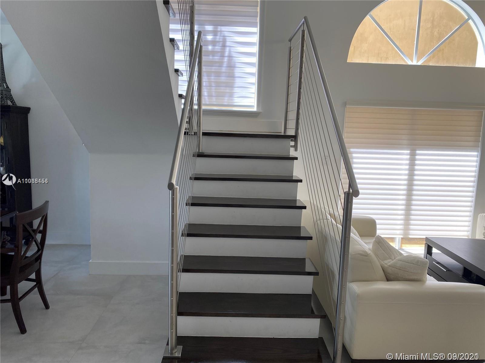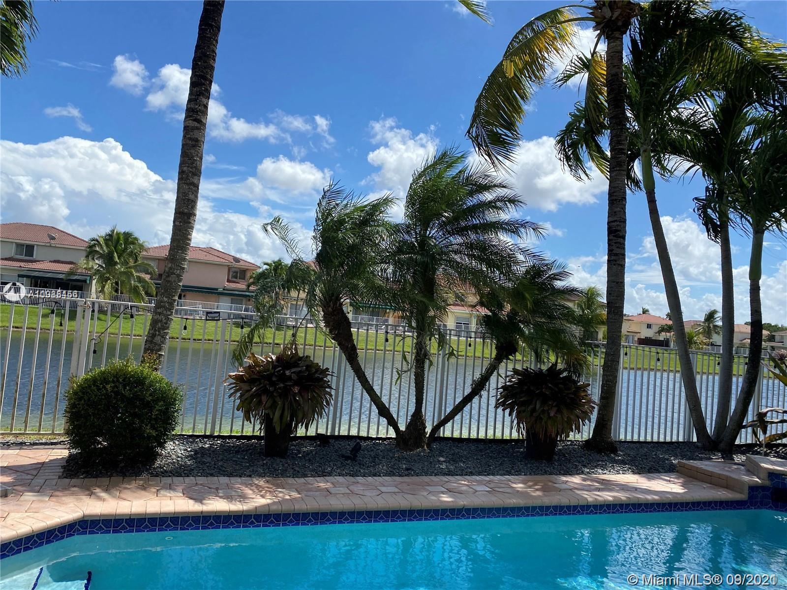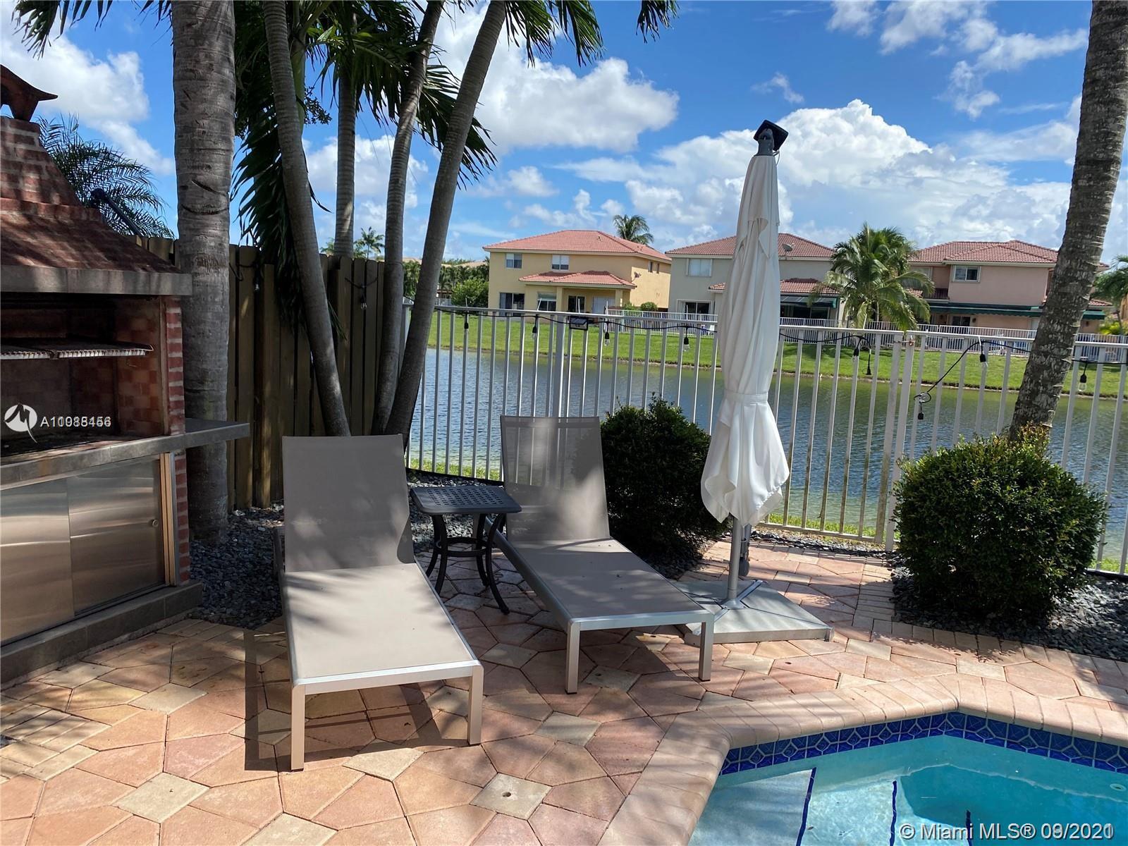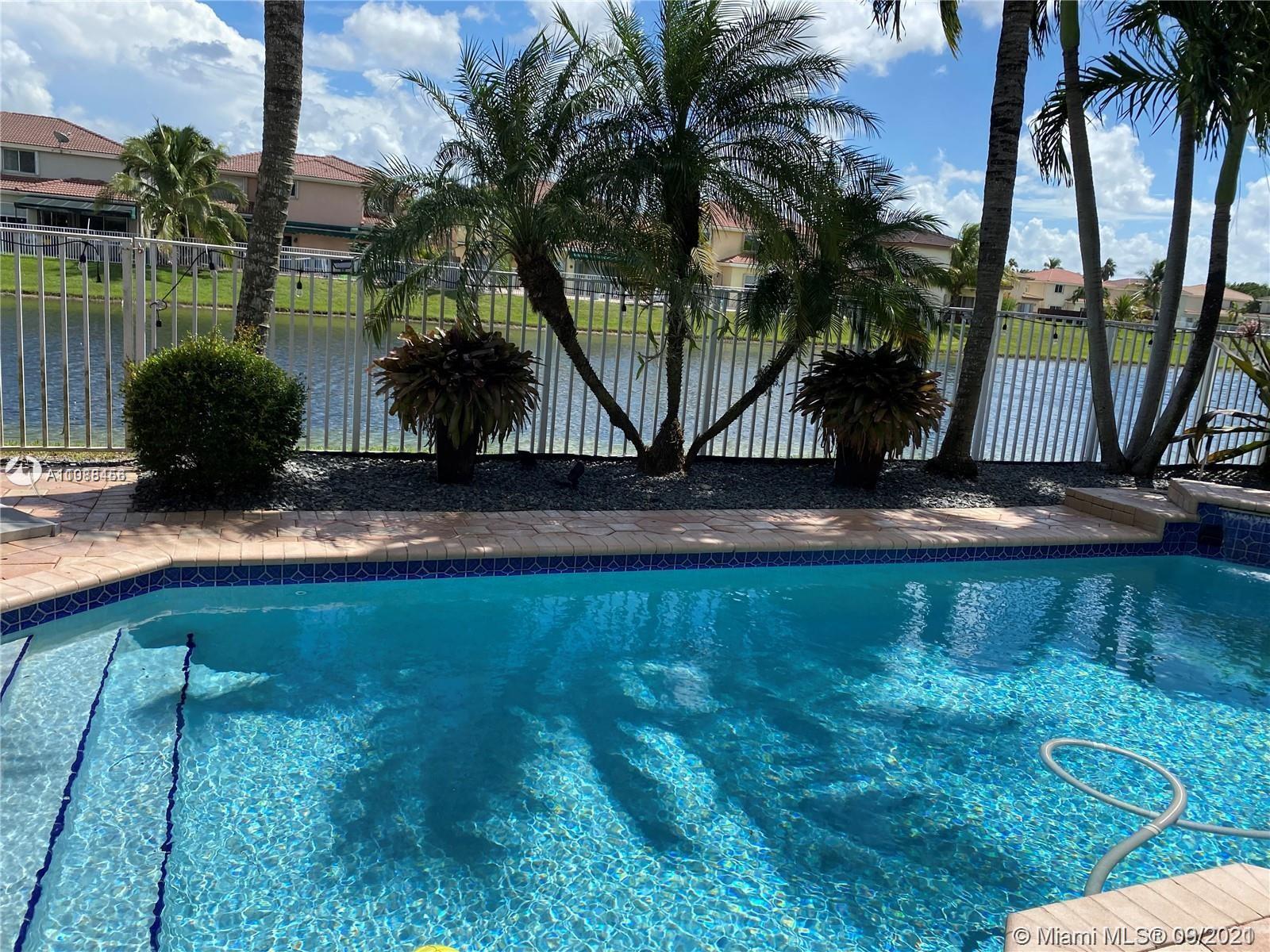 ELEGANT 3 BED 2.5 BATH LAKE VIEW SINGLE FAMILY HOME IN DORAL MEADOWS. GRAY PORCELAIN TILE ON THE FIRST FLOOR, STAIRS WITH DARK BROWN STEPS & SS CABLE RAILINGS, 2ND FLOOR HAS DARK BROWN LAMINATE- WOOD, PORCELAIN IN BATHROOM FLOORS. THE KITCHEN CABINETS ARE DARK BROWN COLOR & WHITE QUARTZ COUNTER-TOP, SS APPLIANCES, LED RECESSED LIGHTING IN CEILINGS, BEAUTIFUL POOL WITH PAVERS GREAT FOR ENTERTAINING, 2 CAR GARAGE, ACCORDIAN SHUTTERS, RAIN GUTTERS.