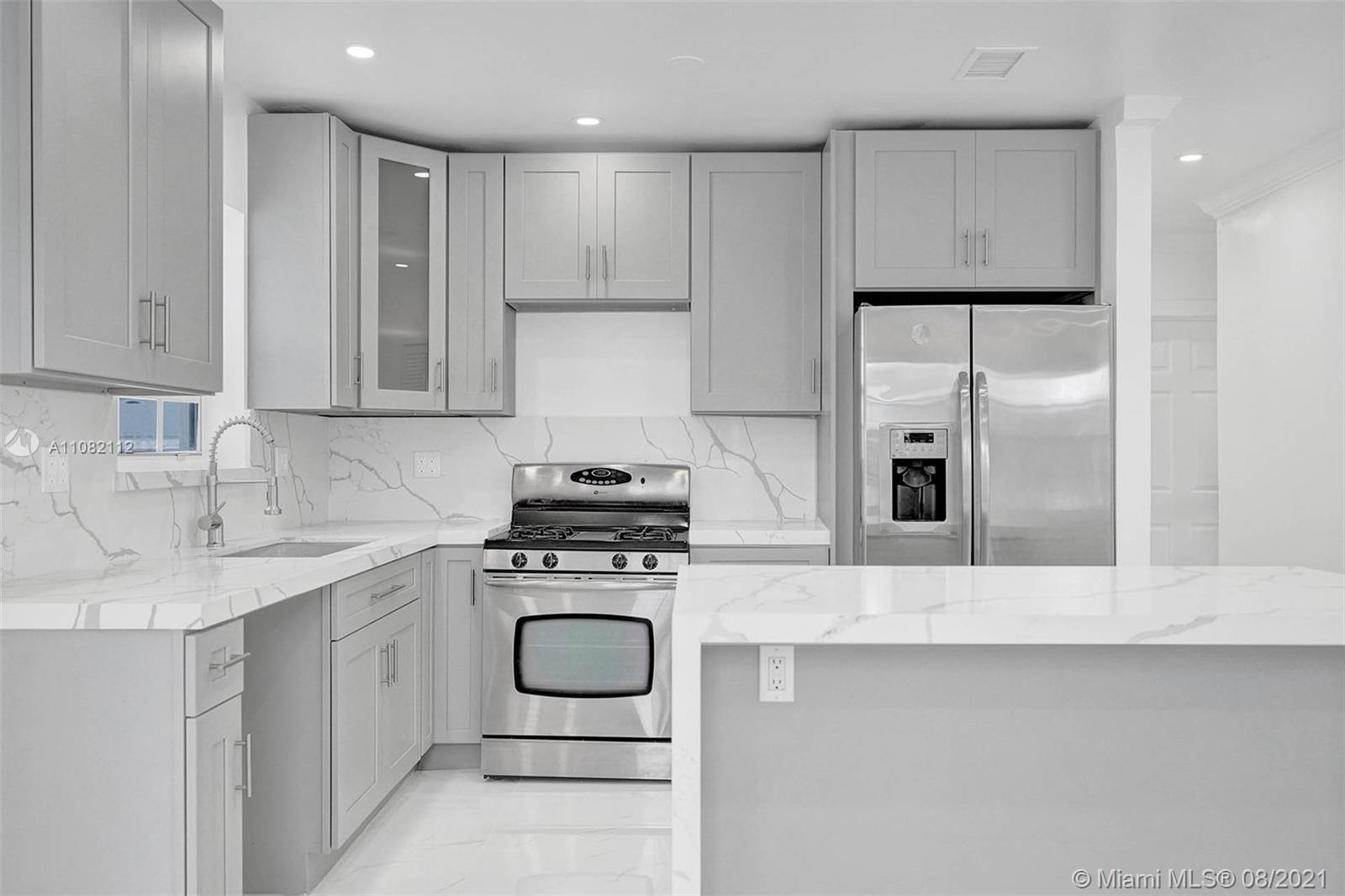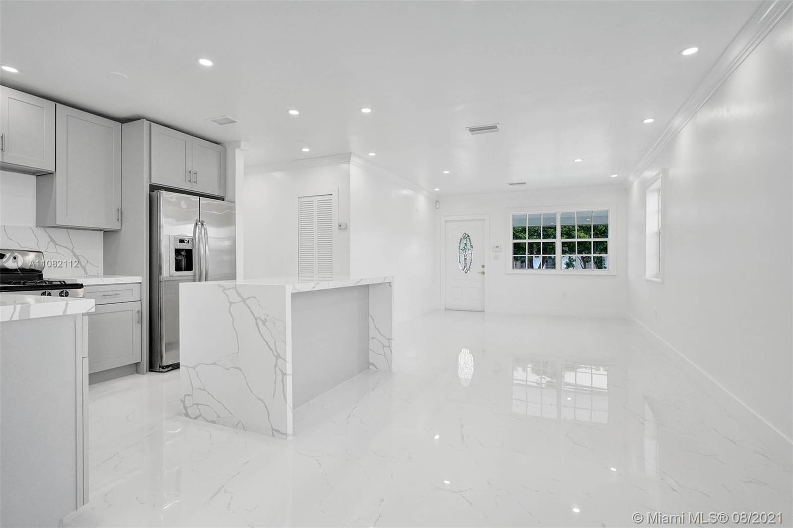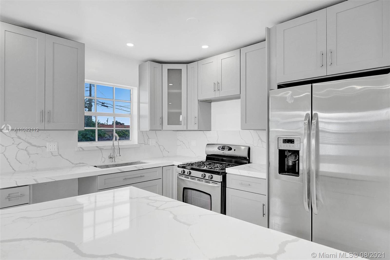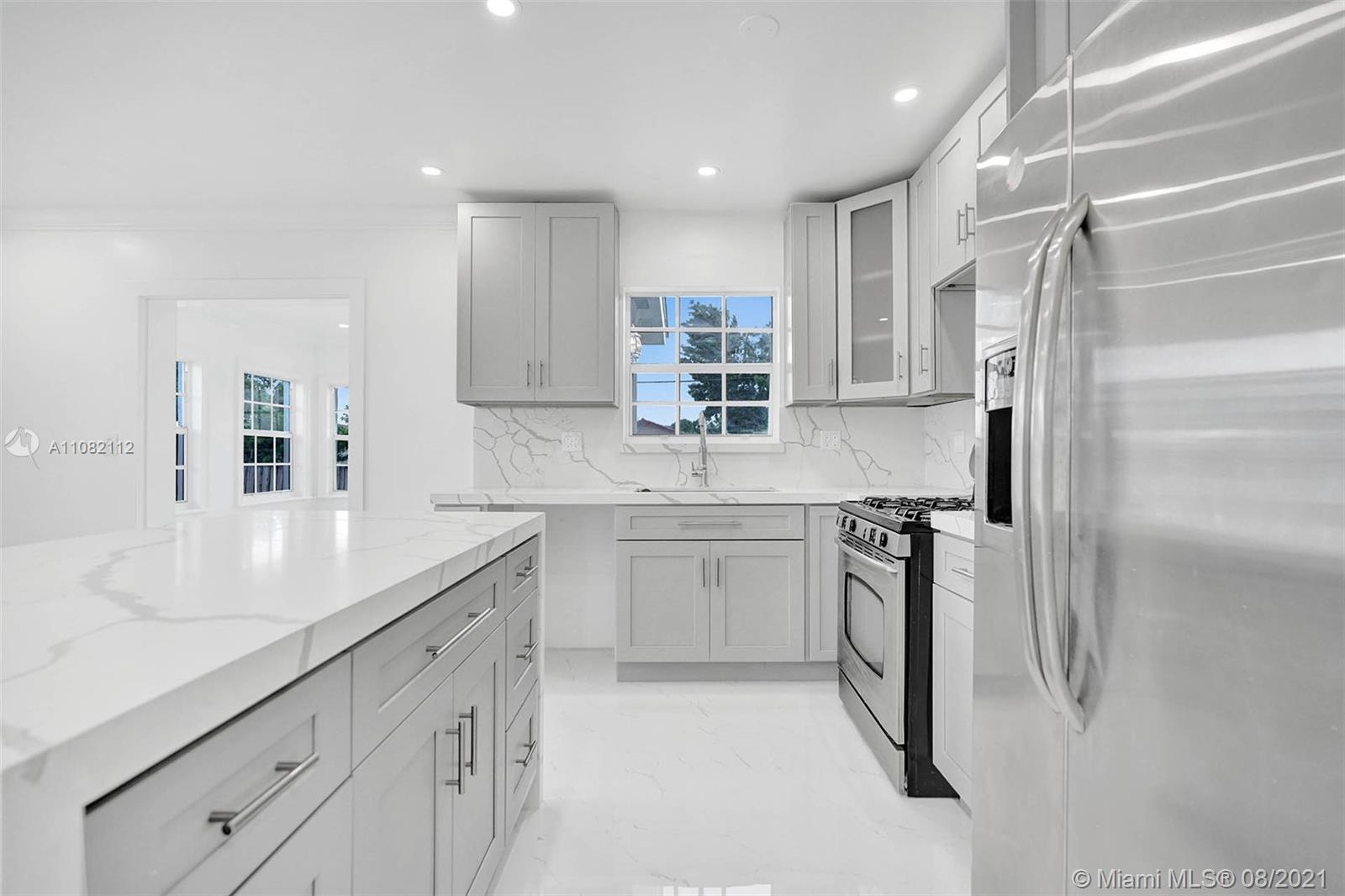 Gorgeous remodeled 3 bed, 1 bath home in East Hialeah. Walking distance to North Hialeah Elementary School. Pristine block where every neighbor has pride of ownership. This home is gorgeous, every detail has been meticulously thought out. Large stone tiles throughout the home with stylish grey cabinets and cultured stone countertops and backsplash. Recessed led lighting throughout the home and bedrooms. Fresh paint inside and out with custom trims on the keystone accents. Fresh white drain-field rock has been added with a membrane to expand the parking and provide a fresh modern look with little to no maintenance. Plenty of parking for a large boat. 10,000 sq ft lot, room for a pool and much more! This home is solid and has been well taken care of over the years. This home will not last.