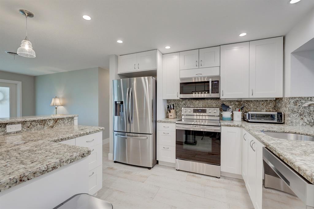 Completely renovated split plan home located on a serene cul-de-sac in the highly sought after neighborhood of High Ridge Estates. Just over 1 mile to the beach, fine dining and shopping, this open concept, 2 car garage home has an updated kitchen with brand new stainless steel appliances, granite countertops, all impact windows and doors and upgraded electrical. Beautiful wood plank tile and shiplap features throughout. Home has been freshly painted inside inside and out with new lighting and trim. Brand new 50 year metal roof, gutters and landscaping. A/C is just 5 years old. Private backyard with plenty of room for a pool. This gorgeous home is ready and waiting to welcome you!