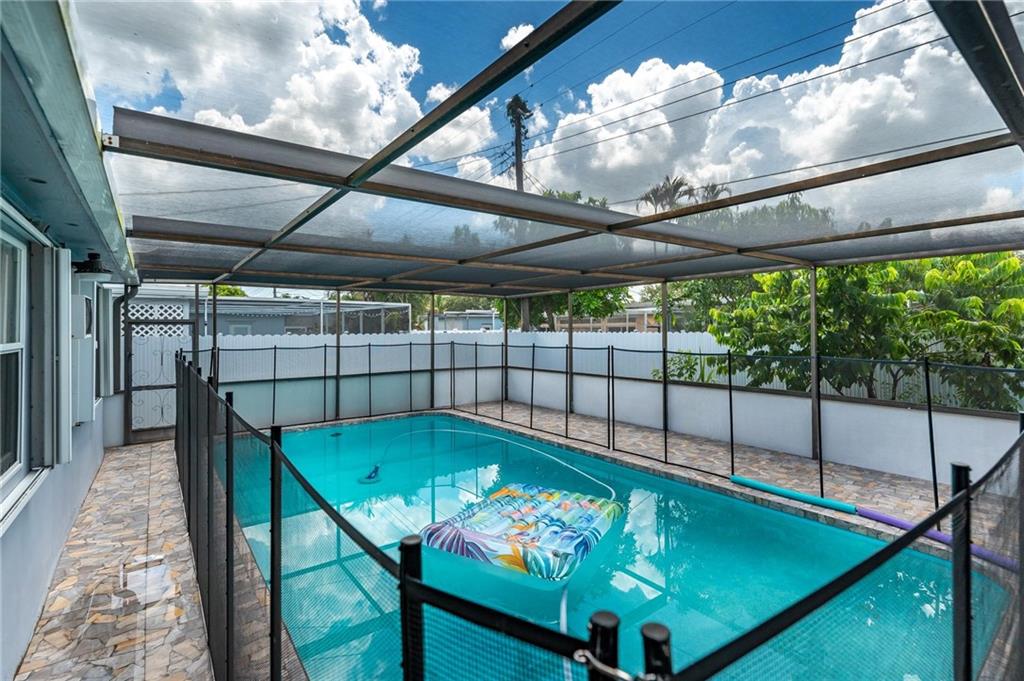 Beautiful Pool Home! Walk into a spacious formal living room with large window that provides lots of natural light. Formal dining room right off of kitchen that is fully equipped with wood cabinets and brand new stainless steel appliances. Very large florida room, perfect for family room and gatherings. Split bedroom floor plan. Master suite has an amazing upgraded bathroom and huge walk in closet! You will really enjoy the backyard, pool with child gate for safetey and screened enclosure and new pool deck. Perfect area to relax on your free time. Brand new fence for privacy! Laundry room has new washer and dryer. New garage door. Accordian shutters for all windows and doors! Only entertaining all cash offers.