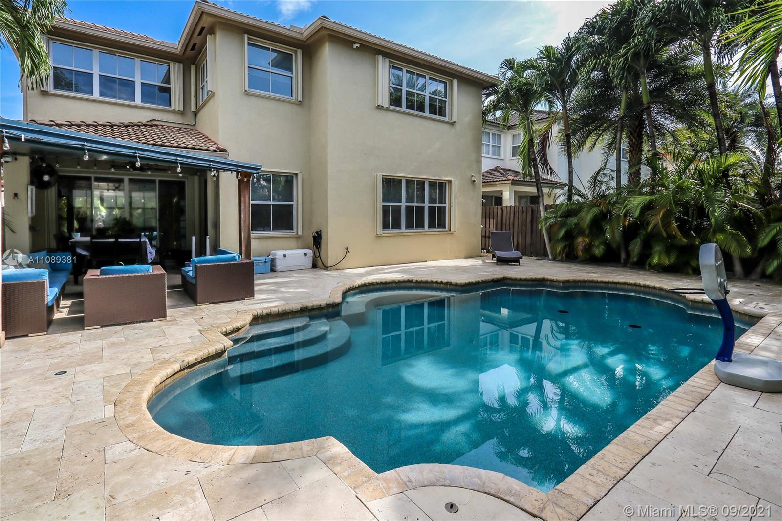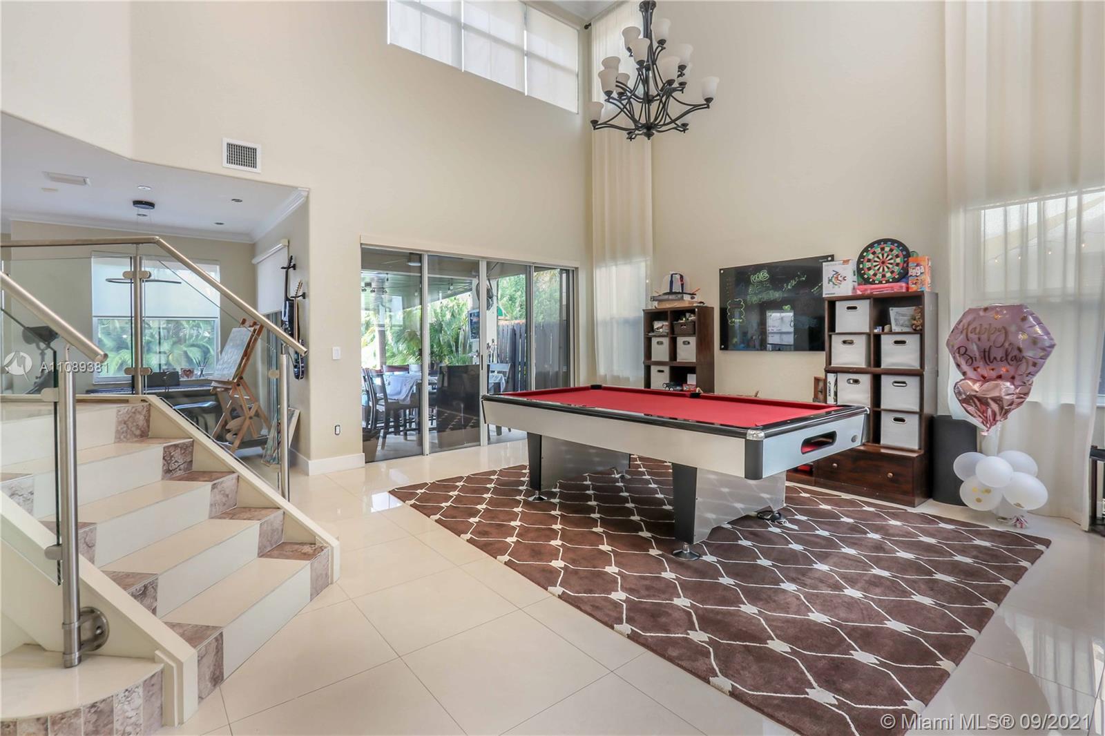 Modern, luxurious, elegant with over $250,000 in upgrades! Spacious floor plan, this spectacular home has 5 bedrooms, 4 bathrooms and one-half bath for guest, gourmet kitchen with quartz counter tops and SS appliances. Glass railing staircase, California closets in all bedrooms. Downstairs bedroom with bathroom, a family room that invites for gatherings and entertainment moments with family and friends. Gorgeous pool perfect for entertainment. Fully automated home, Ethernet, Lutron, Nest, Ring, August door lock, CCTV cameras hard wire with DVR and more, too many extras to mention! Home is located in a semi cul de sac w large green open green park in front of home. Easy short walk to Rolando Espinosa K-8 School. Bike ride away from Doral Legacy park.