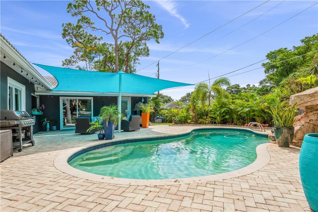 Fantastic 3 bedroom 2 bath tropical compound in sunny Riverland. Lush, corner property on a cul de sac street. Freeform heated pool with waterfall is surrounded by an abundance of trees & tropical foliage offering good privacy. Ideal storage space for RV/trailer. Home features an upgraded kitchen with quartz countertops, wood shaker cabinets, new appliances including built-in icemaker. Upgraded bathrooms, new vinyl plank flooring through-out the home, newer AC & WH, updated electric and LED lighting. Big pantry/ laundry room combo plus a relaxing spa room & detached man-shed. Centrally located-near Downtown/Las Olas, Airport & Beaches. Quick easy access to 1-95/595/TRNPK
