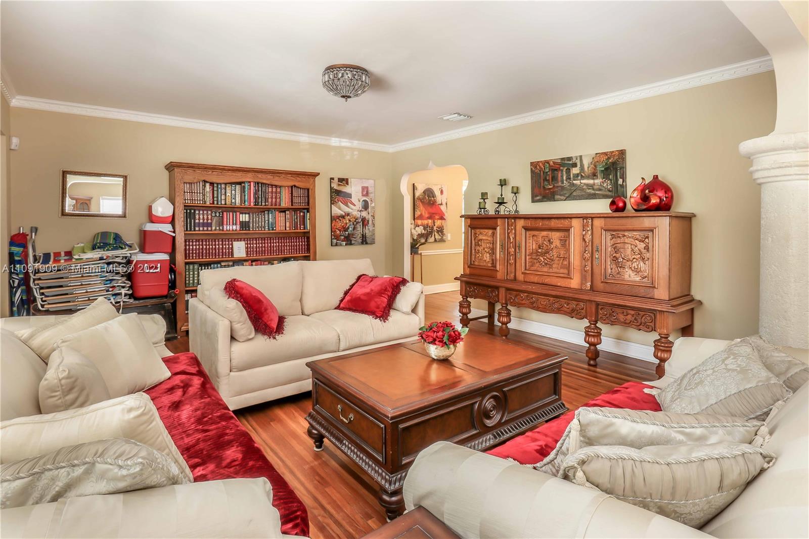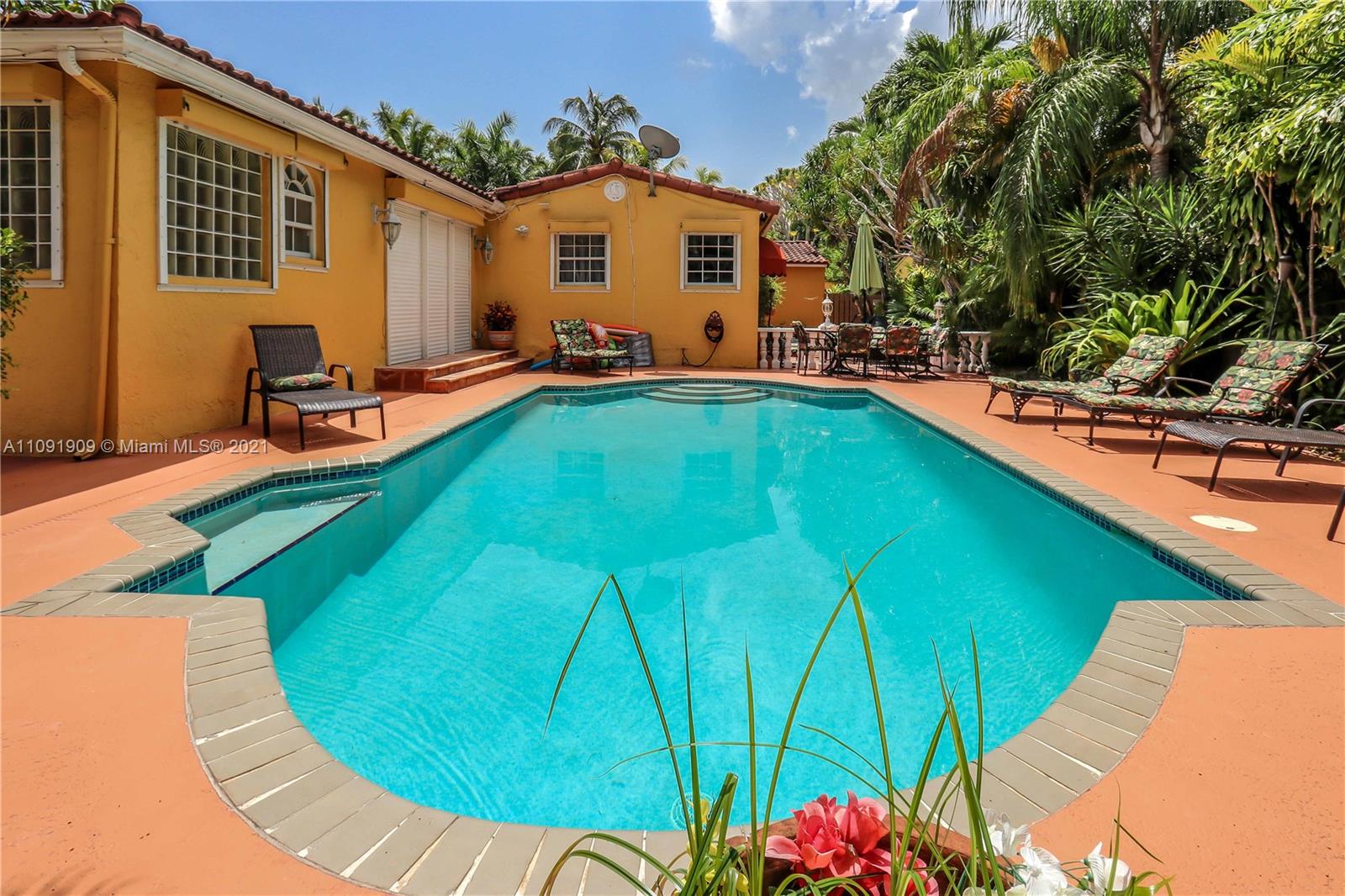 MODERN 4BED / 4BATH FAMILY HOME WITH RESORT STYLE POOL AREA, 5 MINUTES TO BEACH, DOWNTOWN, GULFSTREAM PARK OR AVENTURA! THIS HOME FEATURES FORMAL LIVING ROOM WITH EXPOSED WOOD BEAMS, FRENCH DOORS AND LOTS OF NATURAL LIGHT~ POLISHED HARD WOOD FLOORS IN DINING AREA~ LARGE FAMILY ROOM WITH MARBLE FLOORS AND LARGE WINDOWS OPENING TO PATIO WITH SITTING AREA FOR OUTDOOR DINING EXPERIENCE~ LARGE KITCHEN WITH 2 GRANITE COUNTER AREAS, STAINLESS STEEL APPLIANCES AND WINE COOLER WITH OPENING TO FAMILY ROOM AND BAR EATING AREA~ MASTER SUITE FEATURES LARGE CLOSETS AND OPENS TO BEAUTIFUL HEATED POOL/PATIO AREA. LARGE AND BRIGHT MASTER BATH WITH ROMAN TUB AND SEPARATE SHOWER. FENCED BACKYARD WITH TROPICAL LANDSCAPE SURROUNDING POOL AND PATIO.