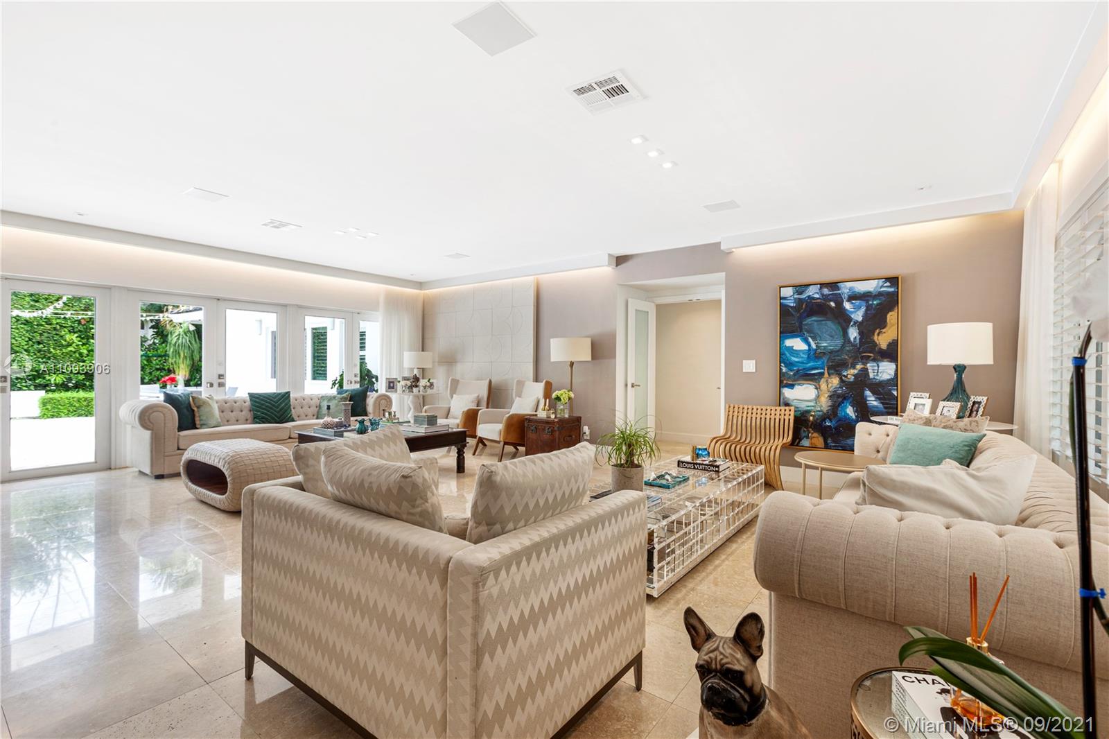 Stylish and Elegant one story home sitting on a 19,422 SF corner lot at a prestigious Coral Gables address. This tastefully completed renovated 5BD/6BA home features exceptional finishes like Ornare kitchen; high end appliances; recess lighting; linen curtains & plantation shutters; surround sound system; heated pool; generator; impact windows; marble and wood floors and more. New owner can start to enjoy this great turnkey house immediately. Very low running costs. Close to top schools, shops and entertainment. Ideally located for a healthy and active lifestyle.