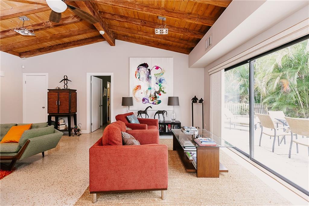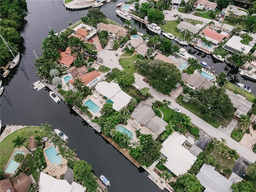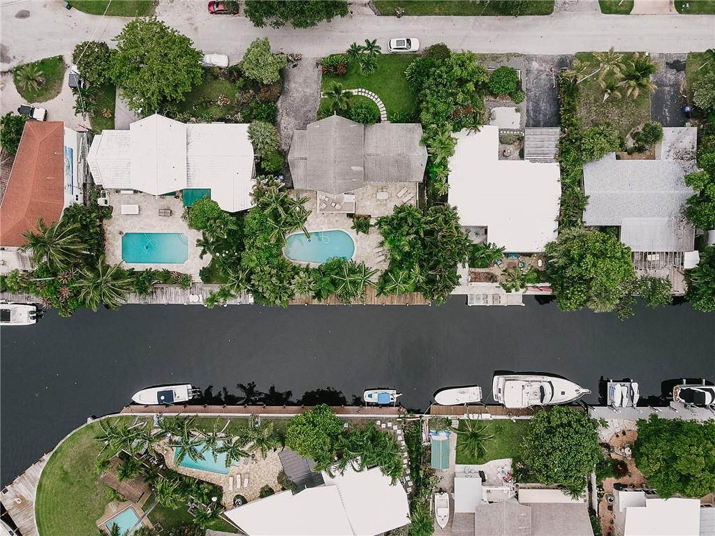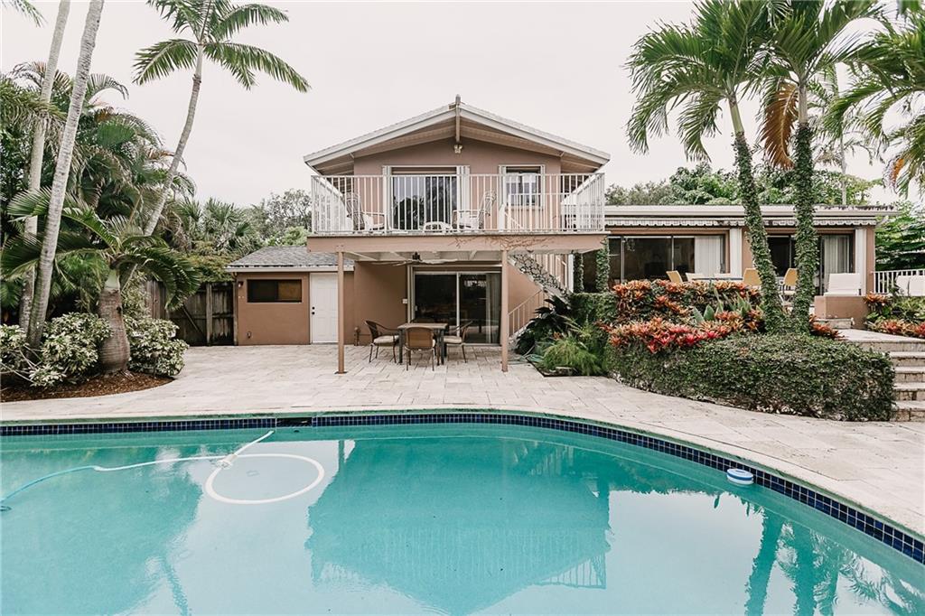This classic Mid Century tri-level waterfront home is conveniently located in a quiet cul-de-sac, minutes from downtown and I-95. With 85ft of dock, ocean access and no fixed bridges, this property has it all! Amazing outdoor space on three different deck levels, large pool and lush landscaping for privacy. Indoors is spacious and bright with wood exposed beam ceiling and sliding doors opening to an expensive deck. The terrazzo floor has been kept in excellent condition. Separate laundry-room and one car garage. Furniture negotiable.