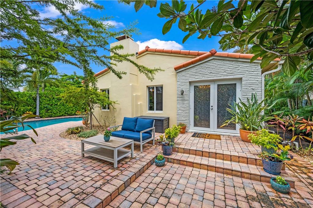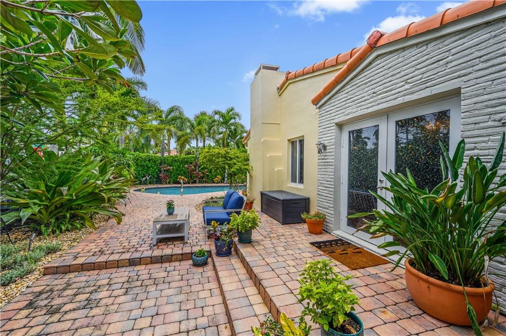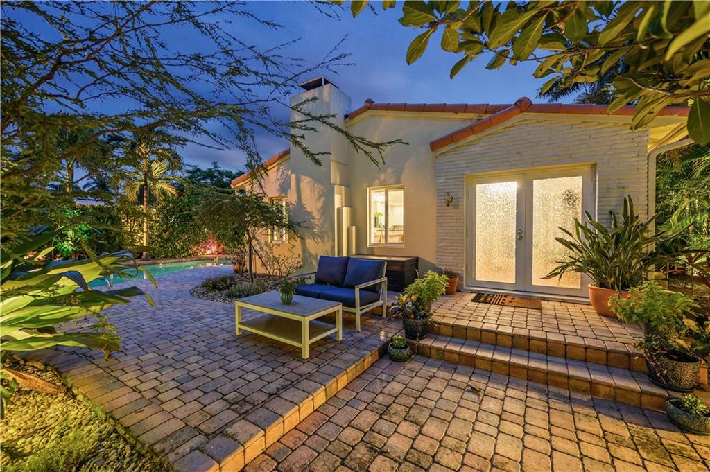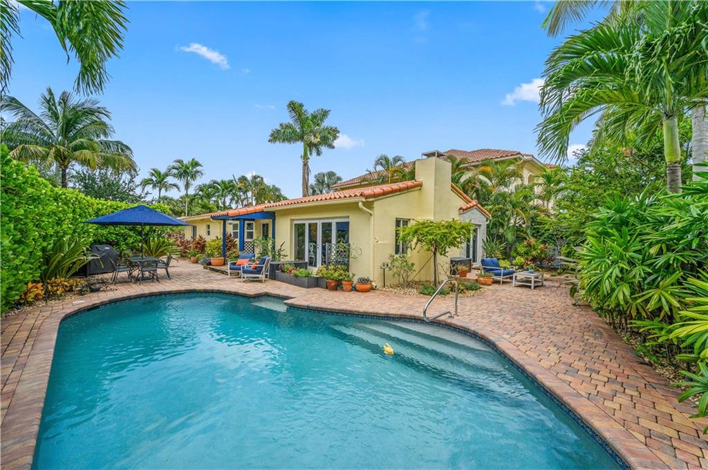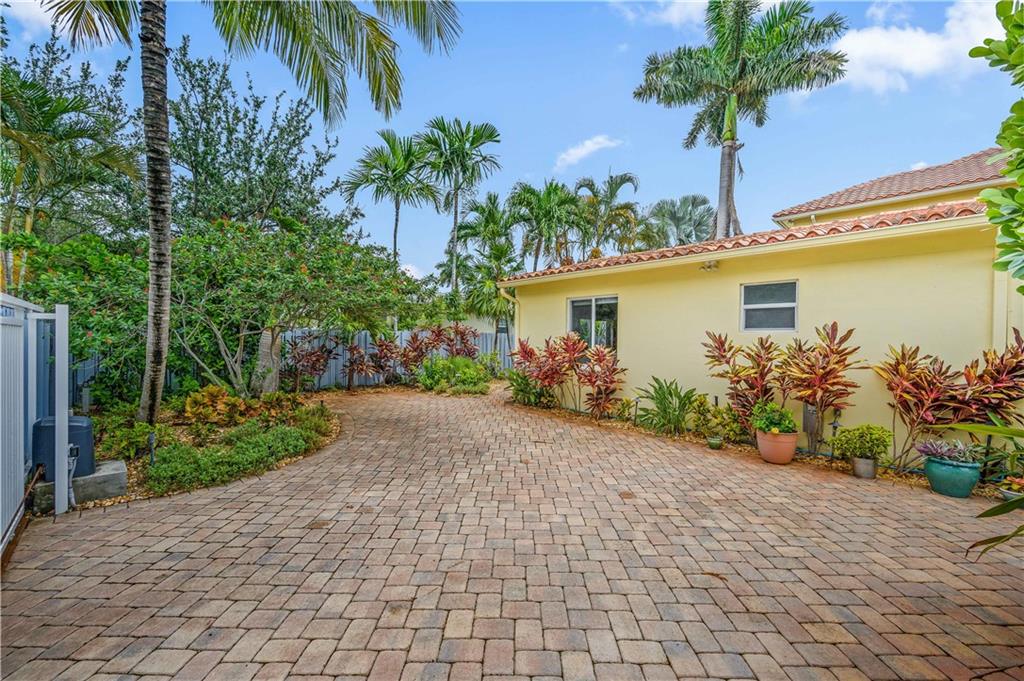 A Victoria Park holiday oasis on an oversized lot. Secreted away behind a hedged fence with gated entry this 3BR/2BA is wonderfully private from the motor court entry to the sunny tropical gardens and patio surrounding the heated pool. Stylishly renovated mid century era home features vaulted ceilings, impact windows and doors, a gas kitchen with Breakfast bar and an open living and dining area. Bedroom 3 offers convertible living space with French doors and built-ins and is currently used as a Den. A hall bath is shared by another guest bedroom. The primary suite hosts walk-in closet and spa style bath with French doors opening to a side terrace. Your own private oasis minutes to the beach. [Information is from 3rd party sources including BCPA and is believed accurate but not warranted].