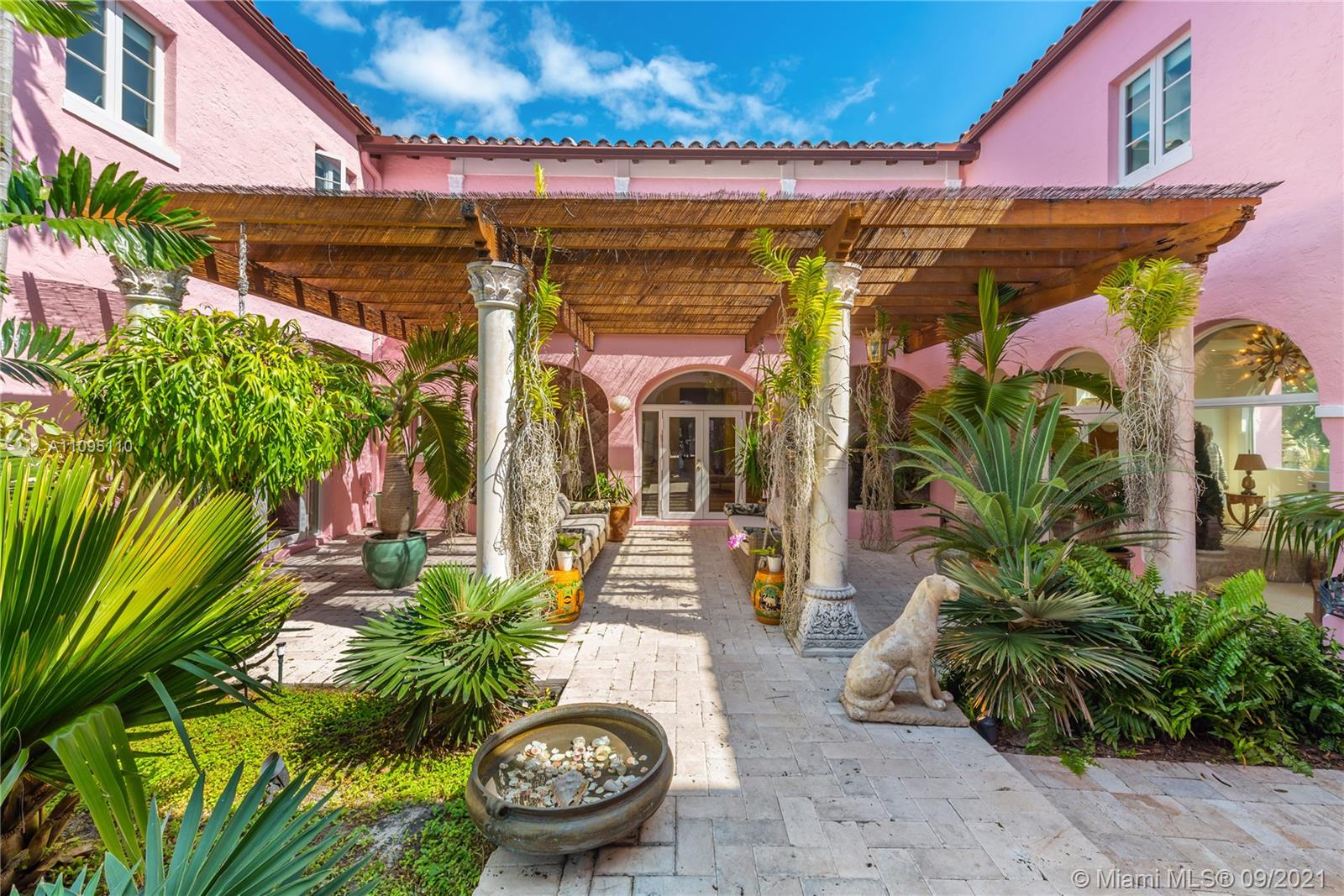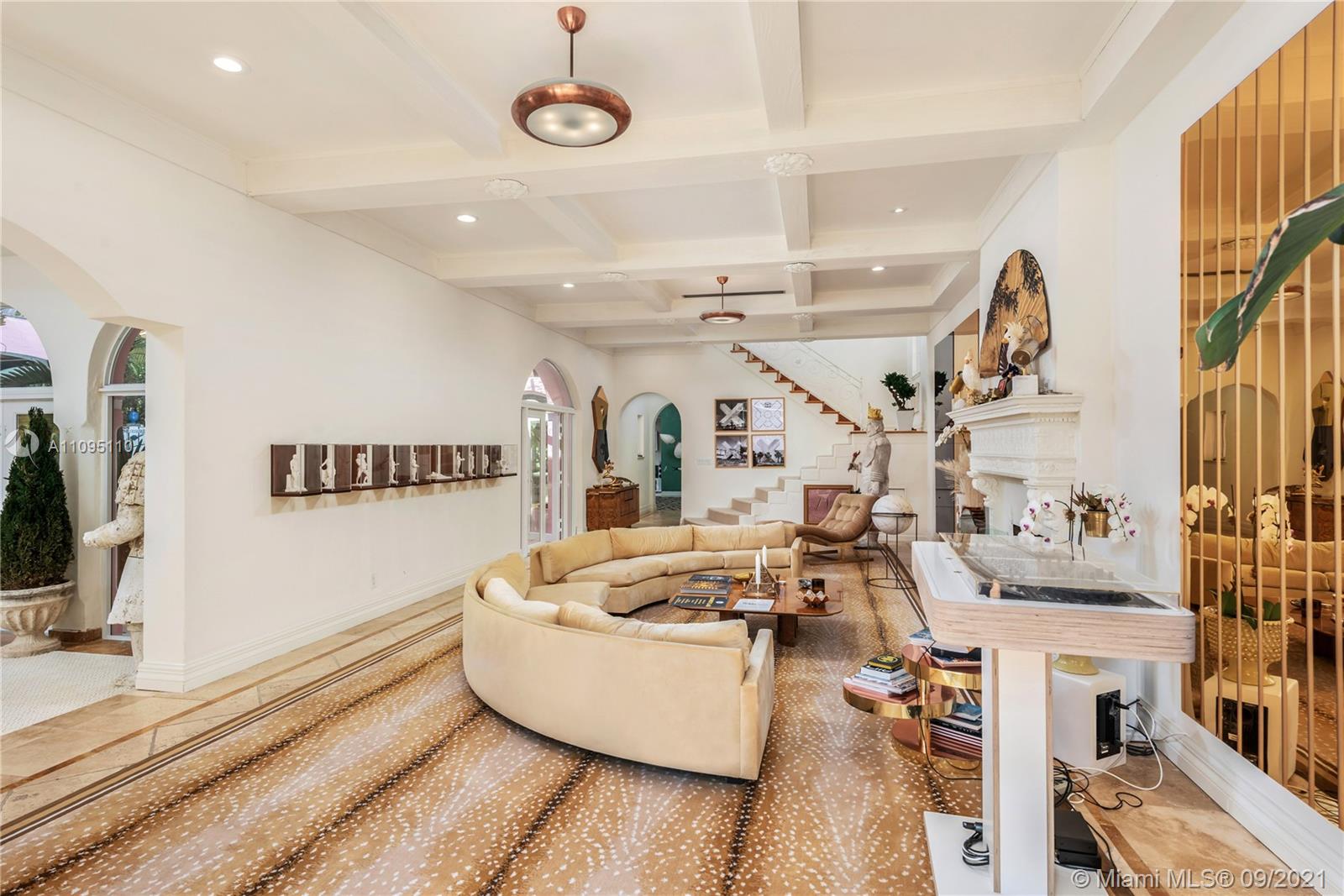 This classic Mediterranean Revival estate was meticulously restored and updated by Ximena Caminos, as her personal refuge and escape. A contemporary beach design compliments accents such as a grand fireplace and custom wall murals. Original details include wrought iron, elaborate stonework, and pecky cypress inside and out. There is a gourmet chefs kitchen with breakfast room and butler pantry, as well as 7 bedrooms, all with ensuite baths. The exterior has an extraordinary custom pool and spa with elaborate water features and various outdoor entertaining areas including a large pergola with lush foliage and a poolside dining loggia. The house is located on a double lot on Miami Beach iconic Pine Tree Drive.