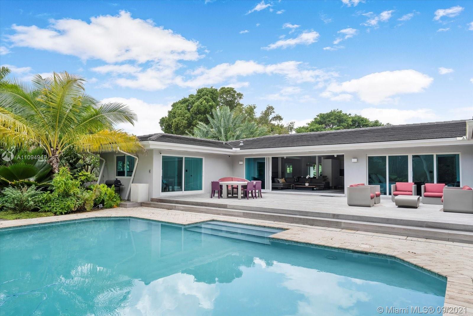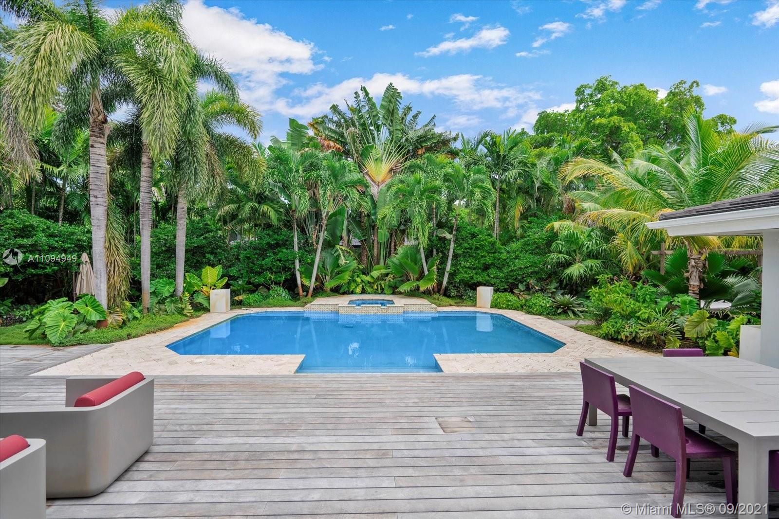 Welcome to a lush oasis in the exclusive Miami Shores neighborhood,east of Biscayne Boulevard. A gem,this gorgeous 5 bed/4.5 spacious home sits on an oversized half acre lot,complete w/ a brand new automatic fence that frames the property for complete privacy.The dream-like landscaping transports you to another place and offers tranquil seclusion. Inside you will find a sprawling 3,226 sq ft. layout featuring a remodeled gourmet kitchen,designer, bathrooms,impact windows, new roof & pool area designed for paradise. Escape from reality in your master suite or nestled by the fireplace in your living room.This smart home doesn’t skip out on any luxuries with in-law or nanny's quarters,a natural gas generator,2 car garage, tropical landscapin, an outdoor pergola area ideal for entertaining.