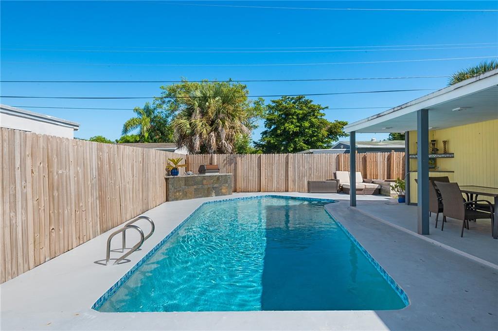 EXTENSIVELY REMODELED POOL HOME. HOME UPDATED WITH NEWER KITCHEN CABINETS, GRANITE COUNTERTOPS AND STAINLESS STEEL APPLIANCES. BOTH BATHROOMS COMPLETELY REMODELED. NEW CENTRAL AIR AND DUCTS IN 2017. UPDATED ELECTRICAL PANEL. SALTWATER POOL RESURFACED IN 2016. GREAT POOL AREA WITH COVERED PORCH AND OUTDOOR KITCHEN AND BARBEQUE. HOME HAS A 3-WAY, SPLIT BEDROOM PLAN. HUGE MASTER BEDROOM WITH WALK-IN CLOSET. AMPLE CLOSET SPACE. OVERSIZED DRIVEWAY WITH ROOM FOR RV OR BOAT. SELLER IN PROCESS OF INSTALLING NEW FLAT ROOF AND SHINGLE ROOF. SHUTTERS FOR ALL WINDOWS. NEW CARPETING IN BEDROOMS. NEW INTERIOR PAINT.