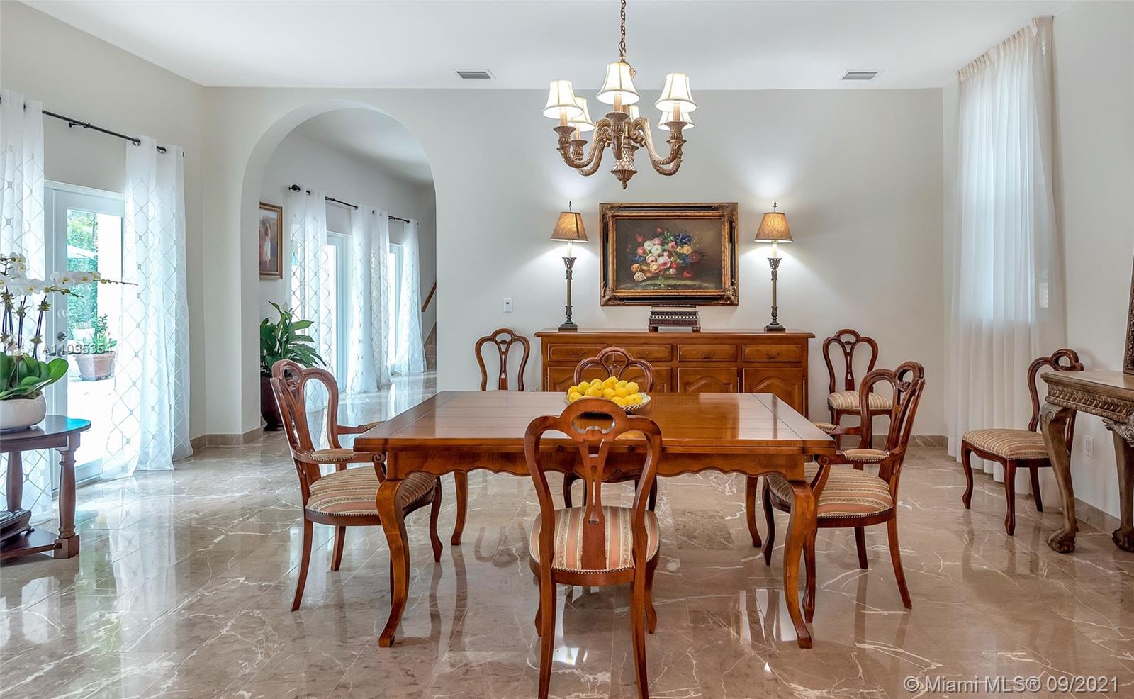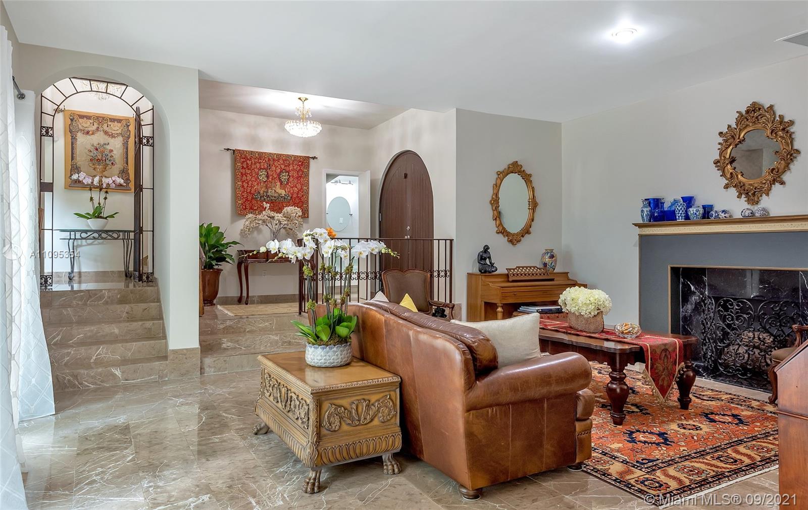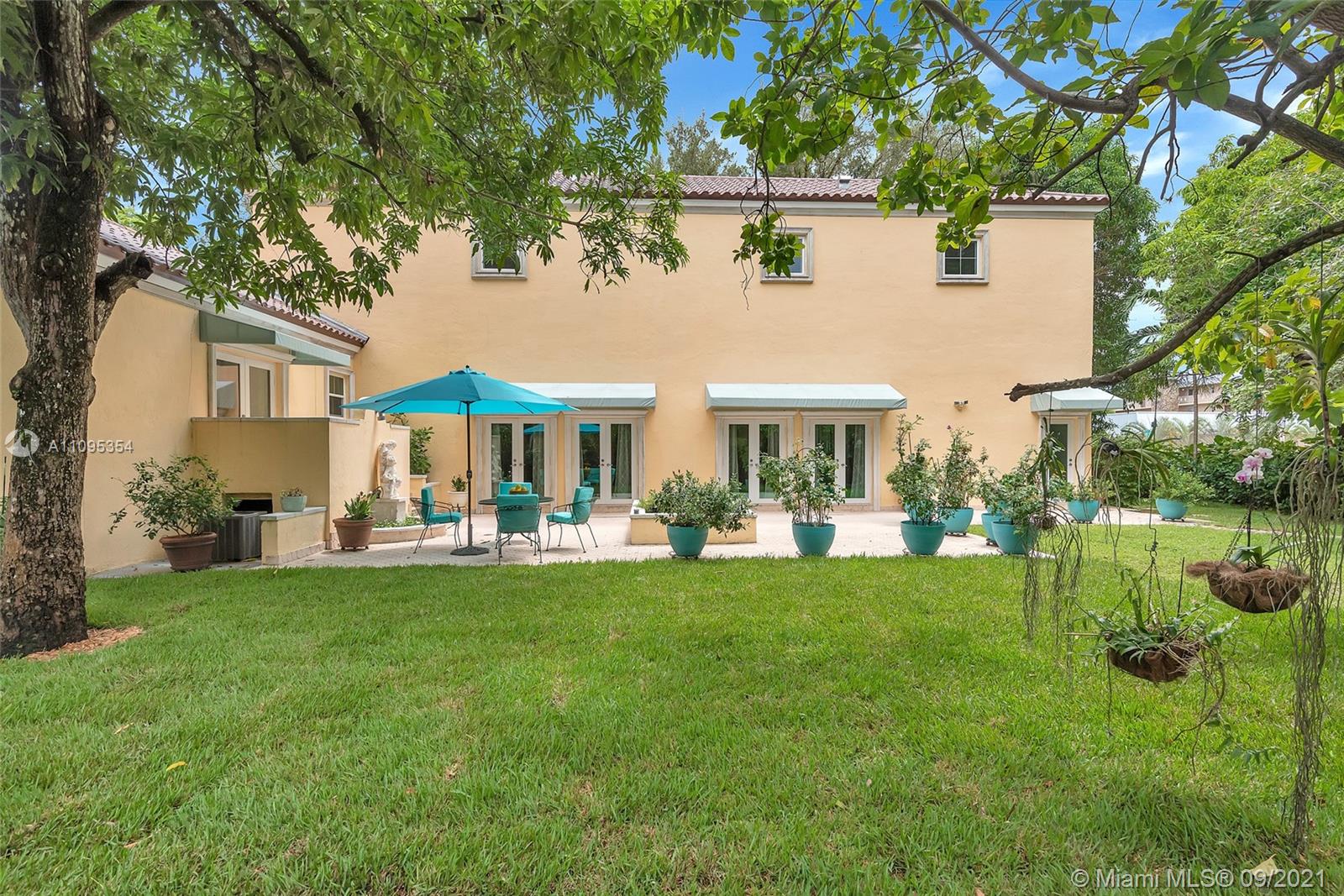 This beautiful Tuscan Home located near The Coral Gables Water Tower. It sits on a corner lot of .25 acres, blocks from Dade’s highest point (no flood insurance ), a new roof completed in 9-1- 21 Warranty 12 yr.. Its quality construction is evident in the outstanding appointments of high ceilings & high arches giving it an air of grandeur, embraces an old-world look with all the modern amenities, emphasizing windows & exterior doors (all impact) that flood the interior spaces with natural light, while maintaining a privacy,oversized private tropical garden with many fruit trees (mangoes, avocados, bananas, etc.),flowers, lovely garden of various herbs. With space for a pool, four blocks from the Coral Gables Country Clubs. the gorgeous Venetian Pool available to all Coral Gables residents.