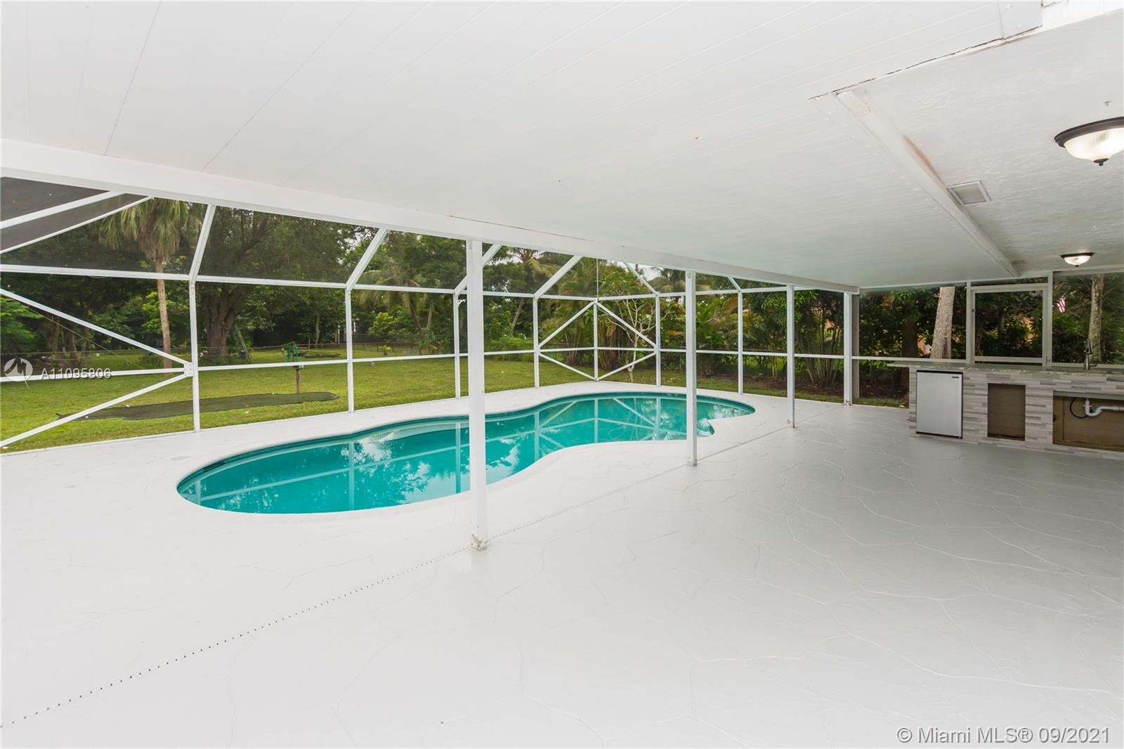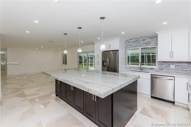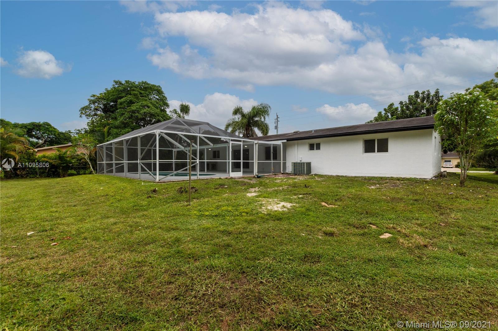 FULLY RENOVATED DAVIE HOME ON A BUILDERS ACRE! This property features 4 beds 2 baths with a screened-in pool! The kitchen is the heart of this home! It features 42in white cabinets, wine rack, farm sink & high-powered cooking hood! The large kitchen island is a 4inch slab of mitered edge quartz stone, espresso cabinets all around & a built-in microwave! Stunning marble floors throughout the entire home! Bathrooms feature floor-to-ceiling tile, custom mirrors & glass shower doors! All impact windows and doors! You will love the screened-in back patio featuring a large freeform pool, color-changing pool light & outdoor kitchen!! Enjoy A+ schools! No HOA, perfect for your boats, trailers, and RV!