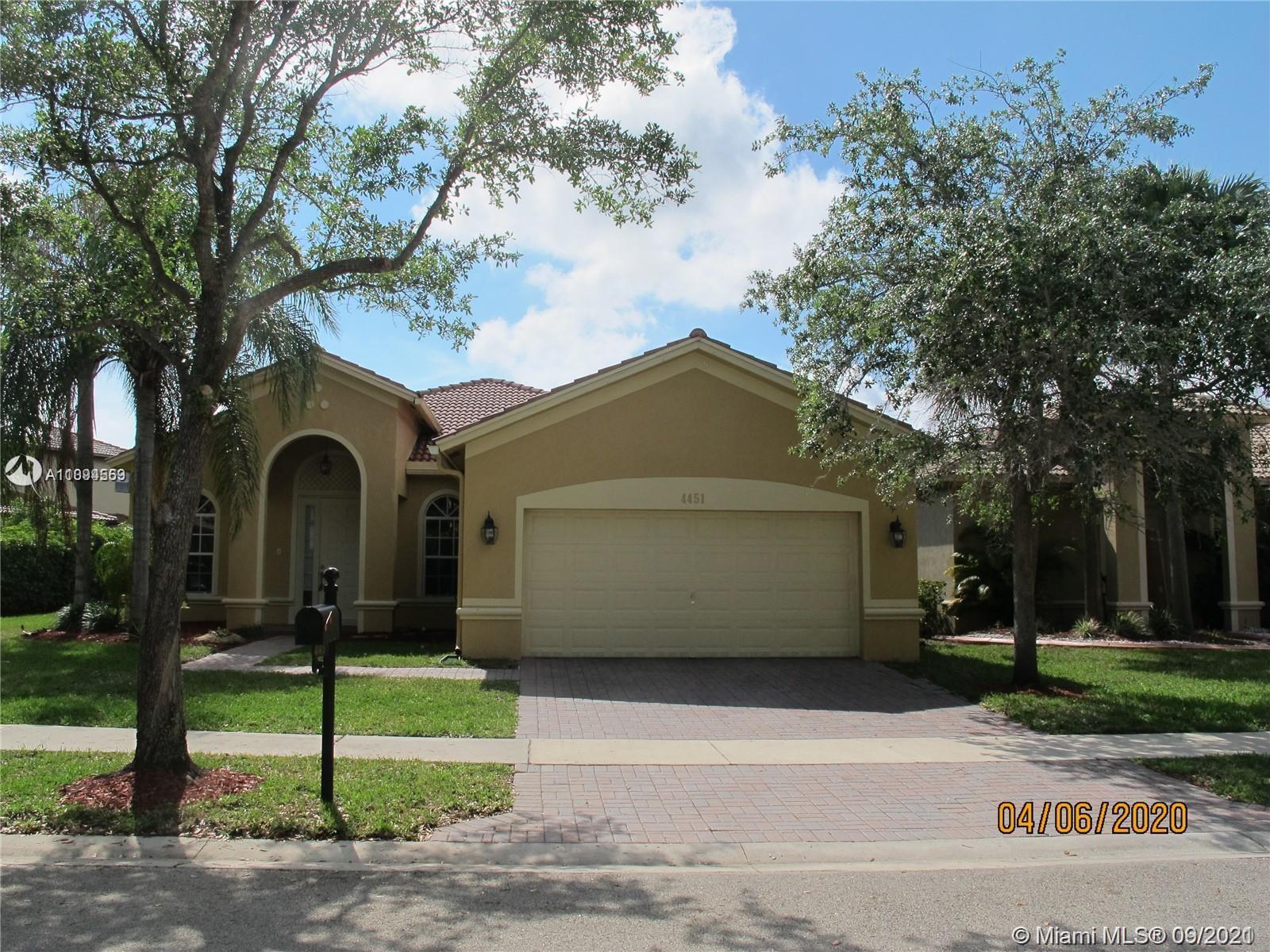 Back on again: BEAUTIFUL HIGH CEILING 4 BEDROOMS, 2 BATHROOM, 2 CAR GARAGE, ONE STORY SINGLE FAMILY HOME LOCATED IN THE PRESTIGIOUS ISLES AT WESTON WITH 24/7 SECURITY GUARD GATED COMMUNITY WITH SPACIOUS LAYOUT, FAMILY AND DINING AREAS. HOA FEE INCLUDES- ALARM, FISION INTERNET AND HIGH SPEED INTERNET, BEAUTIFUL CLUB HOUSE NEW GYM, PARTY ROOM, BASKETBALL COURT, VOLLEYBALL, POOL, PARK. RESORT STYLE COMMUNITY WITH A+ SCHOOLS. GRANITE KITCHEN COUNTER. COVERED PATIO. THIS HOME IS A MUST SEE AND READY TO MOVE IN. THIS IS THE LAST CONSTRUCITON. CLOSE TO ALL MAJOR HIGHWAYS AND SHOPPING MALLS.