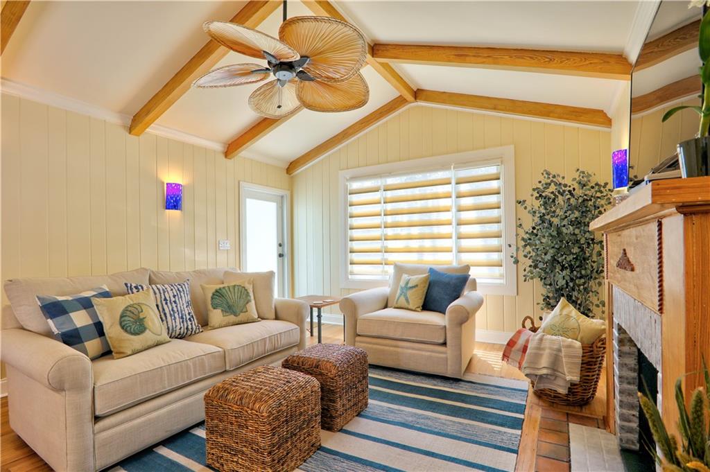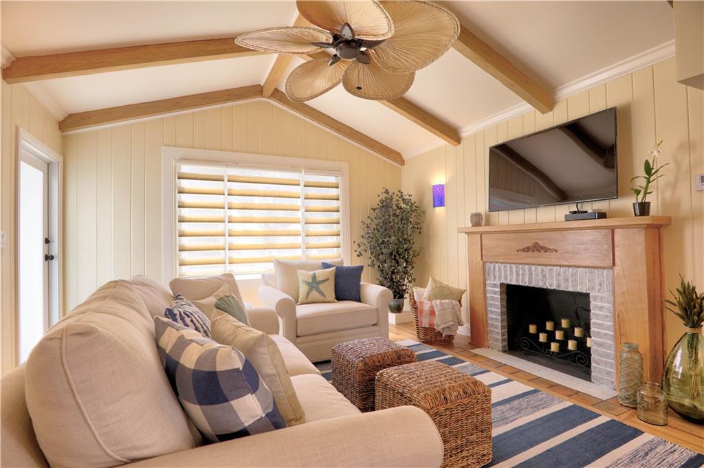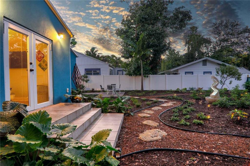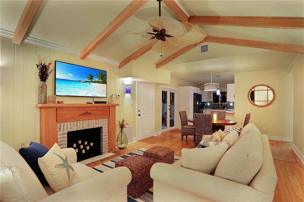 One of the most stylish and complete MAJOR home renovations, whilst retaining the coastal charm and classic Rio Vista integrity. Beautifully furnished. All new - roof, electrical, plumbing, a/c, garage, driveway, impact doors/windows, fencing, landscaping, exterior and interior paint, bathrooms and fully equipped kitchen. Master suite with king size bed, large walk in closet and french doors opening to the beautifully designed backyard, with plenty of room for a pool. Guest bedroom with queen size bed. Spa like bathrooms and phenomenal zen landscape, water features and lighting. A modern, light and airy aesthetic, yet with the time honored appeal of hardwood floors, exposed high beamed ceiling, brick fireplace and a welcoming front porch. Lucrative airbnb potential. A pleasure to show.