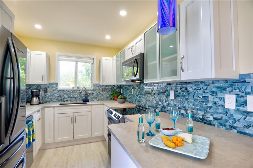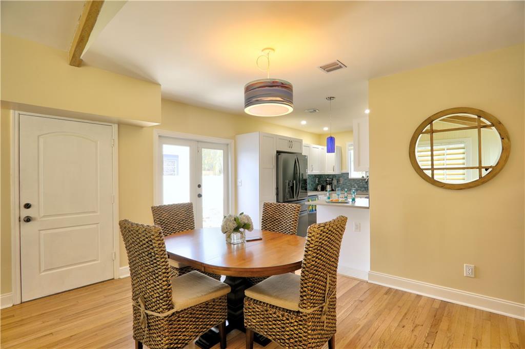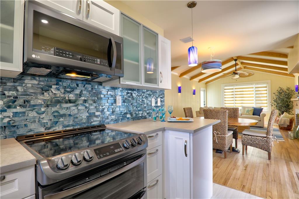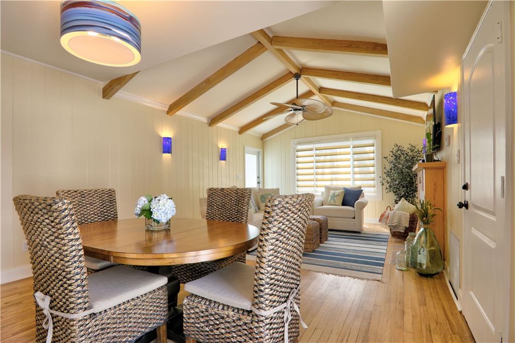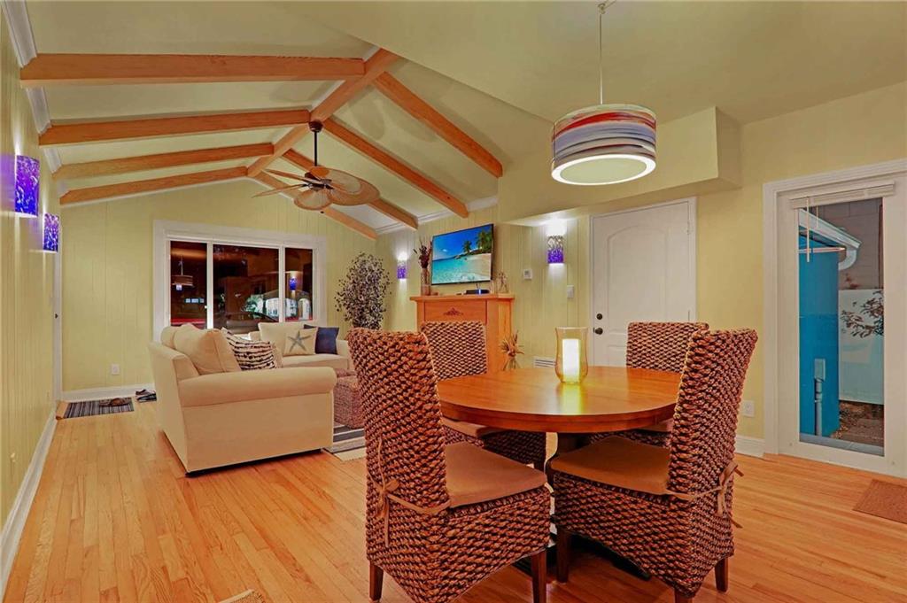 One of the most stylish and complete MAJOR home renovations, whilst retaining the coastal charm and classic Rio Vista integrity. Beautifully furnished. All new - roof, electrical, plumbing, a/c, garage, driveway, impact doors/windows, fencing, landscaping, exterior and interior paint, bathrooms and fully equipped kitchen. Master suite with king size bed, large walk in closet and french doors opening to the beautifully designed backyard, with plenty of room for a pool. Guest bedroom with queen size bed. Spa like bathrooms and phenomenal zen landscape, water features and lighting. A modern, light and airy aesthetic, yet with the time honored appeal of hardwood floors, exposed high beamed ceiling, brick fireplace and a welcoming front porch. Lucrative airbnb potential. A pleasure to show.