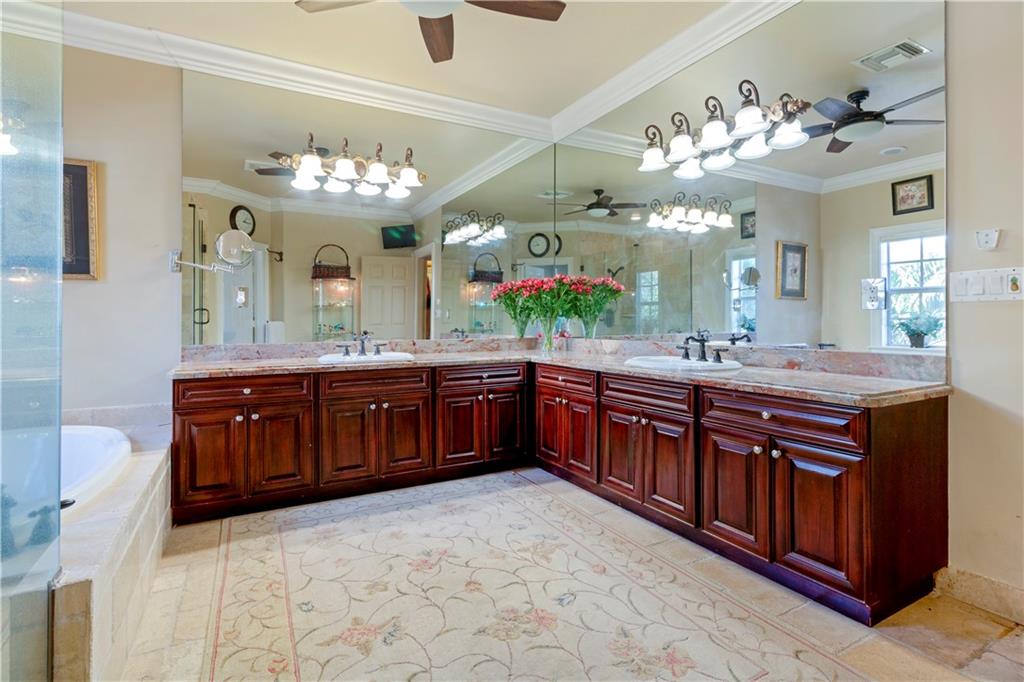 • Интерьер:BreakfastBar, BedroomonMainLevel, BreakfastArea, ClosetCabinetry, DiningArea, SeparateFormalDiningRoom, EntranceFoyer, Fireplace, HighCeilings, KitchenIsland, Pantry, UpperLevelMaster, WalkInClosets