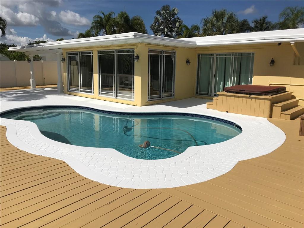 Lauderdale Isles 65' Deep Water Ocean Access Boater's Home Most Sailboats can clear I-95 Bridge Large with Heated Salt Pool & Spa Plus Outdoor Shower featuring a very Large Dock with Water & Elec. Nicely remodeled 4 Bedroom 2 Bath Split Bedroom Plan Courtyard Entry - Centrally located near I-95, 595, Turnpike, shopping & Hardrock Casino - Community Boat Ramp Park - A/C Garage perfect for Car & Boat Enthusiast! Built-In Custom Garage Storage