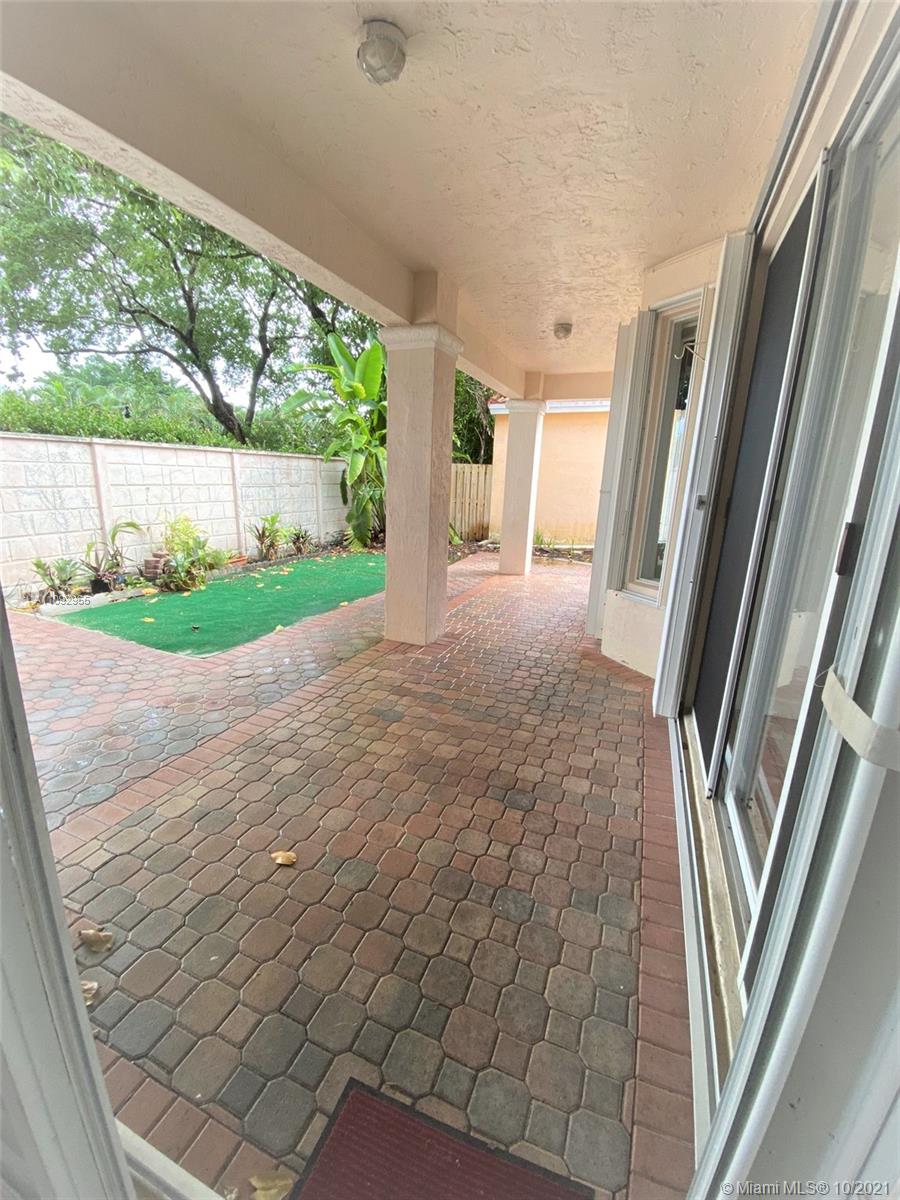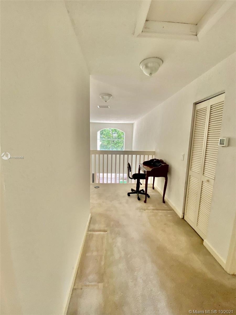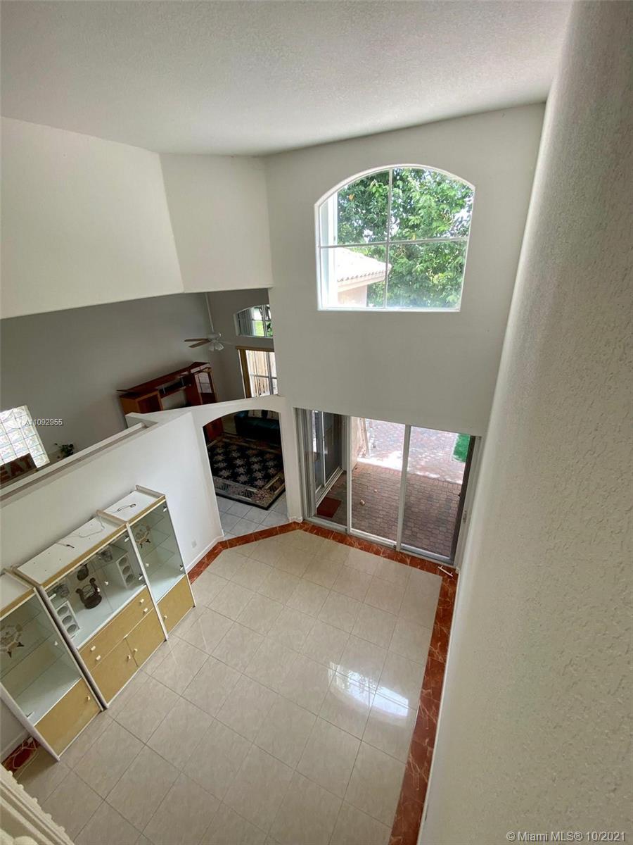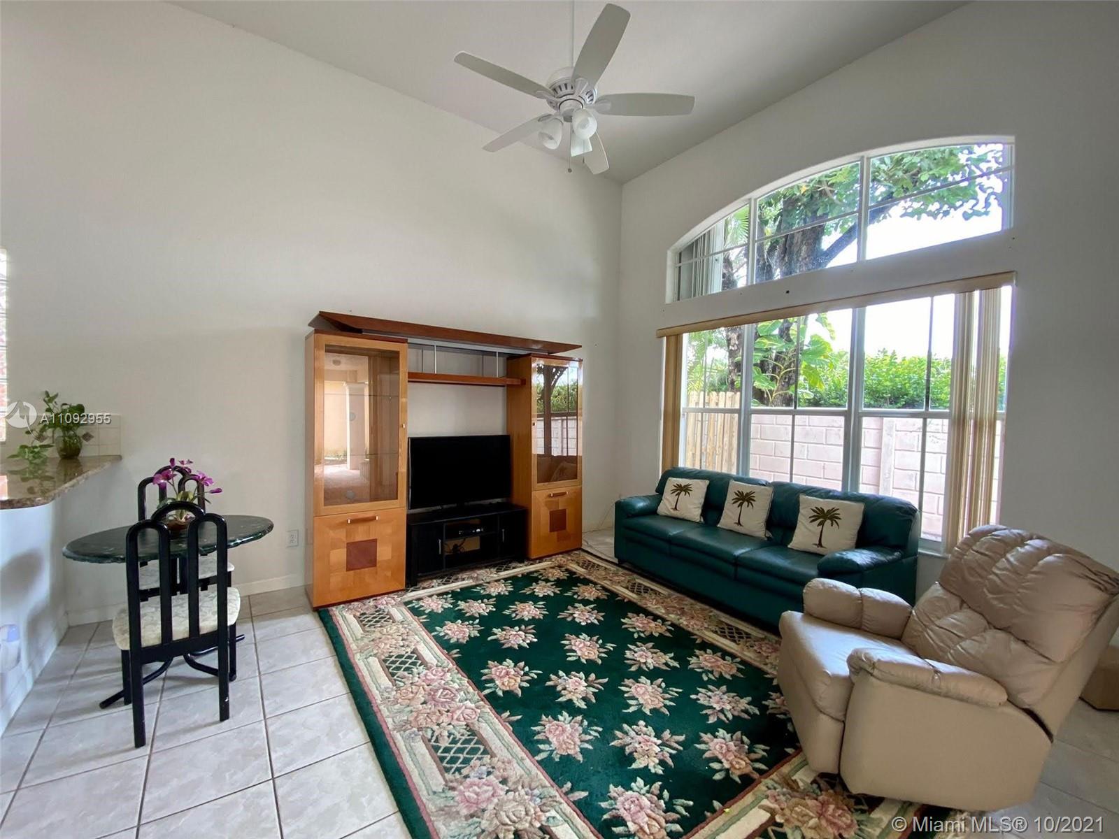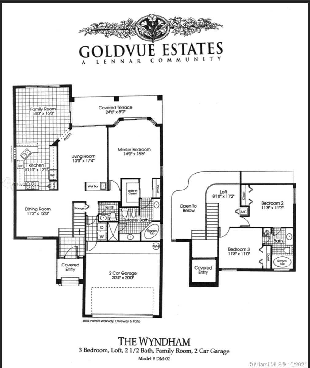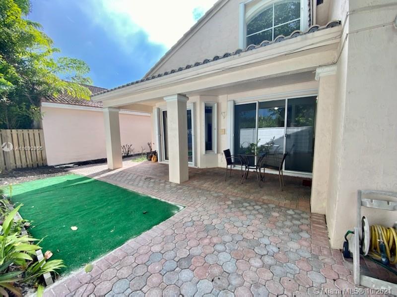 Rarely available, 2 story single family home with Master bedroom on the first floor! A must see! Well  maintained 3 bedrooms, 2 1/2 bath with Volume ceilings throughout living areas and Kitchen. Master bedroom boasts spacious closets, Roman Tub, Double Vanities, Bidet and Shower.  Upstairs loft leads to two spacious bedrooms that share a Jack and Jill Bathroom. Other areas downstairs; Laundry room with extra storage space, Double car garage, Covered terrace with pavered patio, accordion shutters and no backyard neighbor ready to become your private Oasis. Located in the sought after Goldvue Estates with low maintenance fee which includes 24 hour security guard, Fiber optic basic Internet and cable, Pool Children's playground and garden sitting area.