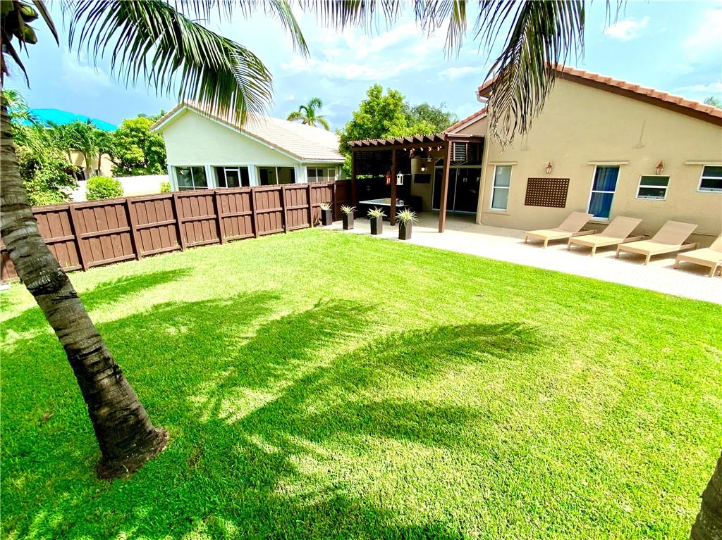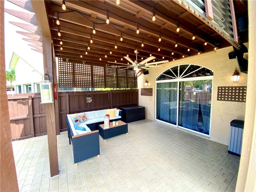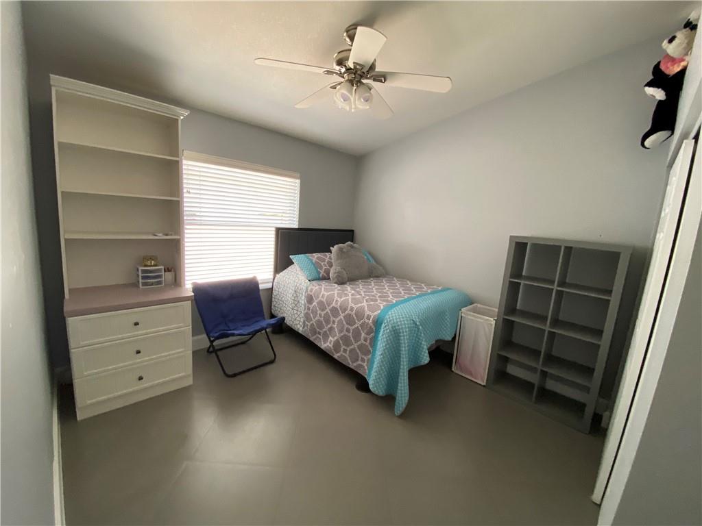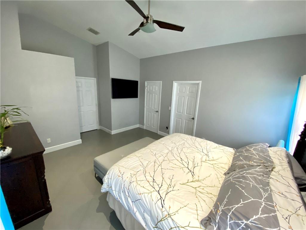4/3/2, 4th BR was the living room, which can be converted back. House was completely redone from floor to ceiling. 24x24 porcelain throughout. Both bathrooms completely redone, same countertops & sinks & faucets. The primary bath has 7’ seamless shower doors, raised shower heads in both baths, custom enclosed water closet in primary with an added window. Knock-down ceilings throughout. Orange peel textured walls. 24-3” led high-hats throughout. Fans are remote. Both baths, kitchen, laundry & family room have the same matching custom cabinets. Oversized yard was redone with custom pergola with led lights, 6 speakers & TV. 4 coach lights & 700 sq ft of sealed pavers. 2 storage sheds. Pavers set on side w. wide gate. Trane high-efficiency AC. New water heater in completely re finished garage.