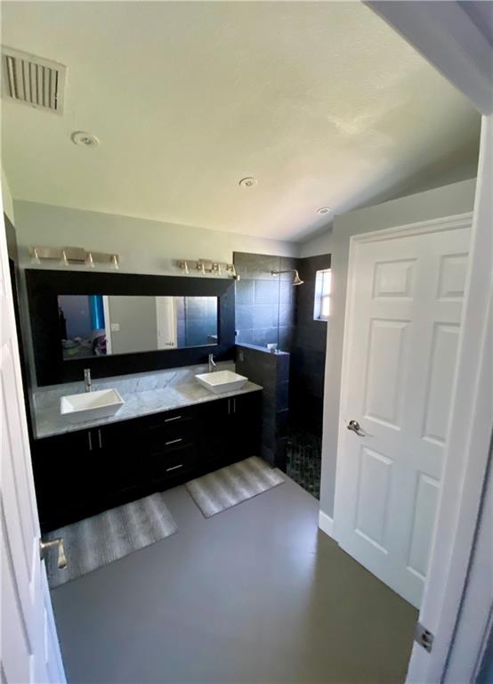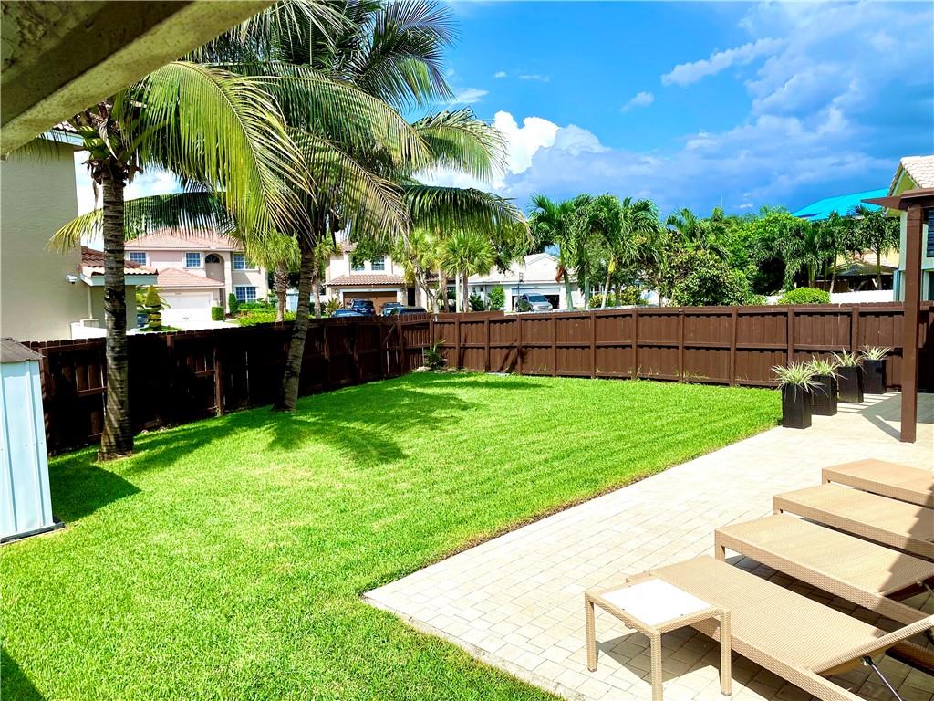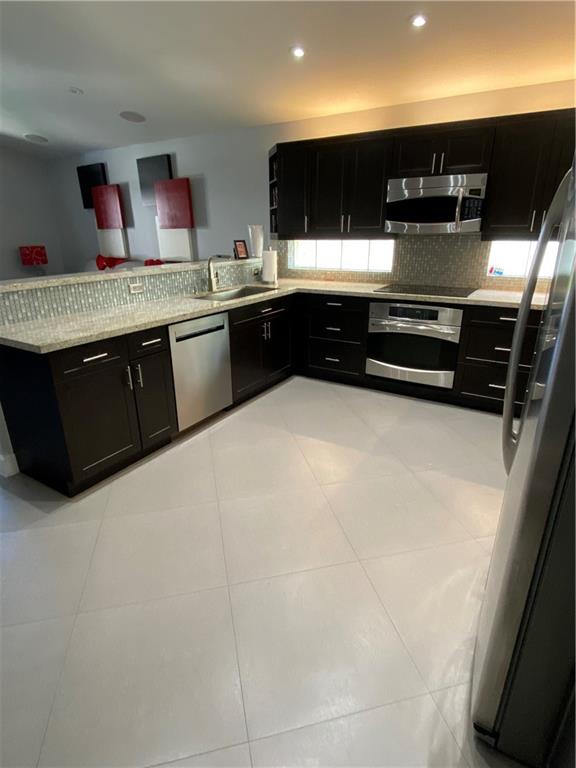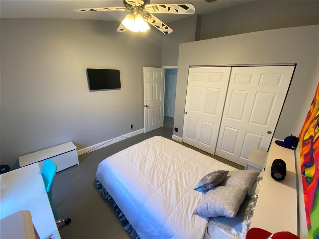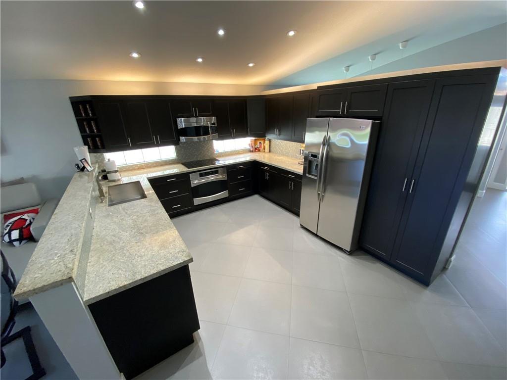 4/3/2, 4th BR was the living room, which can be converted back. House was completely redone from floor to ceiling. 24x24 porcelain throughout. Both bathrooms completely redone, same countertops & sinks & faucets. The primary bath has 7’ seamless shower doors, raised shower heads in both baths, custom enclosed water closet in primary with an added window. Knock-down ceilings throughout. Orange peel textured walls. 24-3” led high-hats throughout. Fans are remote. Both baths, kitchen, laundry & family room have the same matching custom cabinets. Oversized yard was redone with custom pergola with led lights, 6 speakers & TV. 4 coach lights & 700 sq ft of sealed pavers. 2 storage sheds. Pavers set on side w. wide gate. Trane high-efficiency AC. New water heater in completely re finished garage.