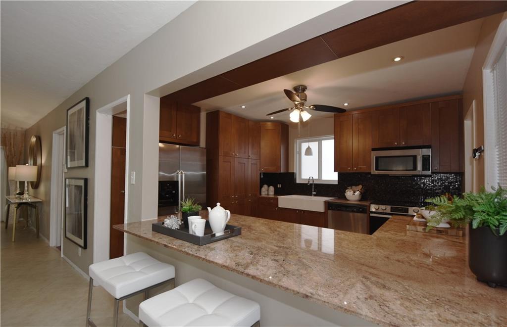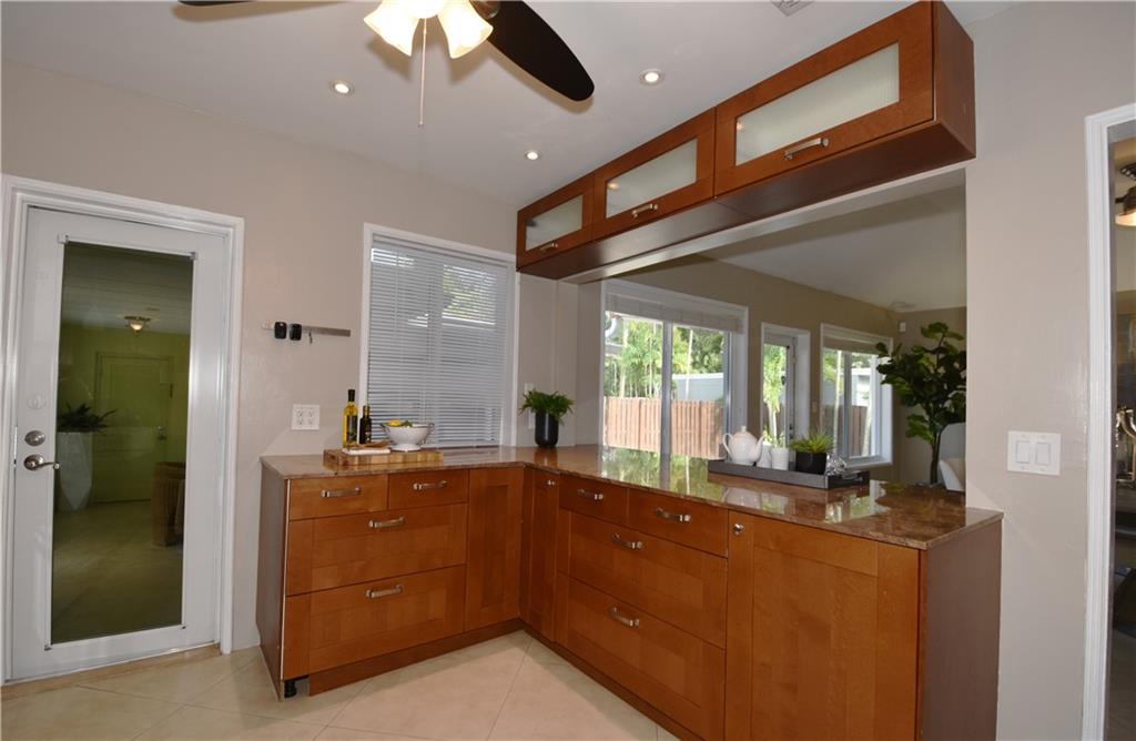 Renovated Victoria Park home with impact windows, saturnia marble floors and open kitchen to dining room.Other features include high ceilings in spacious living/dining area, fireplace, wood floors, large open kitchen with granite countertops and stainless appliances. Updated Unique Home located on the East side of Victoria Park. This unique property has access on 2 streetsThe front is on NE 16 Terr and the back is on NE 6th Court. The garage is off the NE 6th Court entrance and is attached. Very private back yard pool and fenced in. Great curb appeal and nicely appointed interior.