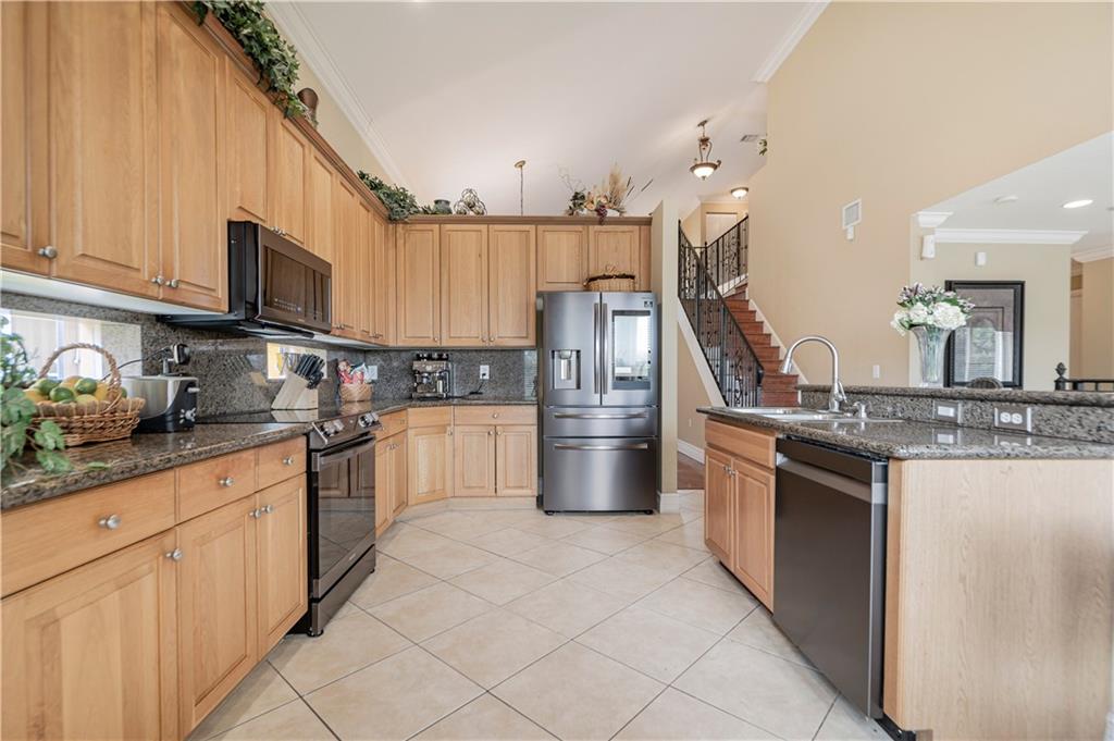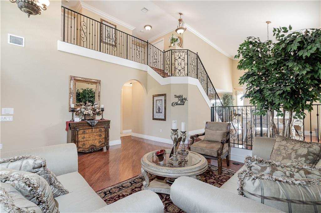 Immaculate lakefront 4 Bed 4 Bath 2 CG Savoy model in Silver Isles is a MUST SEE! Grand 24ft high vaulted ceilings & arched windows w/fitted drapes; spacious living areas with tile & wood flooring, bedroom/office & full bathroom on first-floor; custom wrought-iron staircase; laundry/utility room w/LG SS washer/dryer, formal dining area & separate family room. Open-concept kitchen, large island with 42in cabinetry & tasteful granite countertops, eat-in breakfast area & new Samsung Smart Home appliances. Primary bedroom features French doors at entry, tray ceiling, sitting/den area, two separate bathrooms conjoined by a glass-encased shower & roman tub, and double custom walk-in closets. Addt'l bedrooms upstairs connected by jack & jill bathroom. Fully gated w/guard, A-rated schools.