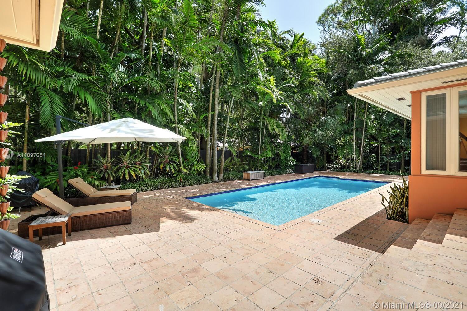 Lovely home on a quiet, tree-canopied cul-de-sac in the coveted Utopia section of lush South Coconut Grove. HOA offers private police patrol. Spacious, light-filled living spaces w/beautiful wood flooring, fireplace & large windows overlooking the tropical garden. 2690 square feet per appraisal w/formal living, dining & family room + 3BR’s w/en-suite baths. Custom kitchen features high quality wood cabinetry, gas range & separate breakfast room. Oversized master suite w. sitting area, 2 walk-in closets & bath w/soaking tub & frameless glass shower. Major updates: newer roof, 2 Trane HVAC systems, plumbing system, tankless water heaters & impact glass. Ultra-private garden w/tranquil pool surrounded by an expansive terrace. Walk to Grove village’s cafes, boutiques & bayfront parks.